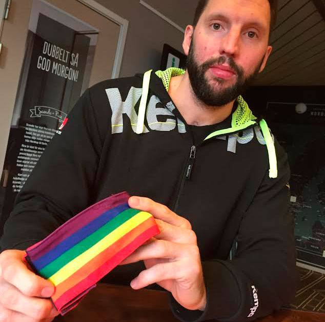 Tað ætlar liðskiparin á svenska landsliðnum, Tobias Karlsson, at gera nakað við. Hann ætlar nevniliga at vísa sína misnøgd við lógina við at spæla við einum liðskiparabandi, ið hevur eyðkendu litirnar hjá teimum samkyndu, nevniliga ælabogalitirnar.
