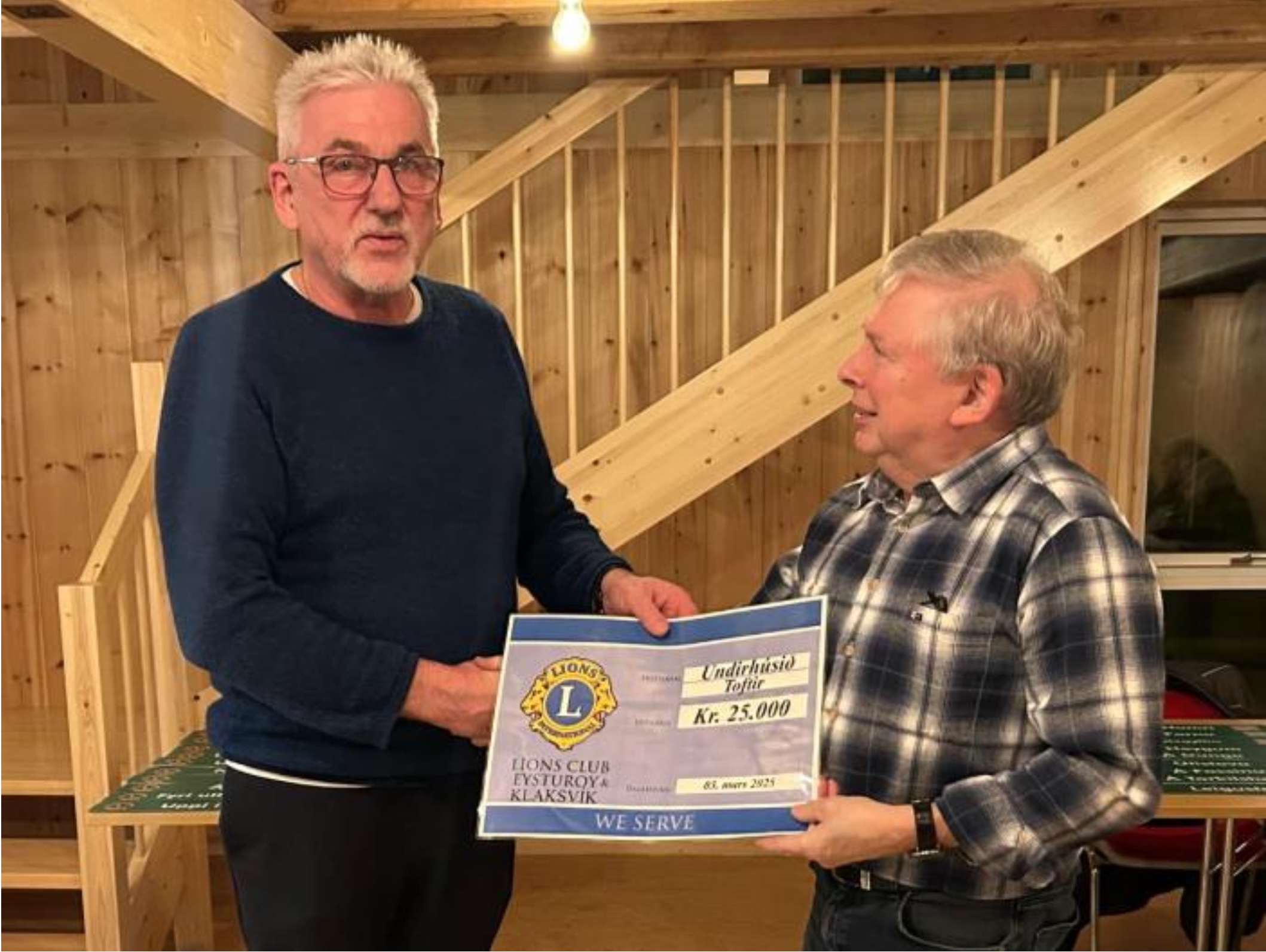 Petur Gaardlykke frá Lions greiddi frá tilgongdini, og sera góða samstarvinum við Nes Kommuna og arbeiðsbólkin, at finna endaligu loysnina fyri húsaskeltini.