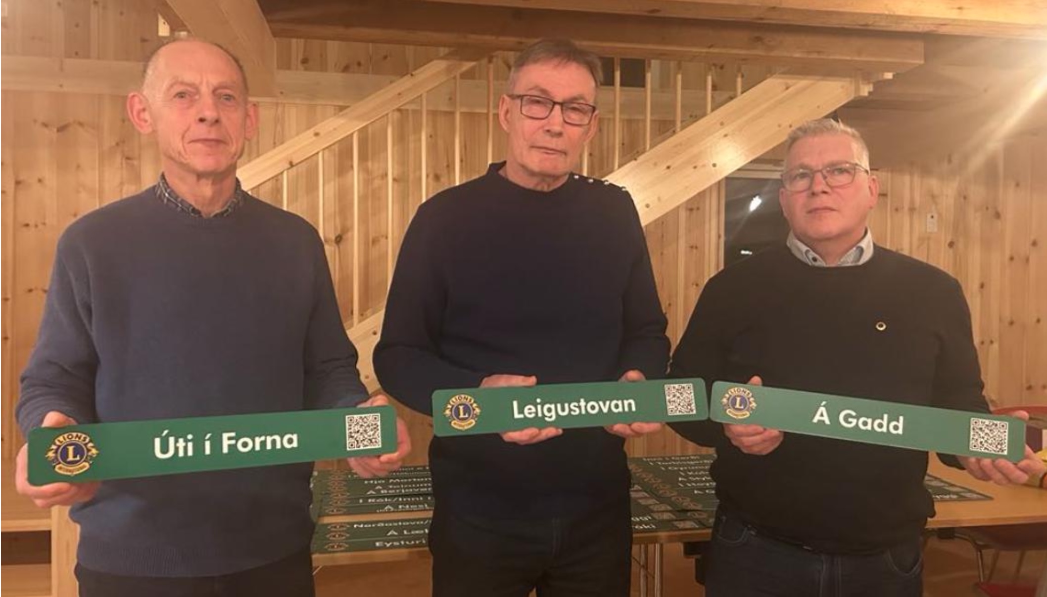 Endaligu leisturin bleiv so fyribils til 56 staðarnavnar skeltir við QR kotu og Lions merkið á.