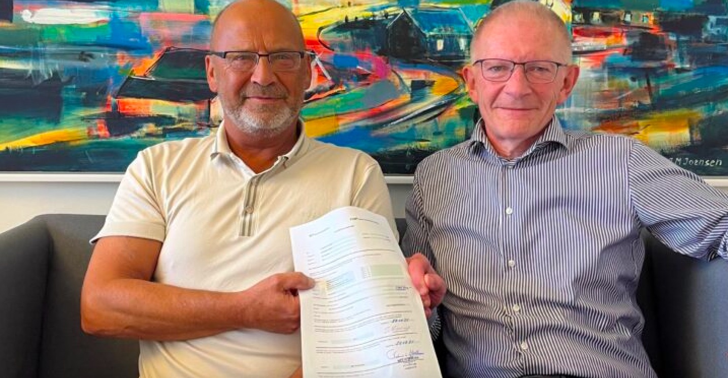 Svend Lamhauge, byggileiðari, og Súni í Hjøllum, borgarstjóri, undirskrivaðu ávikavist fyri RTS og Nes kommunu.