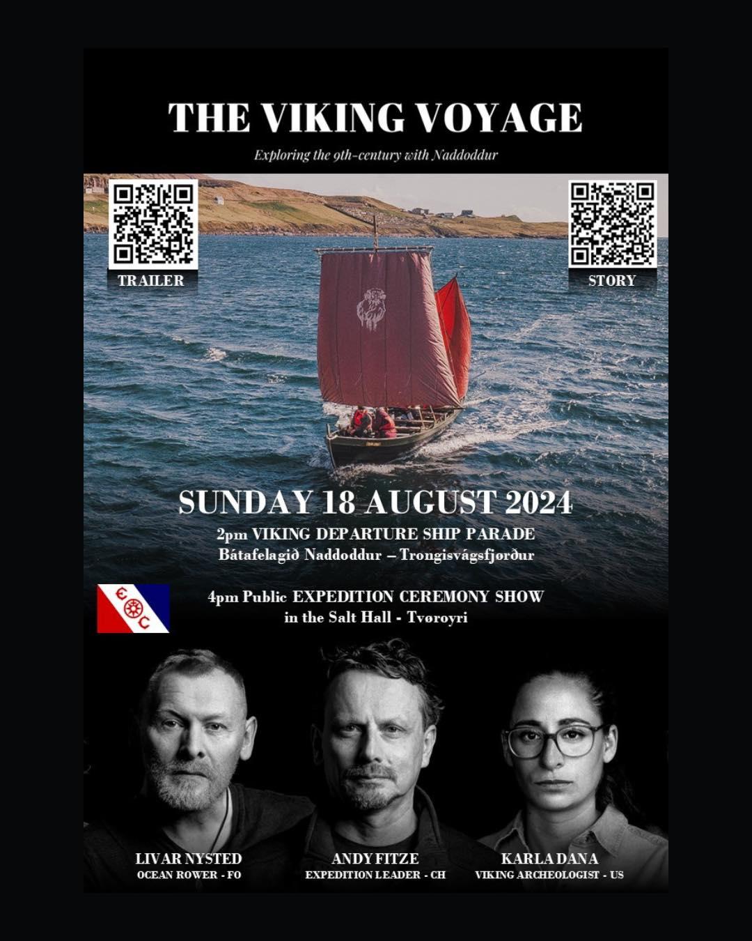 Túrurin hevur fingið navnið The Viking Voyage, og hetta er ein ambitiøsur túrur, har manningin ordiliga kemur at royna síni mørk á opna havinum. Ætlanin er at sigla til Noregs tvørturum Norðsjógvin við Naddoddi, sum er ein bátur, ið minnir um víkingabátarnar tá í tíðini við segli.