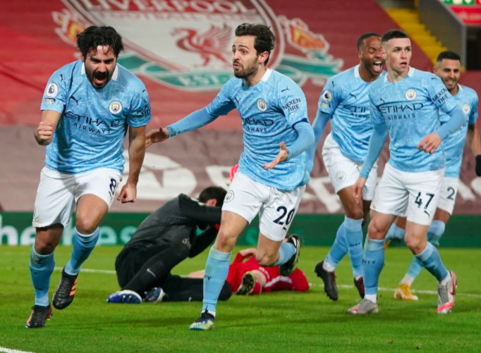 Manchester City stevnir móti meistaraheitinum, meðan Liverpool skal fóta sær skjótt, um liðið ætlr sær at spæla Champions League fótbólt komandi kappingarár. Tað er staðfestingin, eftir at Manchester City vann heili 4-1 á Liverpool í dag.