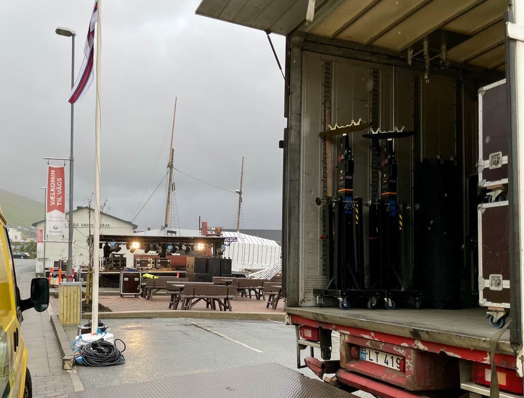 Myndin omanfyri er tikin fyrr í kvøld, og har eru tey í gongd við at fáa stóra pall upp.