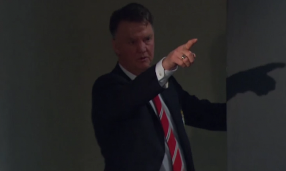TRÝST á PÍLIN á MYNDINI, og síggj og hoyr høvuðsvenjaran hjá Manchester United, Louis van Gaal rýma av tíðindafundinum, sum var aftaná 3-3 dystin millum Newcastle United og Manchester United týskvøldið.