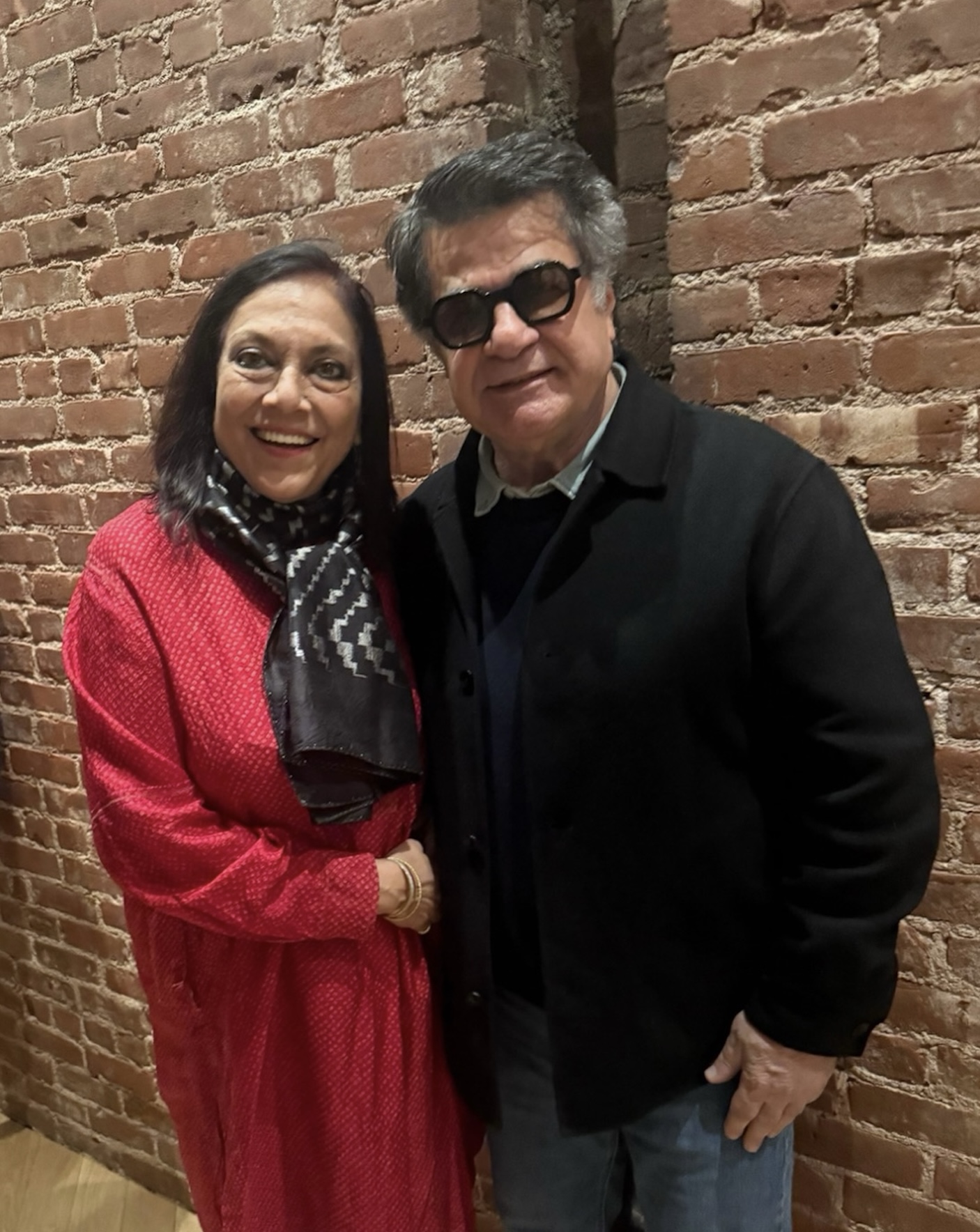 Á eini myndini sæst Jafar Pahani saman við indiska leikstjóranum Mira Nair, sum er mamma borgarstjóran í New York, Zohran Mamdani.