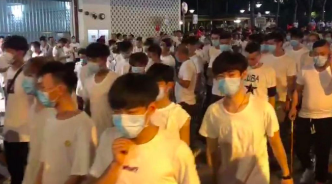 45 mótmælisfólk í Hong Kong hava fingið løstir, eftir at hvítklæddir menn í maskum í gjár lupu á við stavum og øðrum vápnum á einari tokstøð í Yuen Long økinum í býnum.