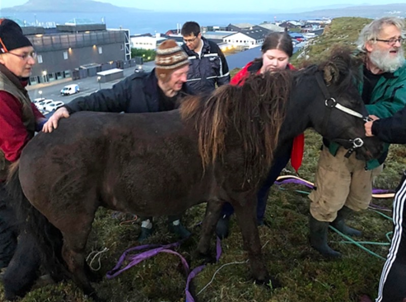 Hon var smokkað úti á eggini omanfyri Føroya Tele í Hoyvík, og vandi var fyri at hon datt oman. Hon slapp hvørki aftur ella fram og fallið var einar 15 metrar og tað hevði verið endin á henni, sigur Tórshavnar Býráð á síni heimasíðu.