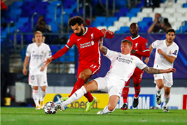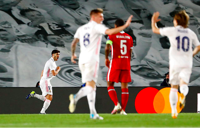 Brasilska stórtalentið, Vinicius Junior, legði heimaliðið uppiborið á odda eftir 27 minuttir, og løtu seinni økti Marco Asensio eftir stóra verjuvillu av Trent Alexander-Arnold. Okkurt hevur Jurgen Klopp, venjari hjá Liverpool, sagt í hálvleikinum, tí gestirnir svaraðu aftur í seinna hálvleiki við máli frá Mohamed Salah.