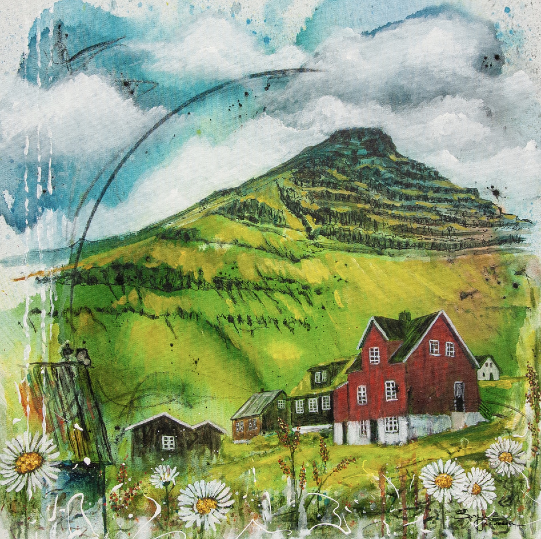 Laksatorgið er við bátahylin á Glyvrum. Framsýningin er opin leygardagin 5. juli frá kl. 10-16. Málningar og plakatir verða til sølu.