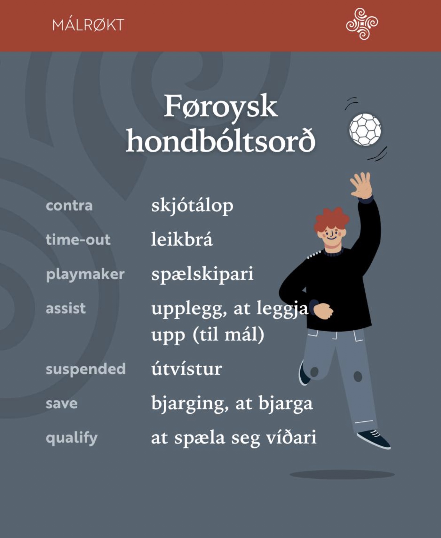 Myndin hjá Málráðnum leggur upp til (assisterar) til gott kjak um júst hetta, og tað kann bara gera okkum meira tilvitaðum hesa málsligu avbjóðingina – serliga nú stórur hondbóltsdagur er í dag í høllini á Hálsi í dag, og avgerandi fótbóltsdystur í Sarpugerði í Norðragøtu.