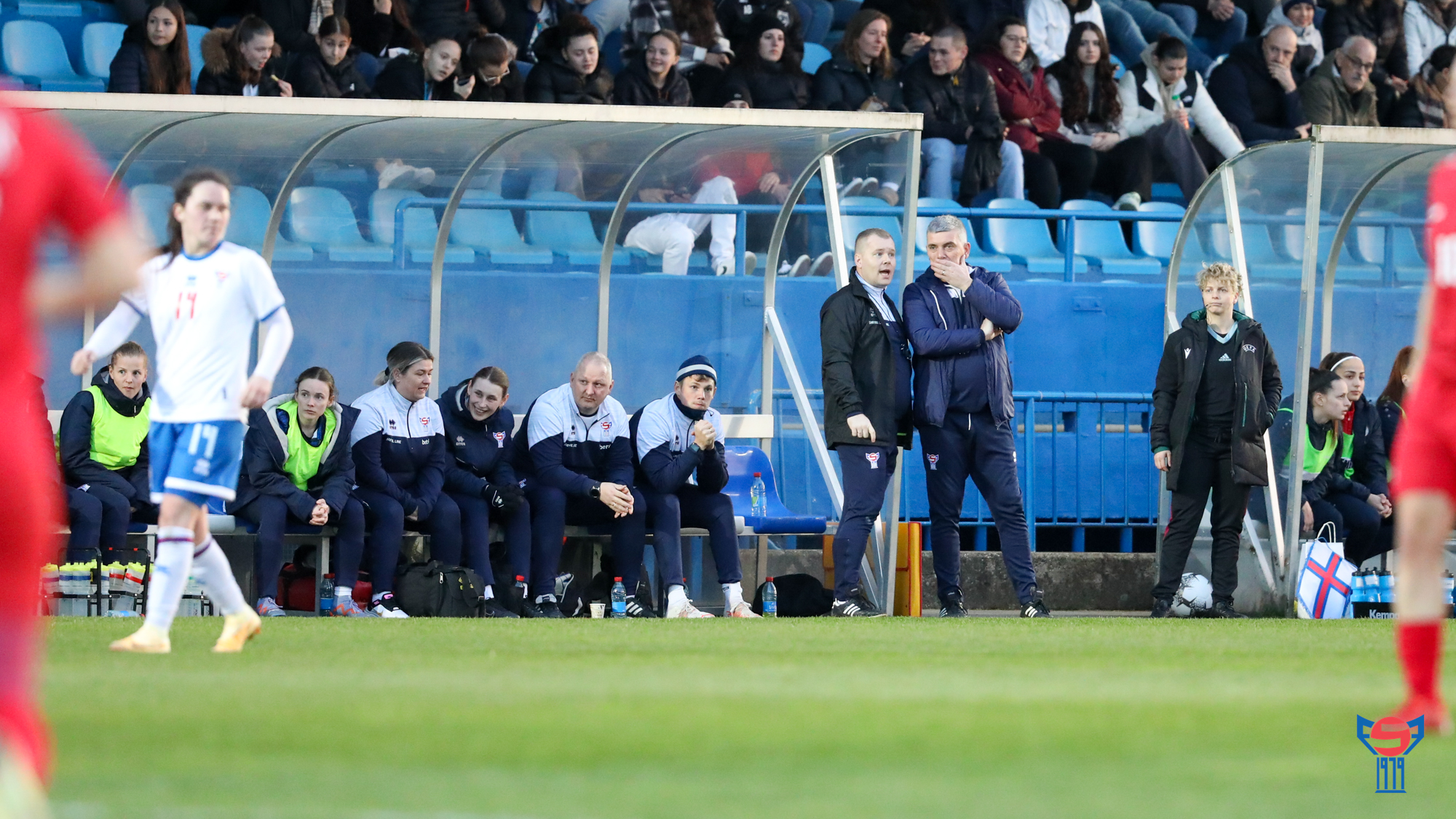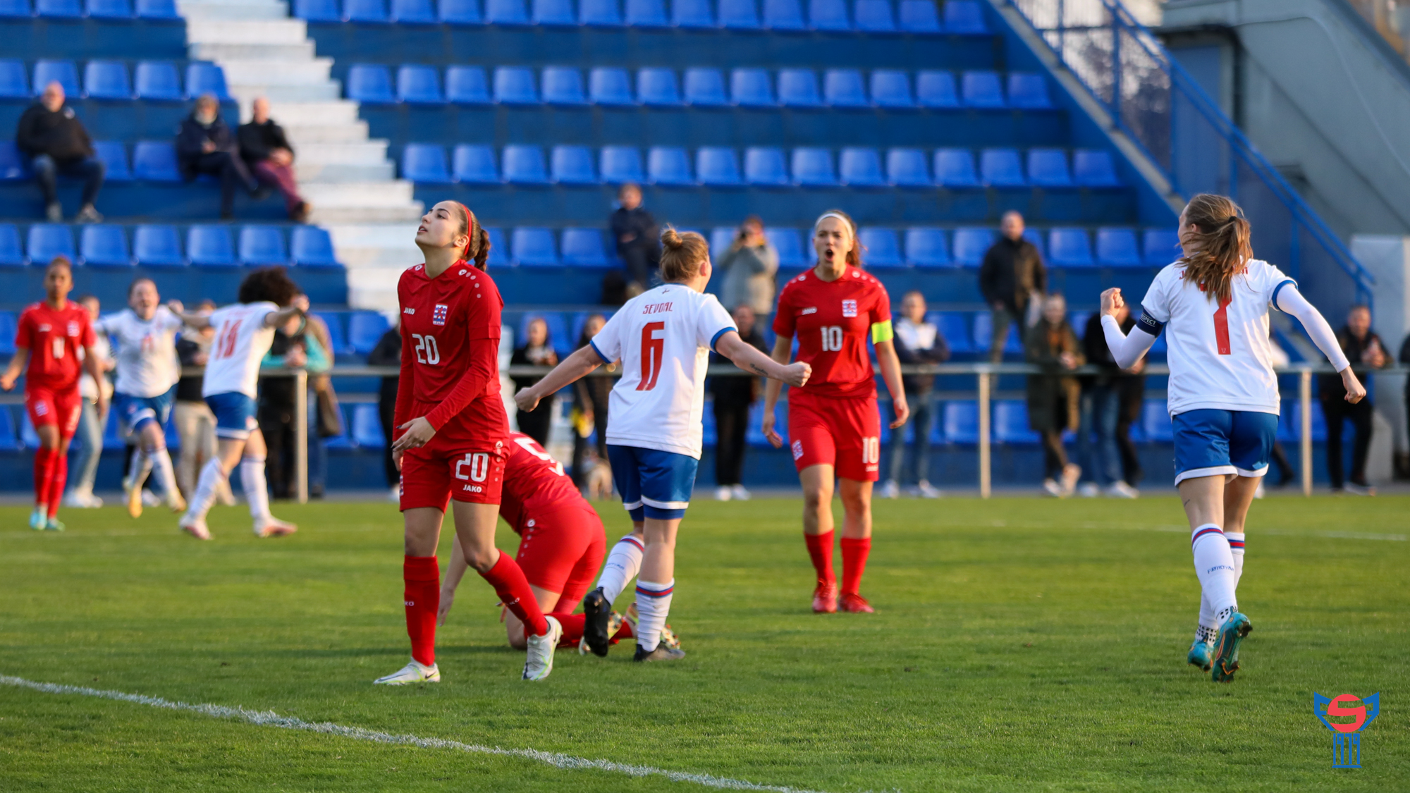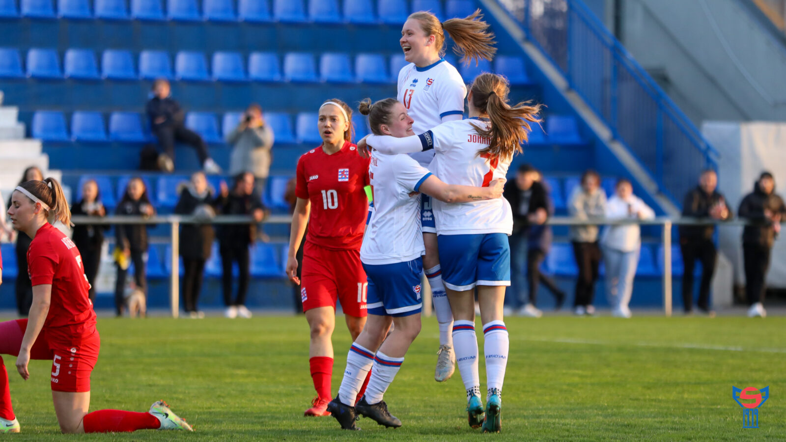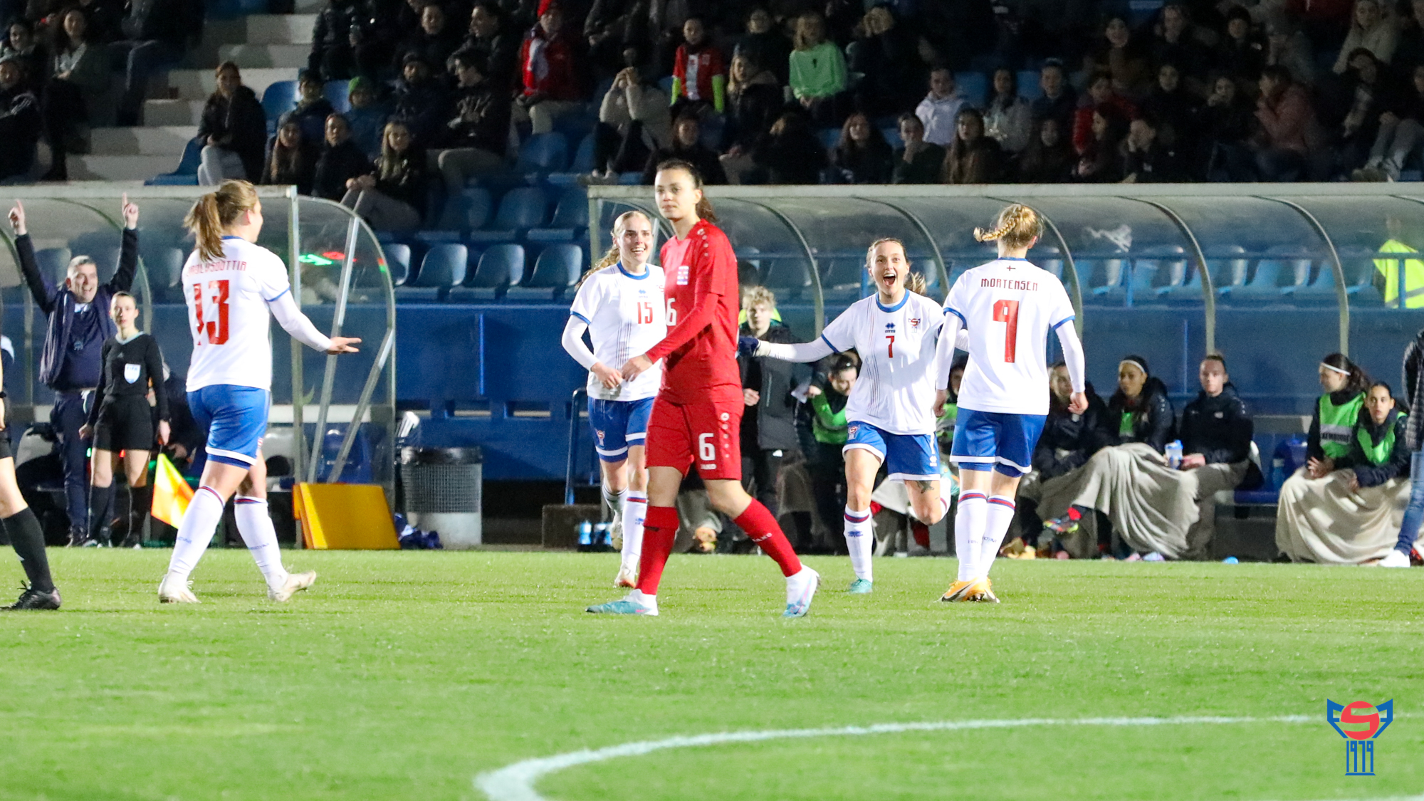 Tað gjørdist skjótt greitt, at bæði liðini vóru komin á vøllin við álopskendum ætlanum, tí tá bert sjey minuttir vóru spældir, stóð 2-1 til heimaliðið. Okkara kvinnur settu hol á longu í triðja minutti, tá Heidi Sevdal stóð rætt fyri málteiginum eftir innlegg úr høgru síðu og setti bóltin trygt í netið, skrivar Fótbóltssambandið.