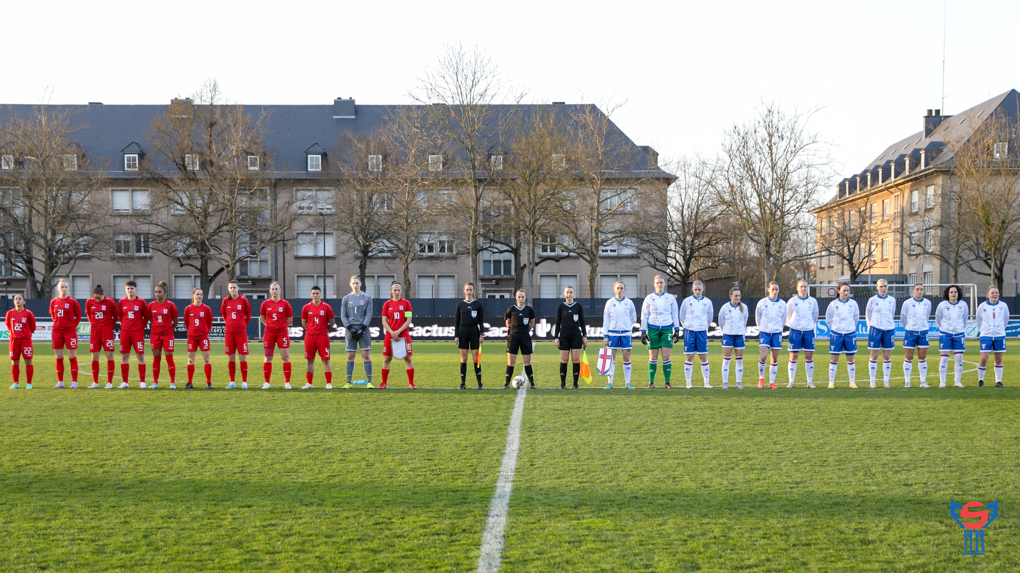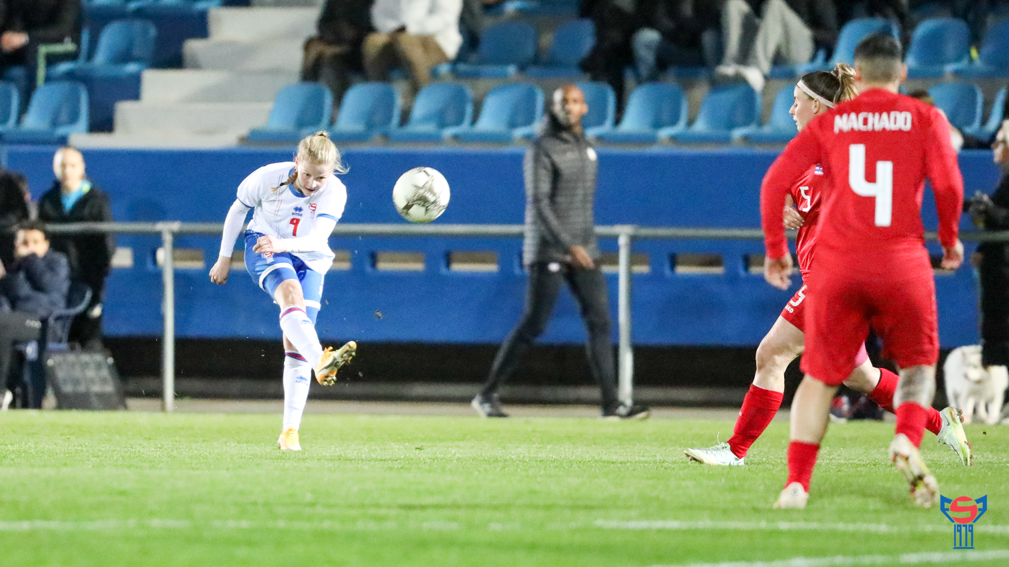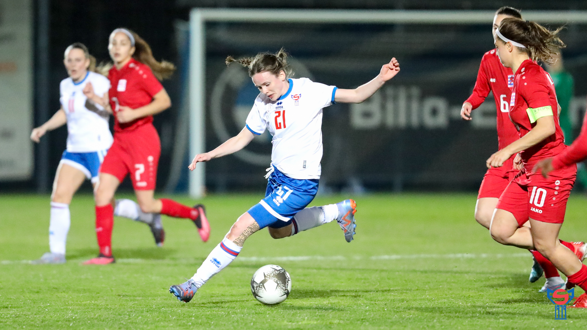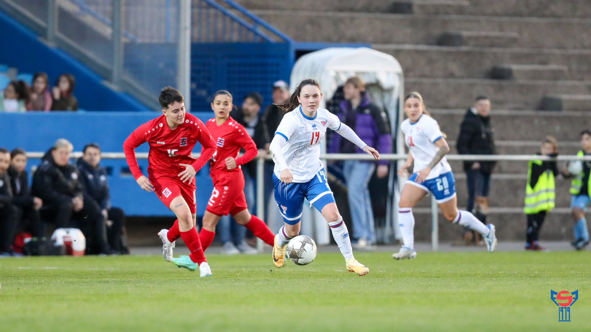 Tað gjørdist skjótt greitt, at bæði liðini vóru komin á vøllin við álopskendum ætlanum, tí tá bert sjey minuttir vóru spældir, stóð 2-1 til heimaliðið. Okkara kvinnur settu hol á longu í triðja minutti, tá Heidi Sevdal stóð rætt fyri málteiginum eftir innlegg úr høgru síðu og setti bóltin trygt í netið, skrivar Fótbóltssambandið.