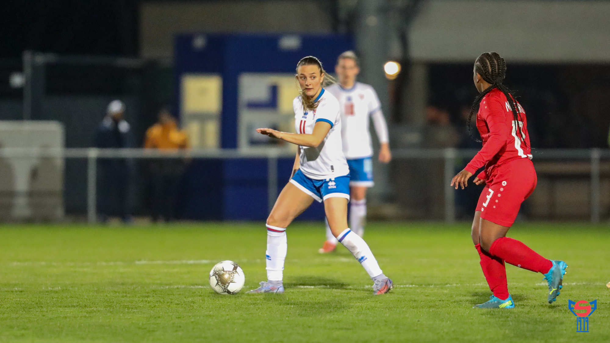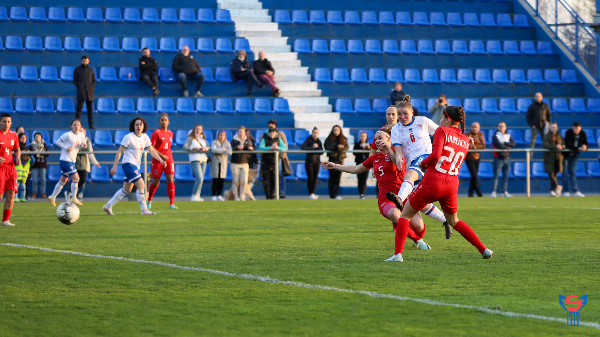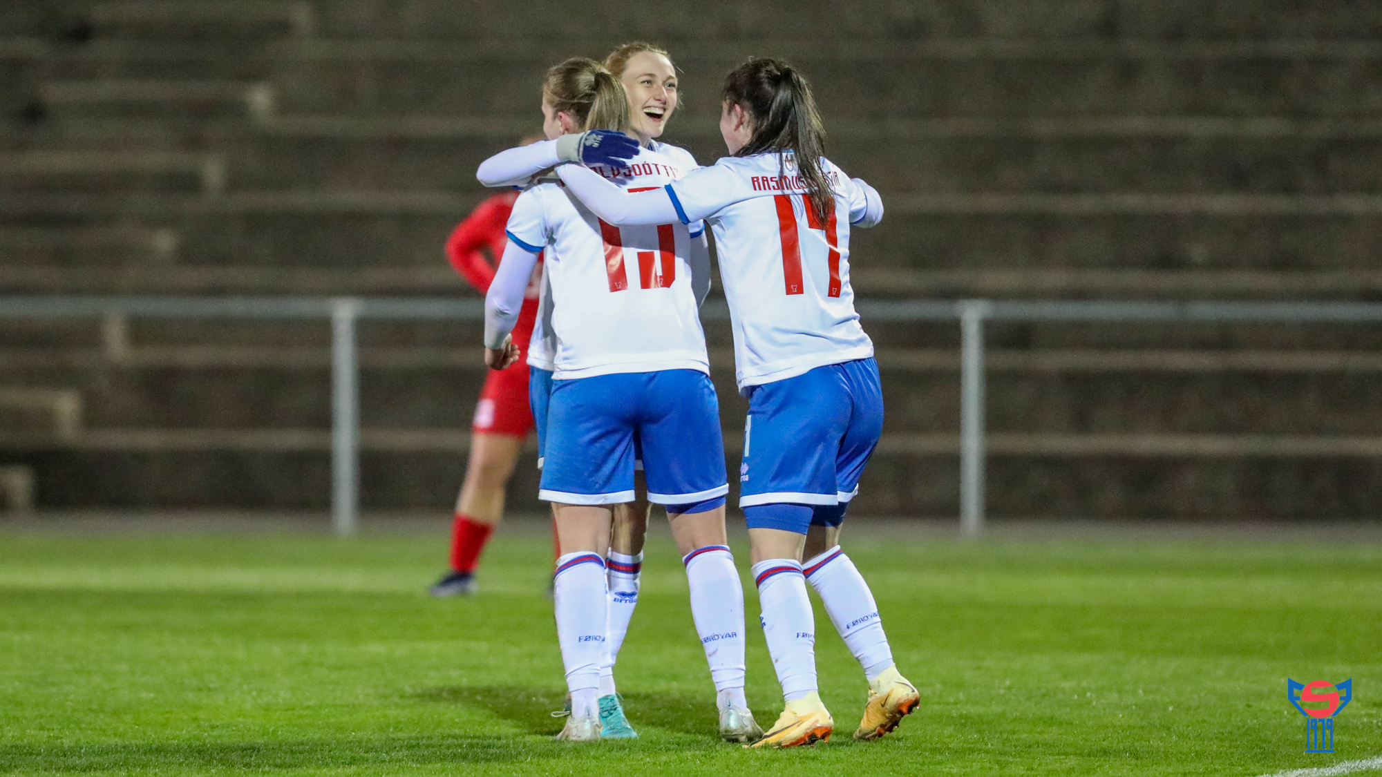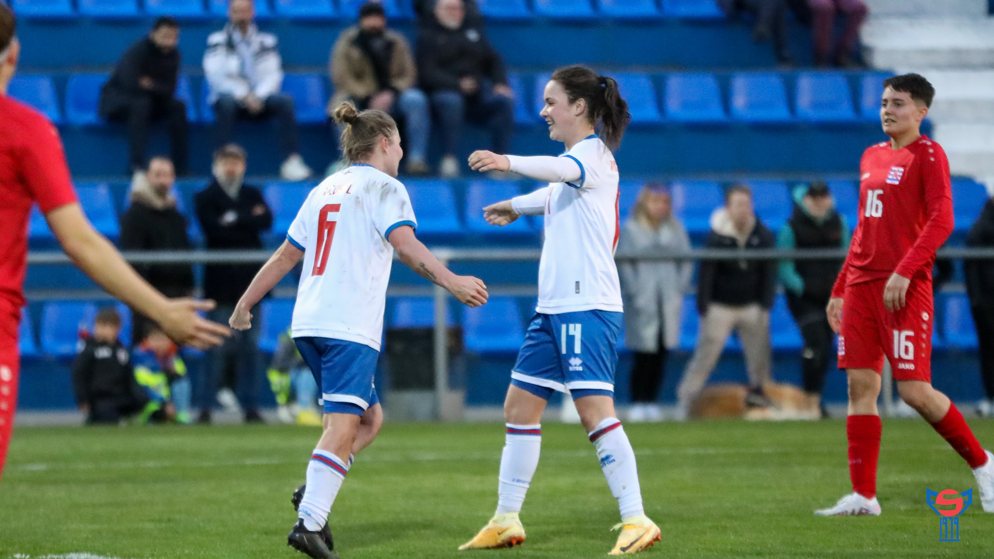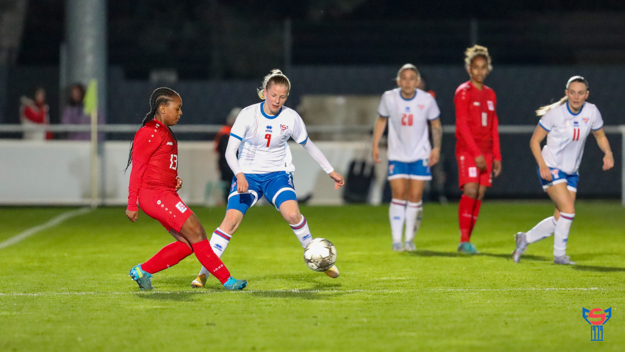 Tað gjørdist skjótt greitt, at bæði liðini vóru komin á vøllin við álopskendum ætlanum, tí tá bert sjey minuttir vóru spældir, stóð 2-1 til heimaliðið. Okkara kvinnur settu hol á longu í triðja minutti, tá Heidi Sevdal stóð rætt fyri málteiginum eftir innlegg úr høgru síðu og setti bóltin trygt í netið, skrivar Fótbóltssambandið.