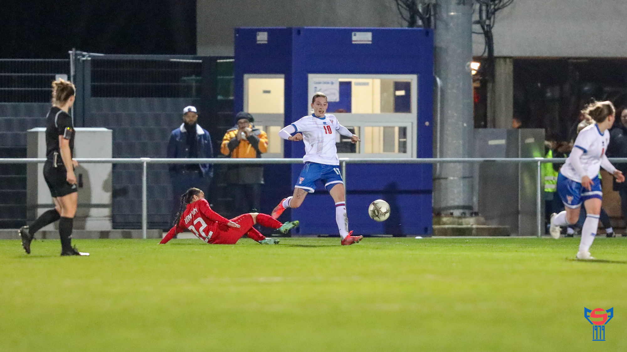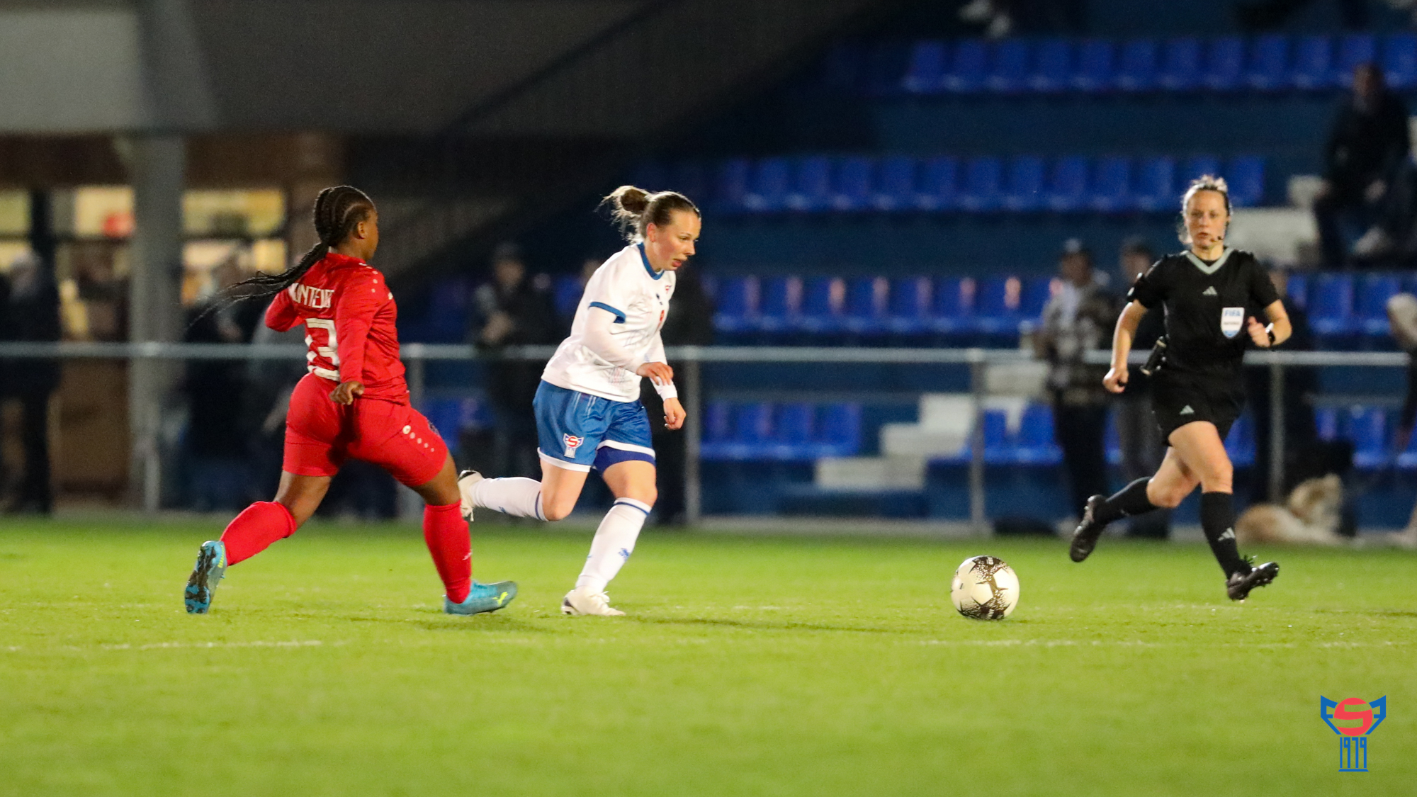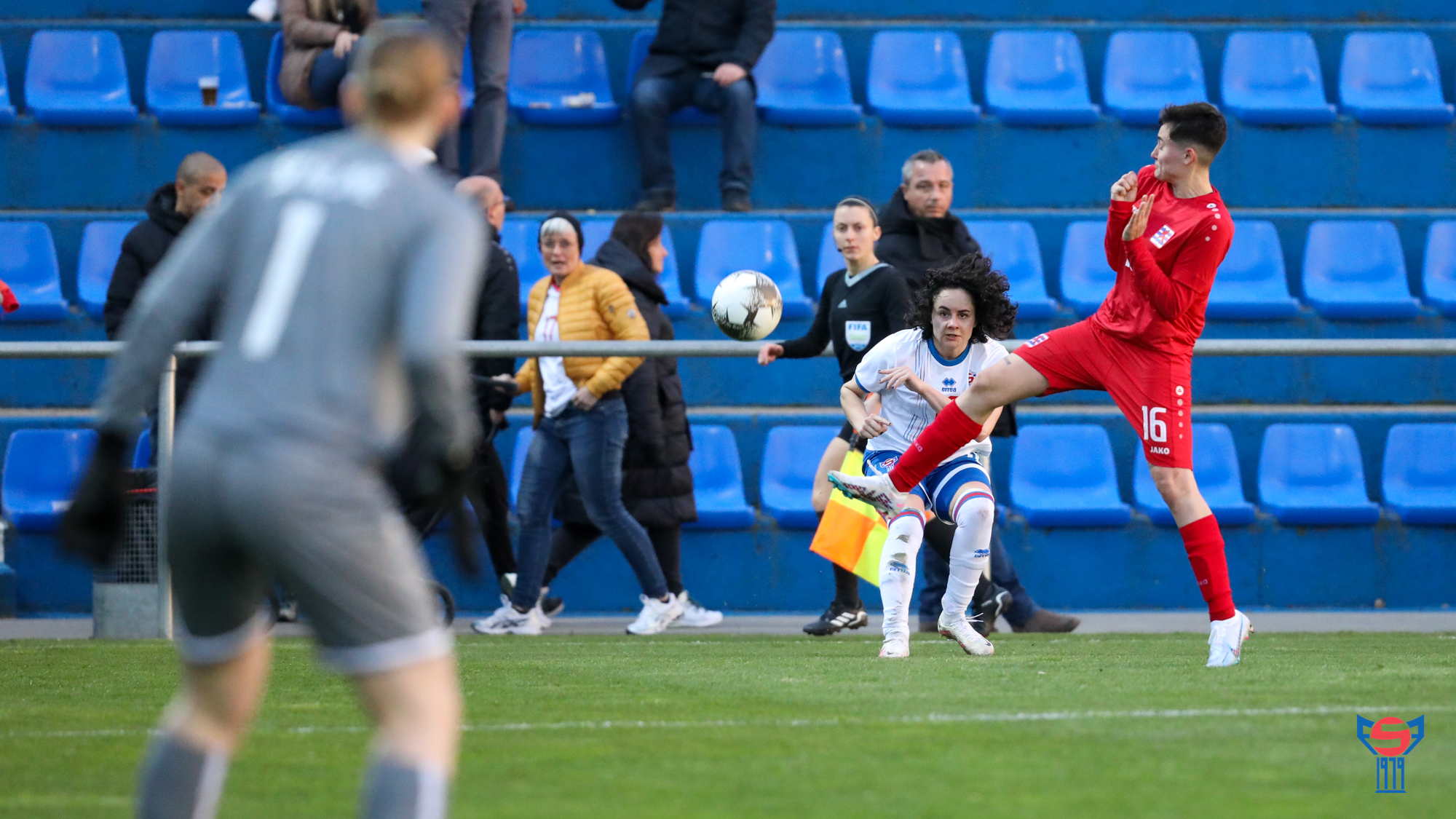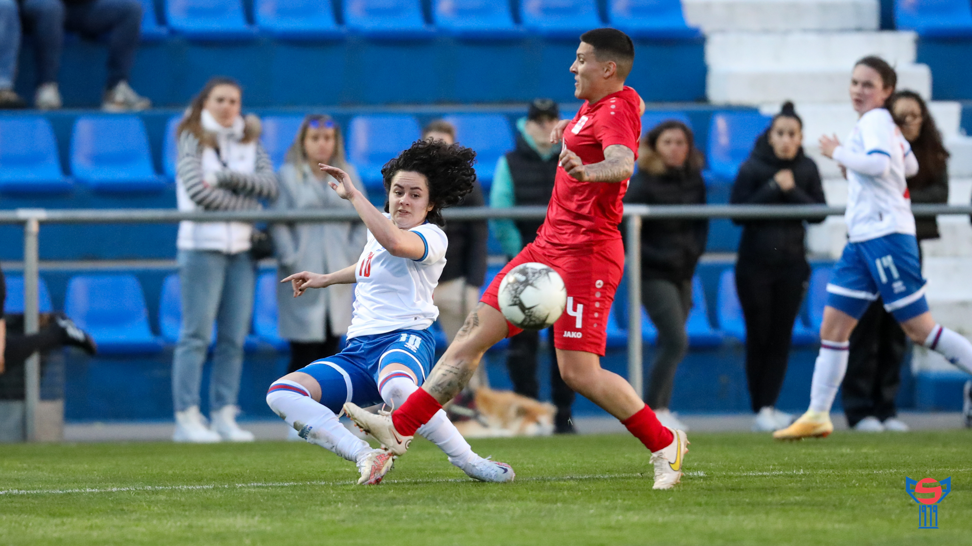 Tað gjørdist skjótt greitt, at bæði liðini vóru komin á vøllin við álopskendum ætlanum, tí tá bert sjey minuttir vóru spældir, stóð 2-1 til heimaliðið. Okkara kvinnur settu hol á longu í triðja minutti, tá Heidi Sevdal stóð rætt fyri málteiginum eftir innlegg úr høgru síðu og setti bóltin trygt í netið, skrivar Fótbóltssambandið.