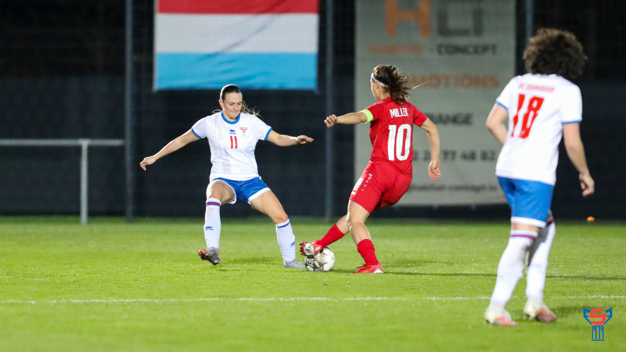 Stutt fyri hálvleik vunnu føroysku kvinnurnar tó yvirvág. Fyrst sendi Heidi Sevdal eitt gott skot úr spískum vinkli í meskarnar til 2-2, og lítla løtu seinni var tað liðskiparin Ásla Johannesen, sum setti seinasta fótin á bóltin og harvið syrgdi fyri føroyskari 3-2 leiðslu í steðginum.