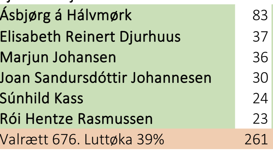 | Valrætt | 793 | Luttøka 737 | 30% | |