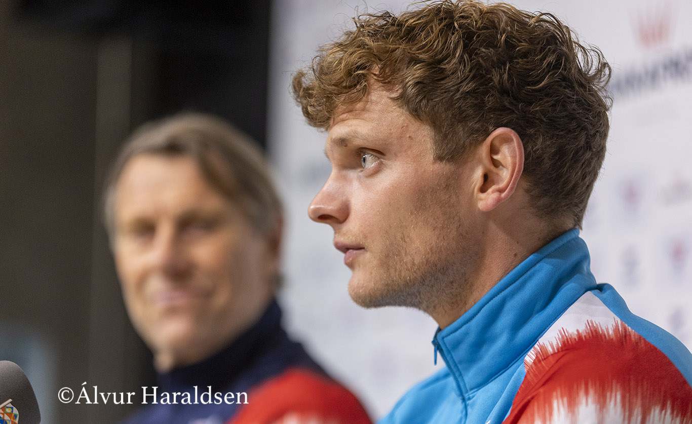 Føroyska manslandsliðið hevur á døgurða í dag havt tíðindafund á Tórsvølli undan Nations League landsdystinum móti Lettlandi, sum verður í annaðkvøld klokkan 19.45. Á tíðindafundinum vóru Håkan Ericson, landsliðsvenjari, og Meinhard E. Olsen.