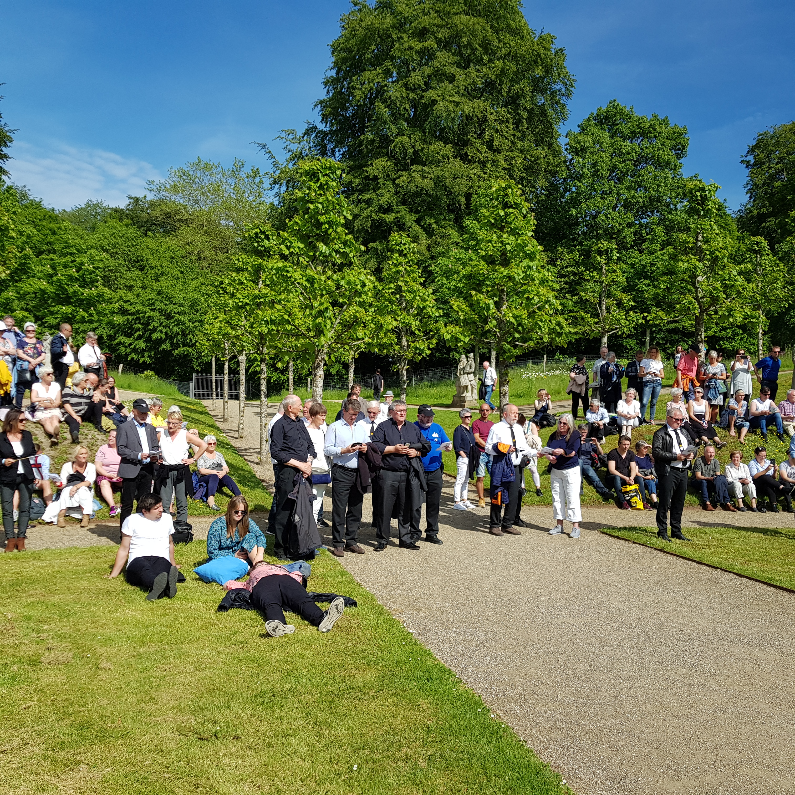 Eftir gudstænastu í Holmens Kirkju varð farið víðari við bussum til Norðmansdaglin í Fredensborg, har flaggi varð borið fram á hesum degin í 1919.