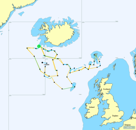 Merkta grindin úr Havn hevur seinasta dagarnar ferðast í ein útsynning, og er nú á 28 longdarstigum.