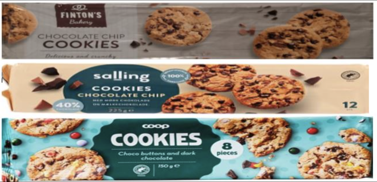 Coop Danmark A/S, Salling Group og Dagrofa ApS afturkalla fleiri sløg av sjokuláta smákøkum (Chokolade Cookies), tí vandi er fyri at metalsplintur eru í køkunum.