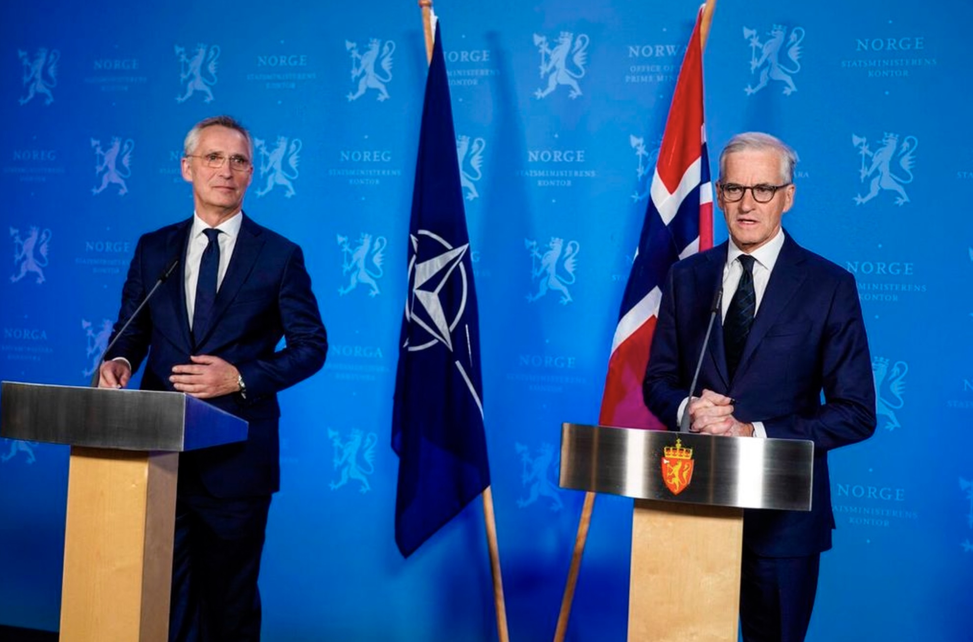 Á einum felags tíðindafundi við fráfarandi aðalskrivaran í Nato, Jens Stoltenberg, segði norski forsætisráðharrin millum annað: