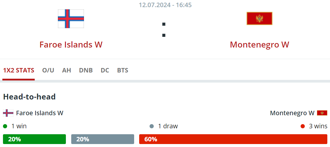 9. apríl í ár vann Montenegro 5-1 á Føroyum á heimavølli. 1. desember í fjør vann Montenegro heili 9-0 á Føroyum á heimavølli.'