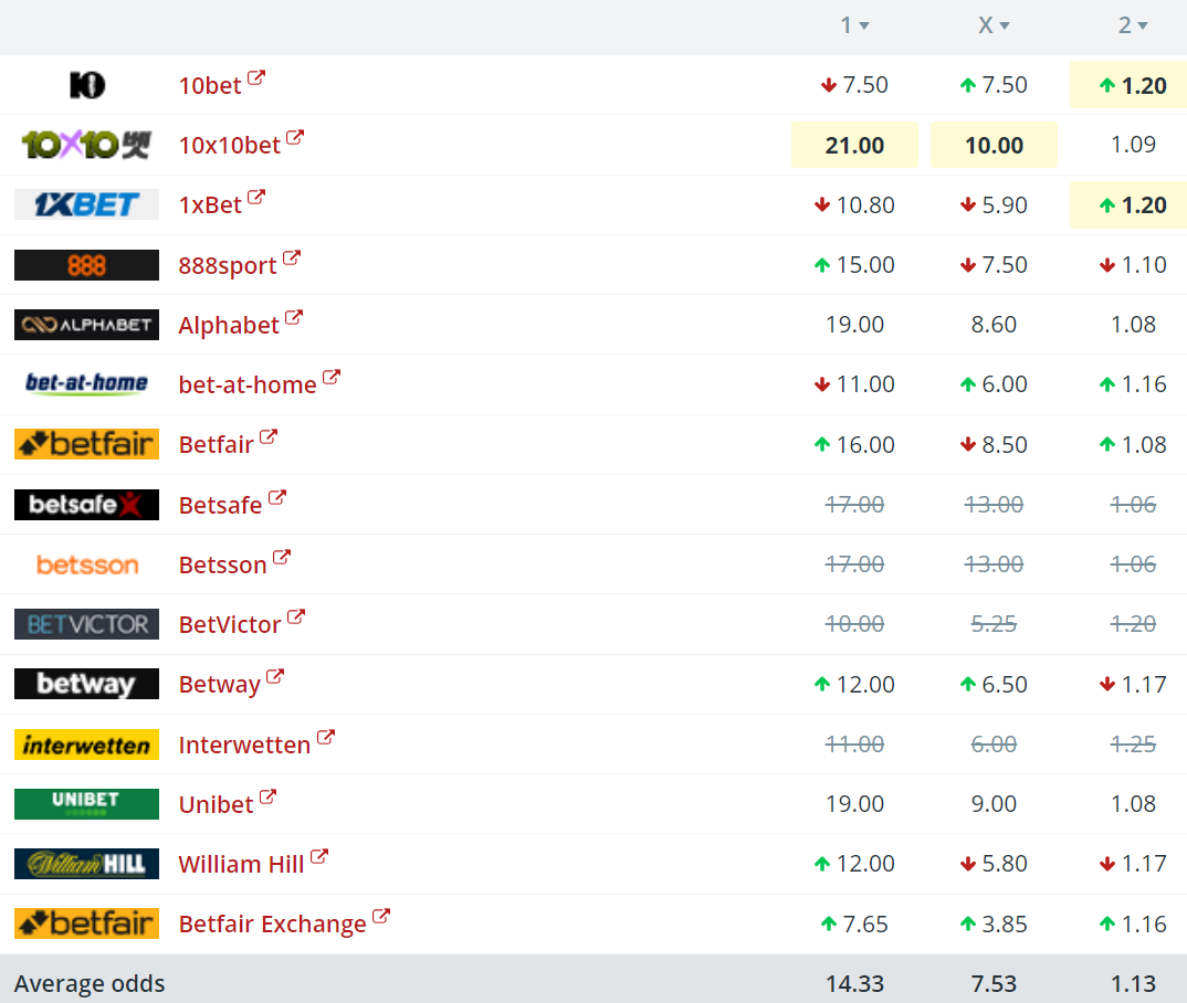 Miðaloddsini upp á heimasigur til Føroyar eru so høg sum 14,33.