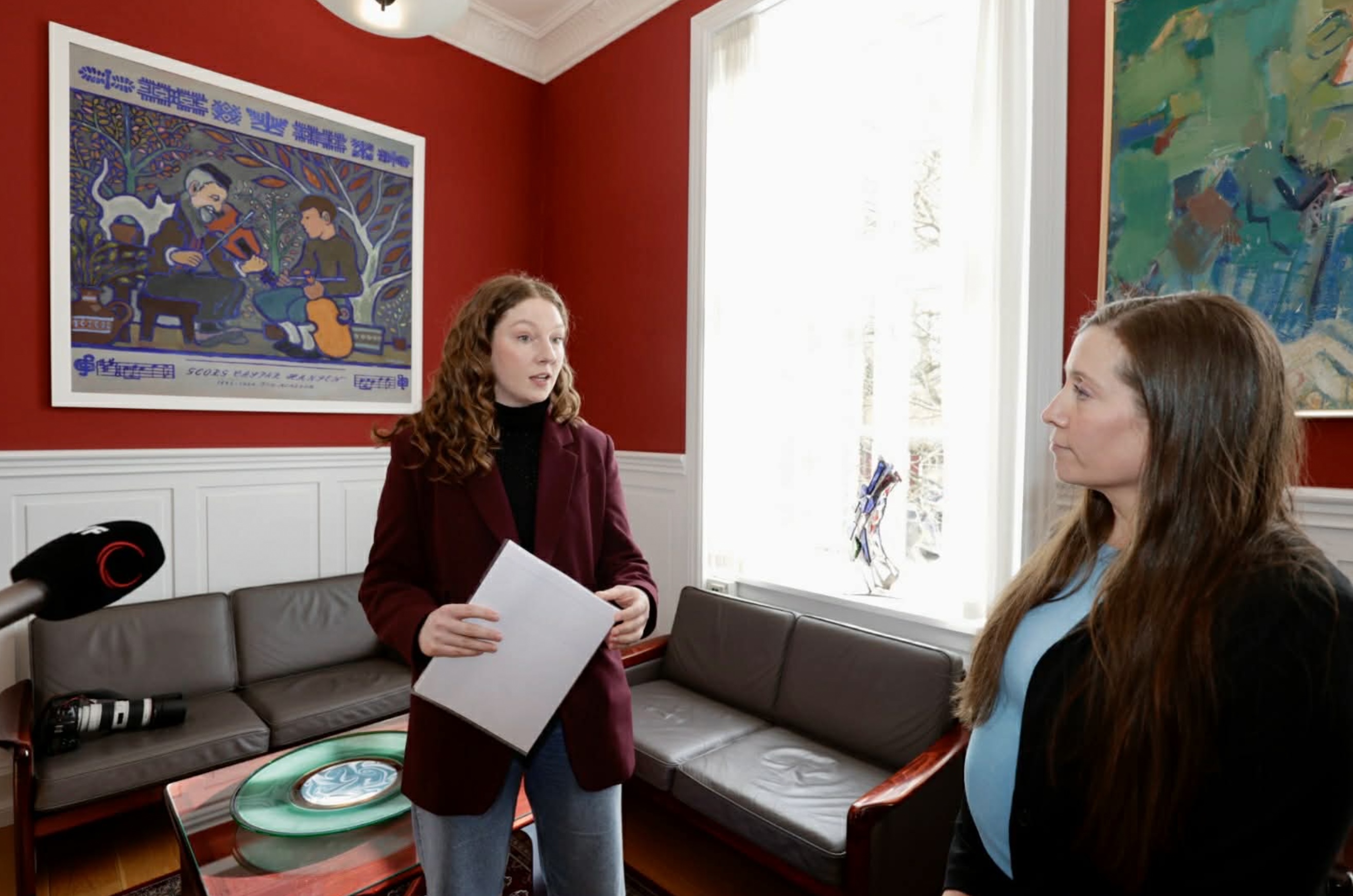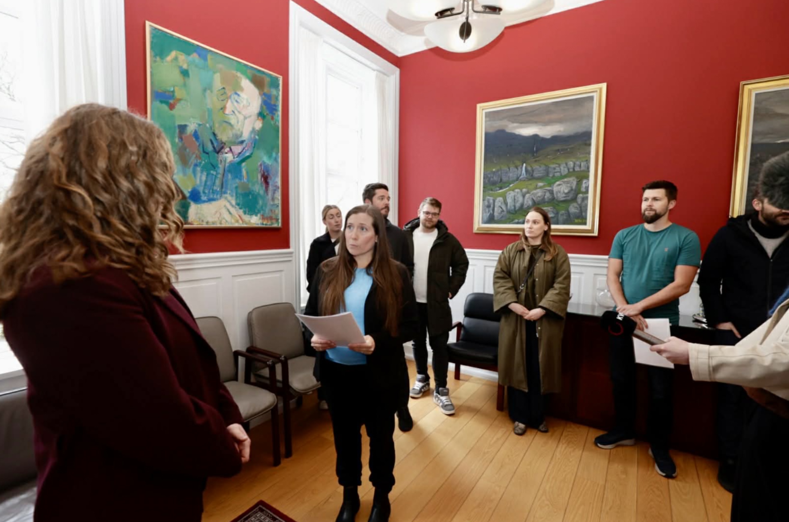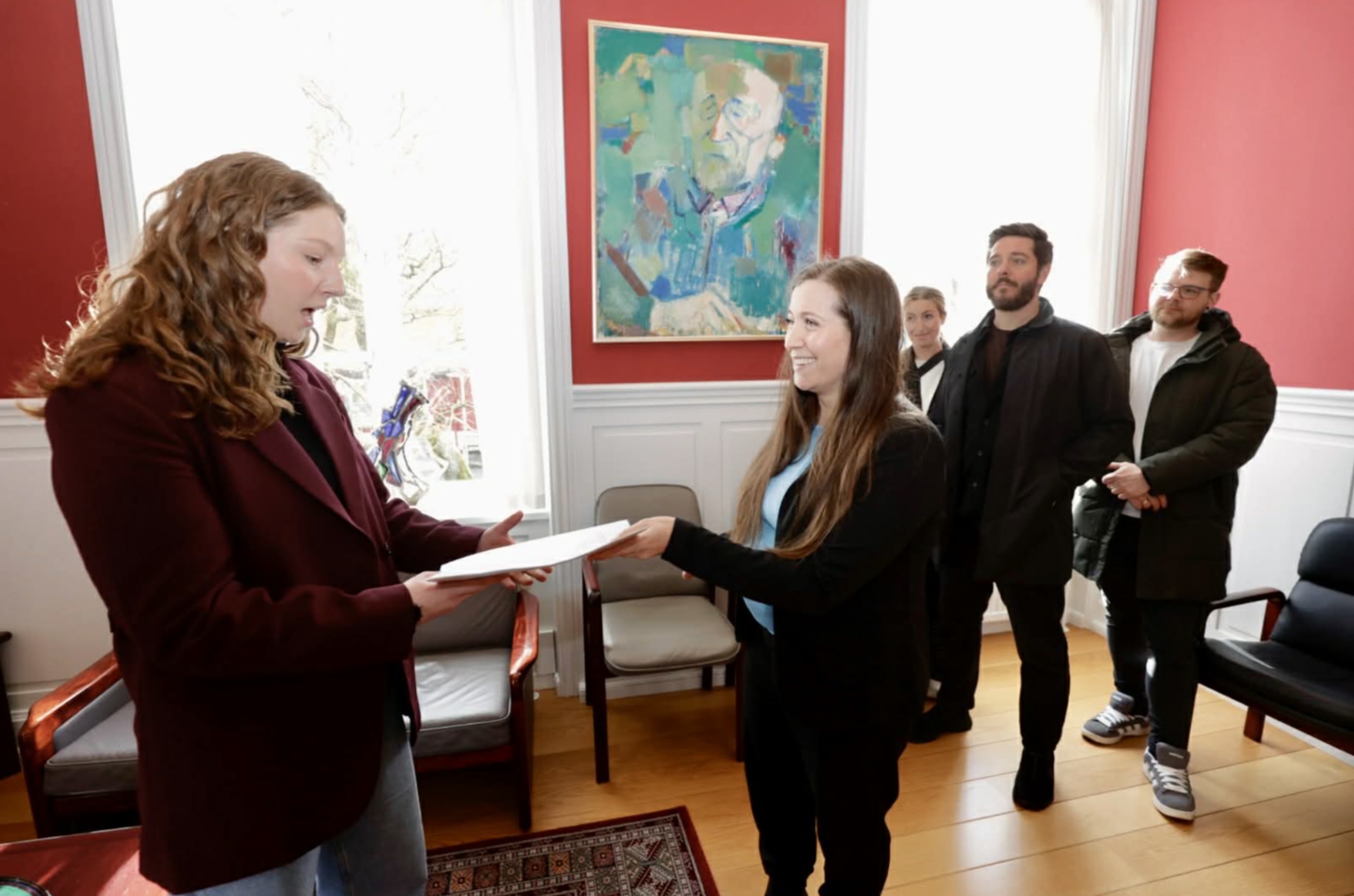 Súsanna Dal Jákupsdóttir handa Elsu Berg, borgarstjóra, tær 500 undirskriftirnar vegna foreldrini Mynd: Álvur Haraldsen