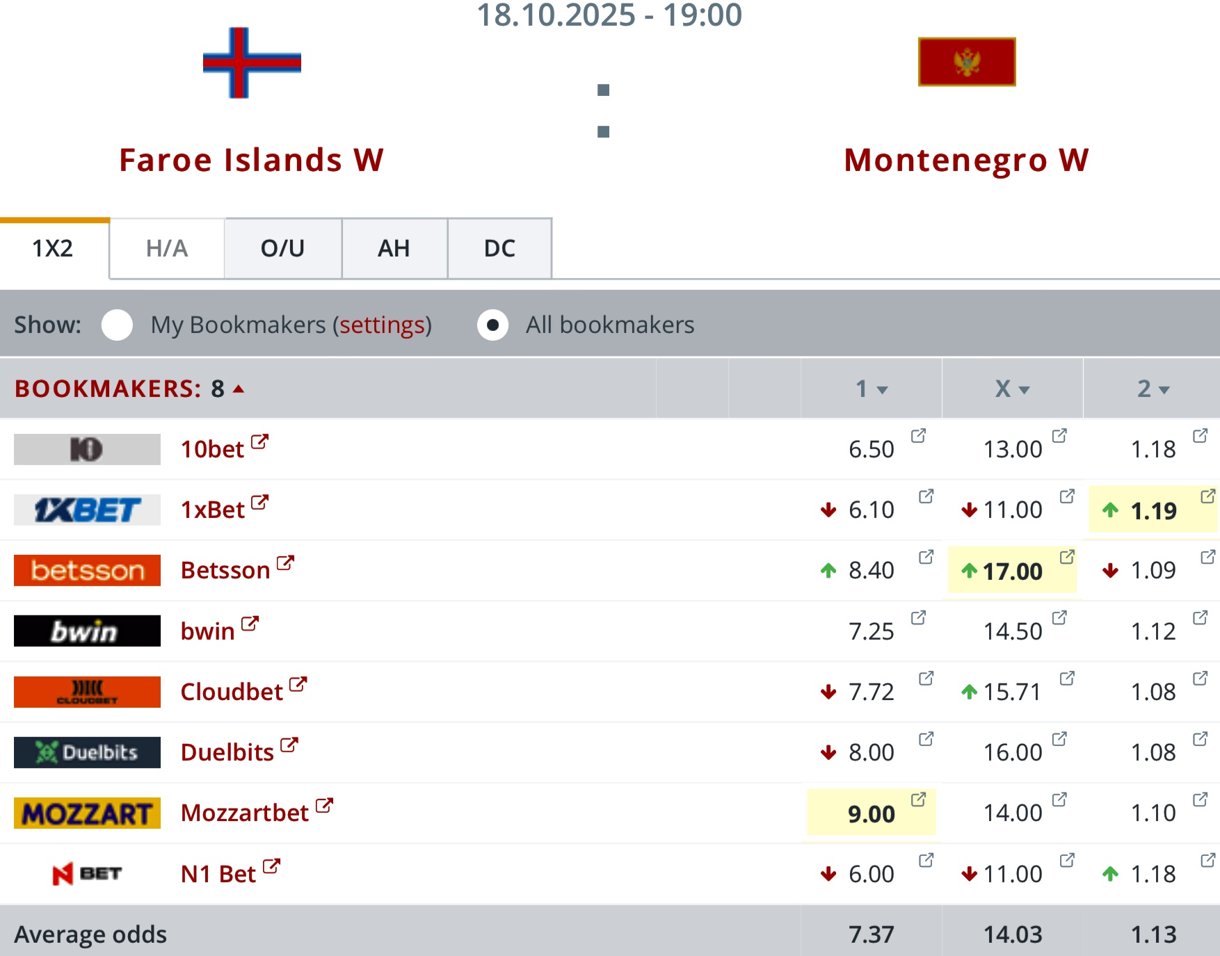 Miðaloddsini upp á montenigrianskan útisigur eru 1,13, so talan er um eina stóra favorittstøðu.