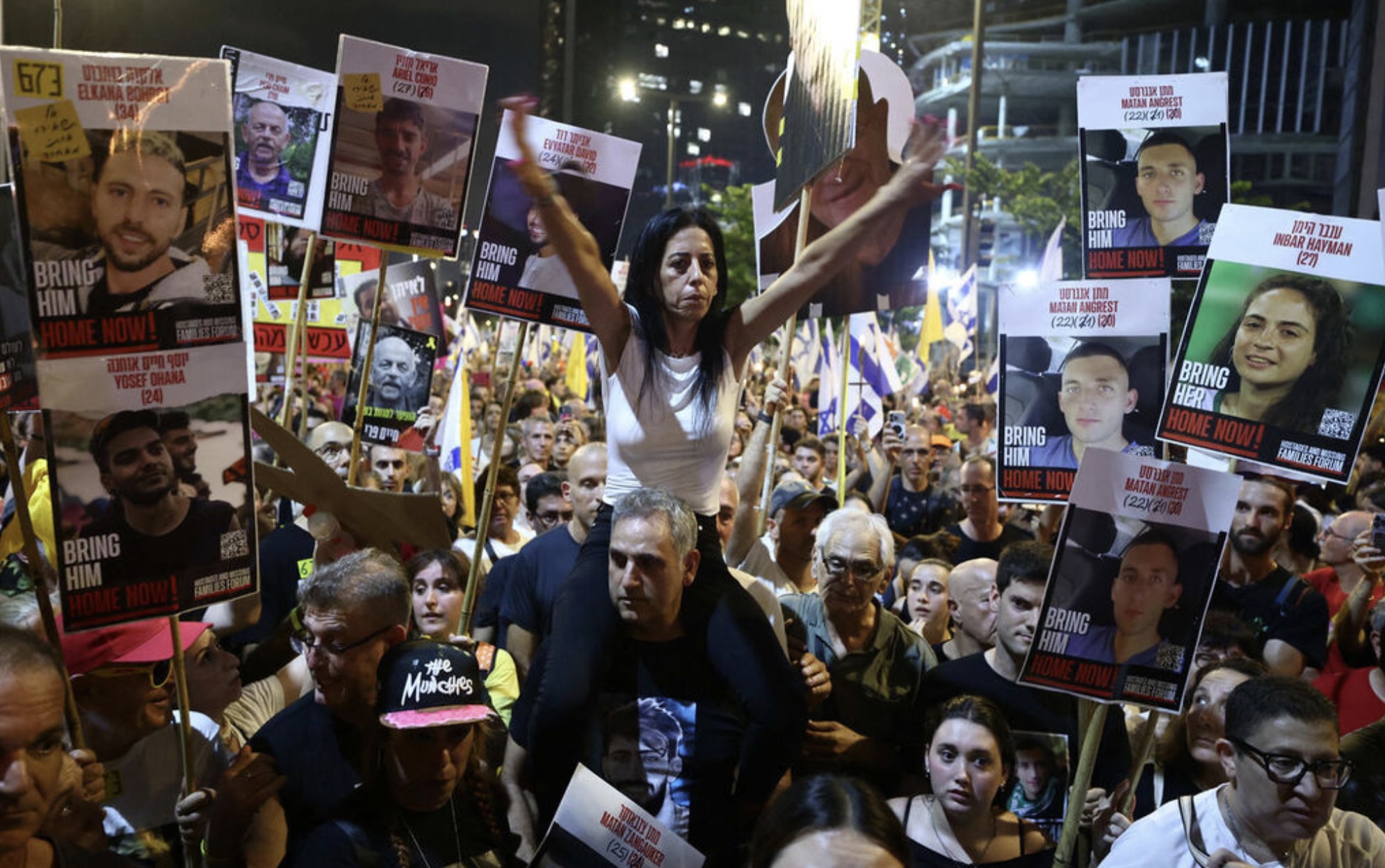 Sambært AFP høvdu mótmælisfólk leygardagin borið myndir av gíslum, sum Hamas framvegis heldur fangi. Tey halda, at stjórnin skal tryggja, at gíslarnir sleppa leysir.