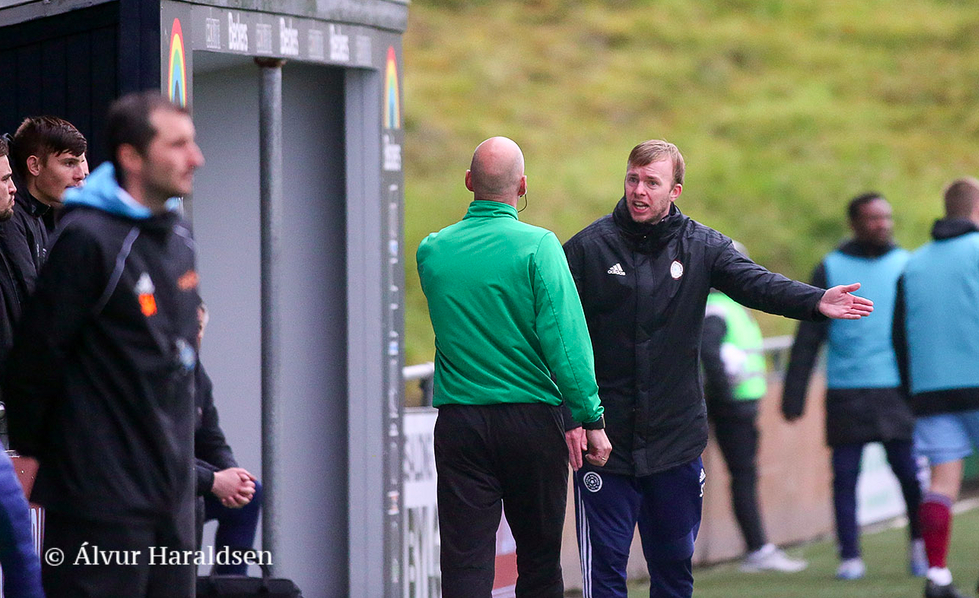 Skálamenn komu á odda aftaná 34.minuttir, tá Jan Ingason Hansen hegnisliga við rygginum móti málinum sendi bóltin í netið til 1-0. Argjamenn vóru avbera ónøgdir við sítt egna avrik í fyrra hálvleiki, men tað bleiv nakað betri í seinna hálvleiki.