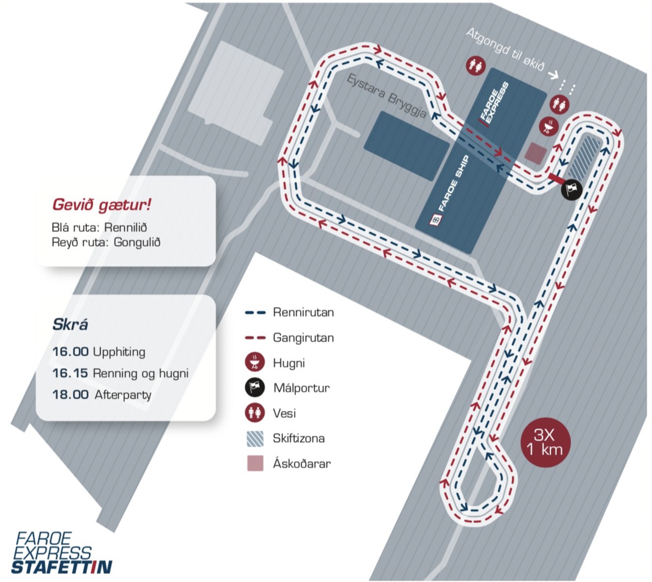 Til ársins stafettrenning, sum er á Skansabryggjuni í dag, luttaka yvir 1.300 rennarar og gongufólk.