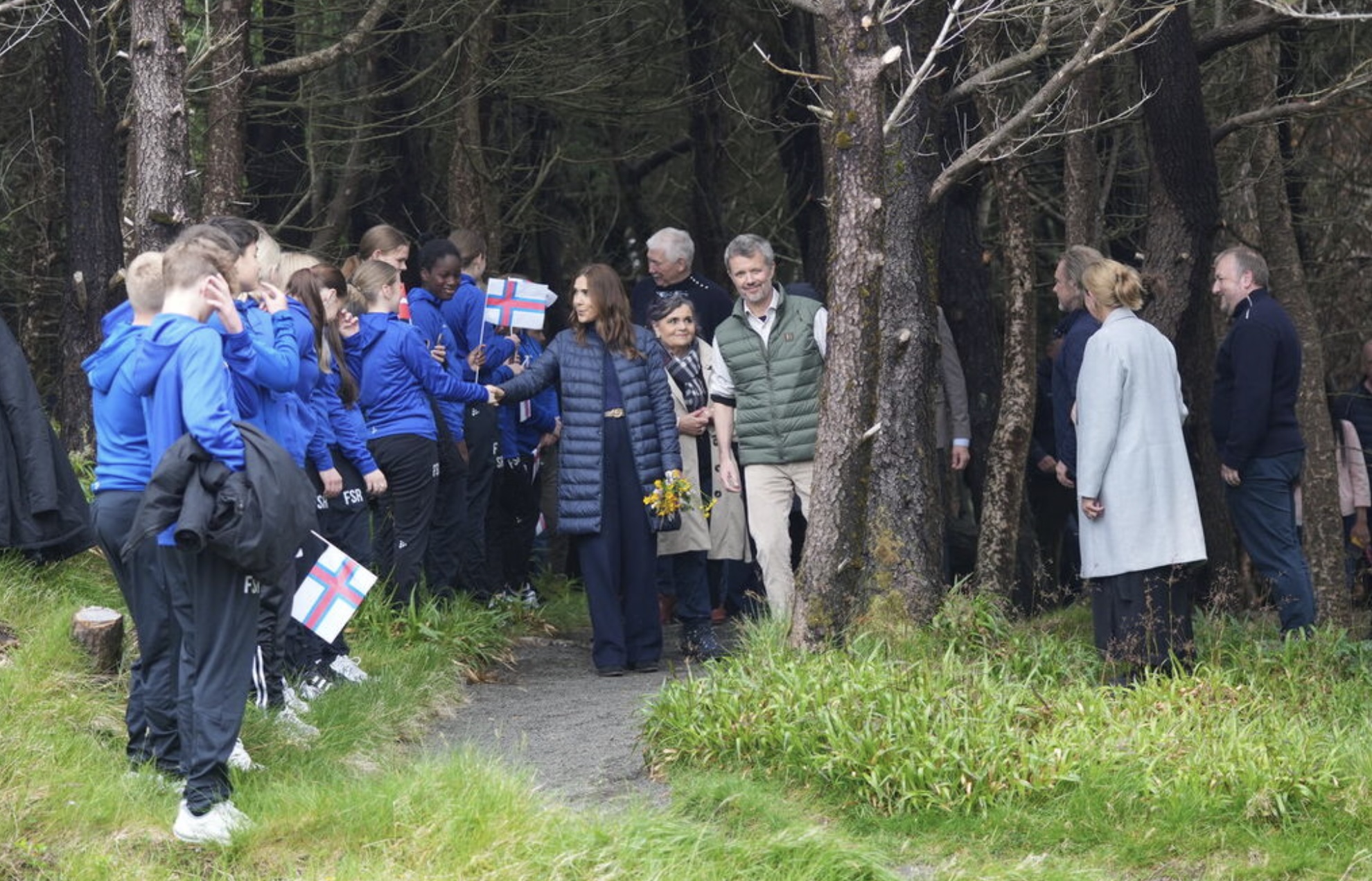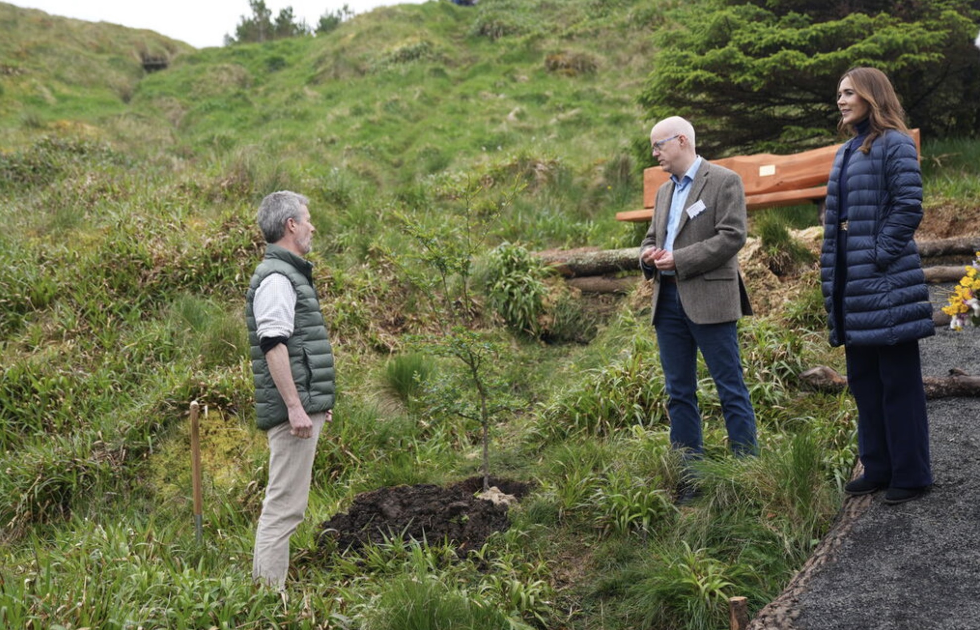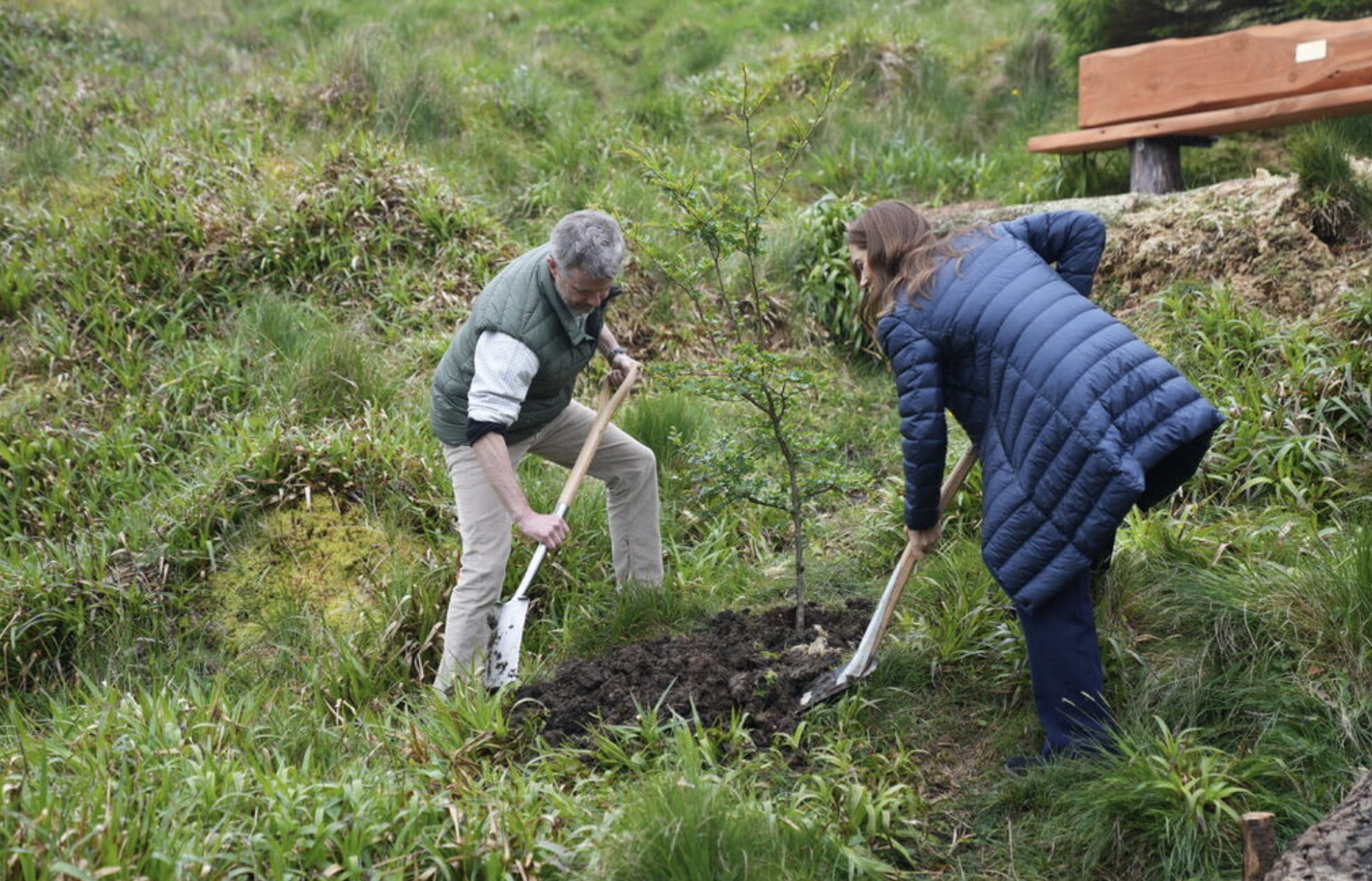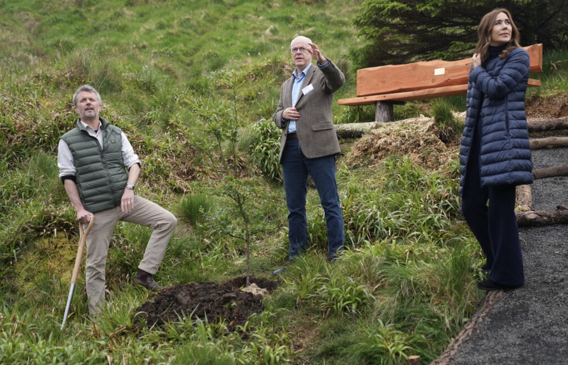 Fríðrikur kongur og Mary drotning plantaðu eitt træ í viðarlundini í Trongisvági. Træið skal vísa, at viðarlundin í fjør fylti 100 ár. Mynd: Ida Marie Odgaard/Ritzau Scanpix