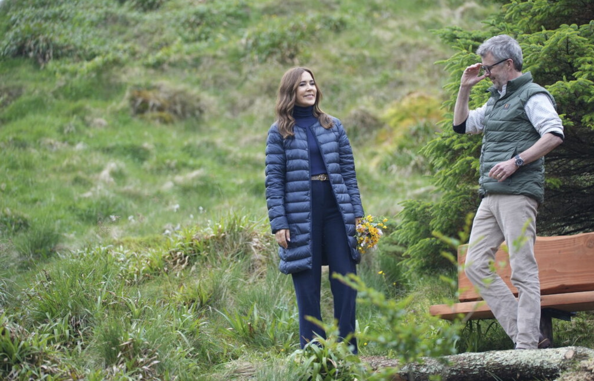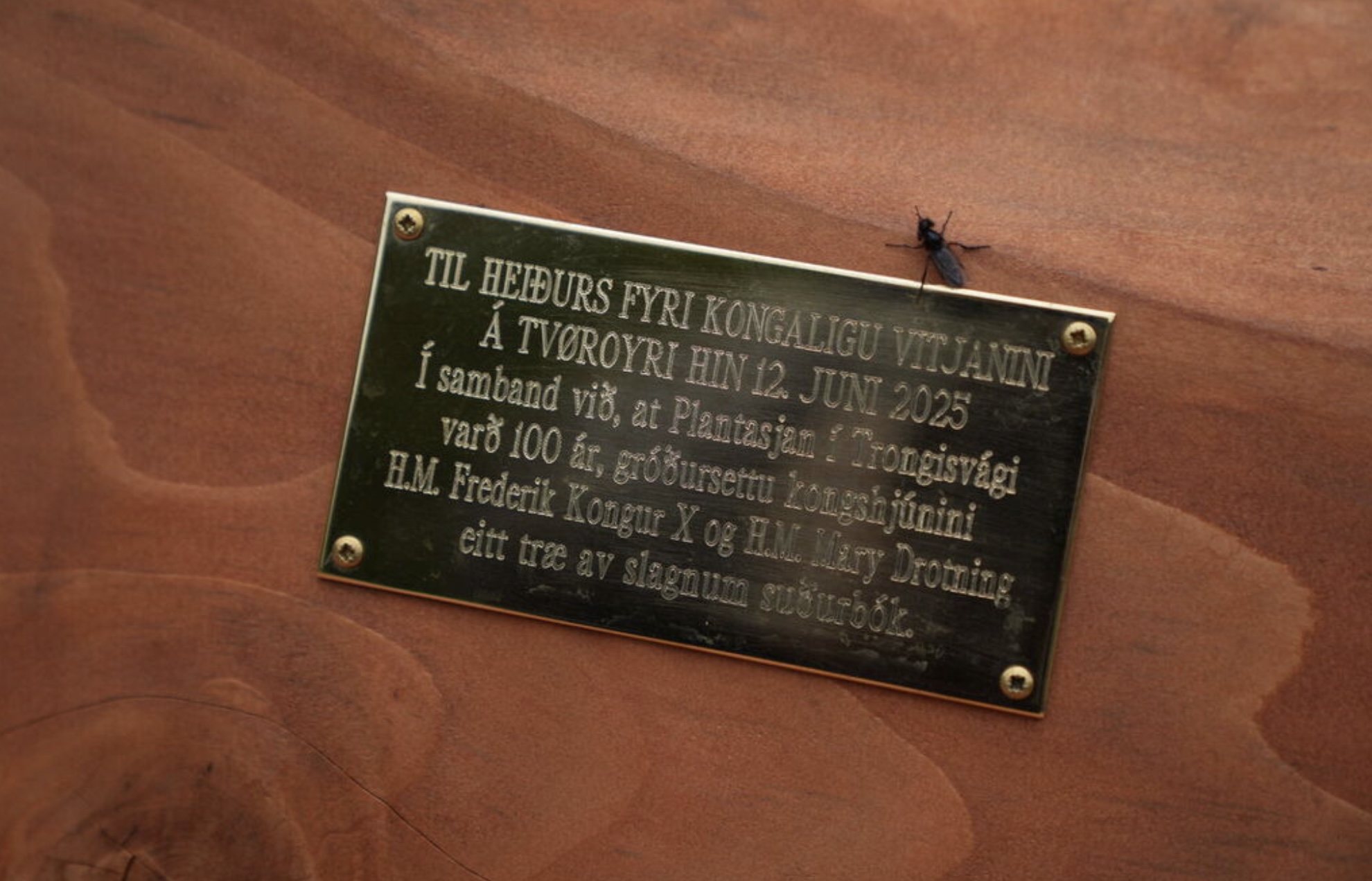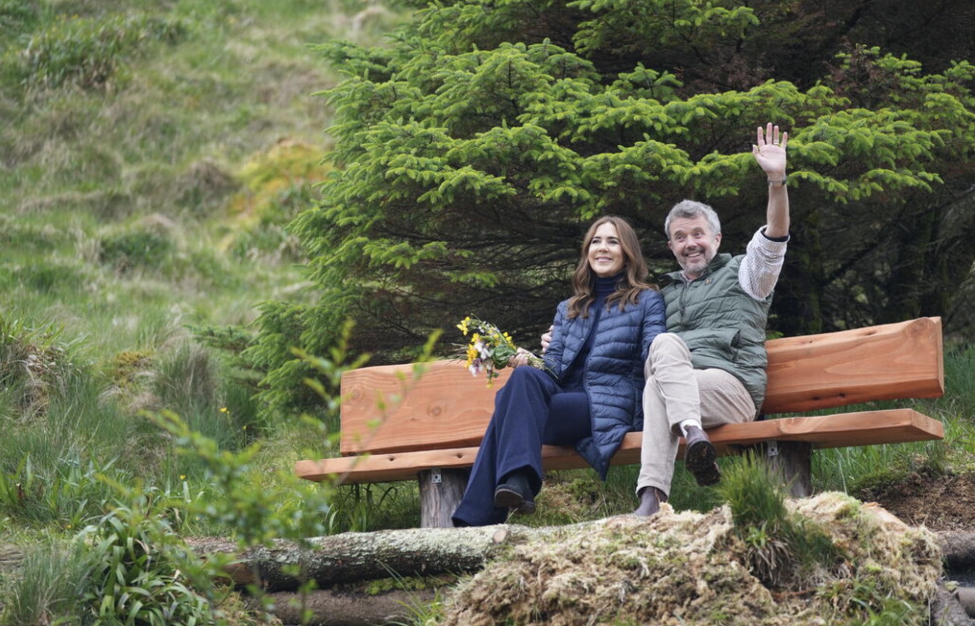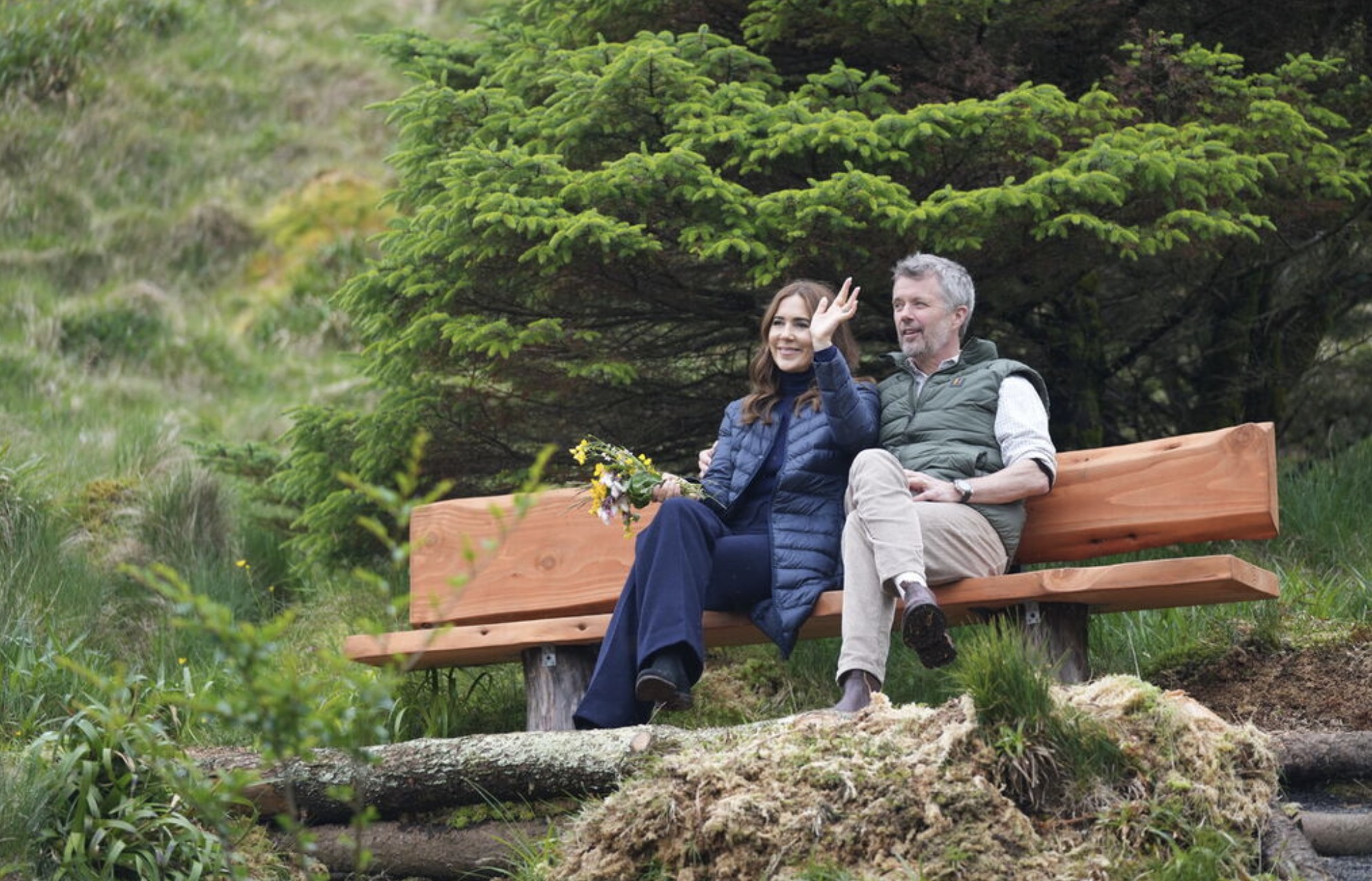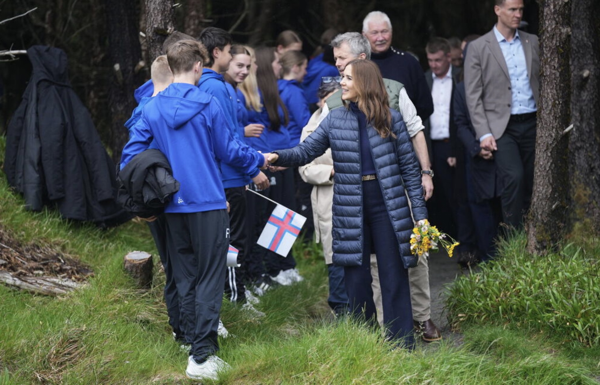 Fríðrikur kongur og Mary drotning plantaðu eitt træ í viðarlundini í Trongisvági. Træið skal vísa, at viðarlundin í fjør fylti 100 ár. Mynd: Ida Marie Odgaard/Ritzau Scanpix