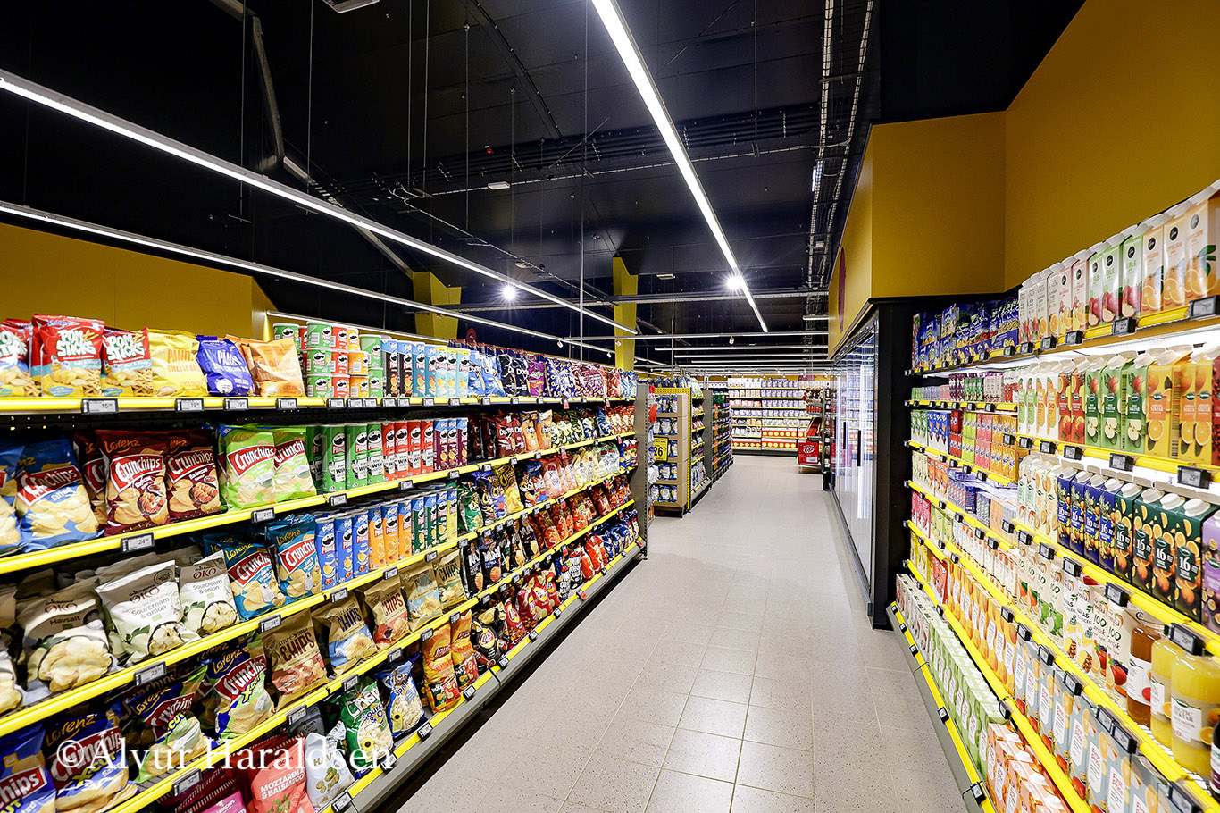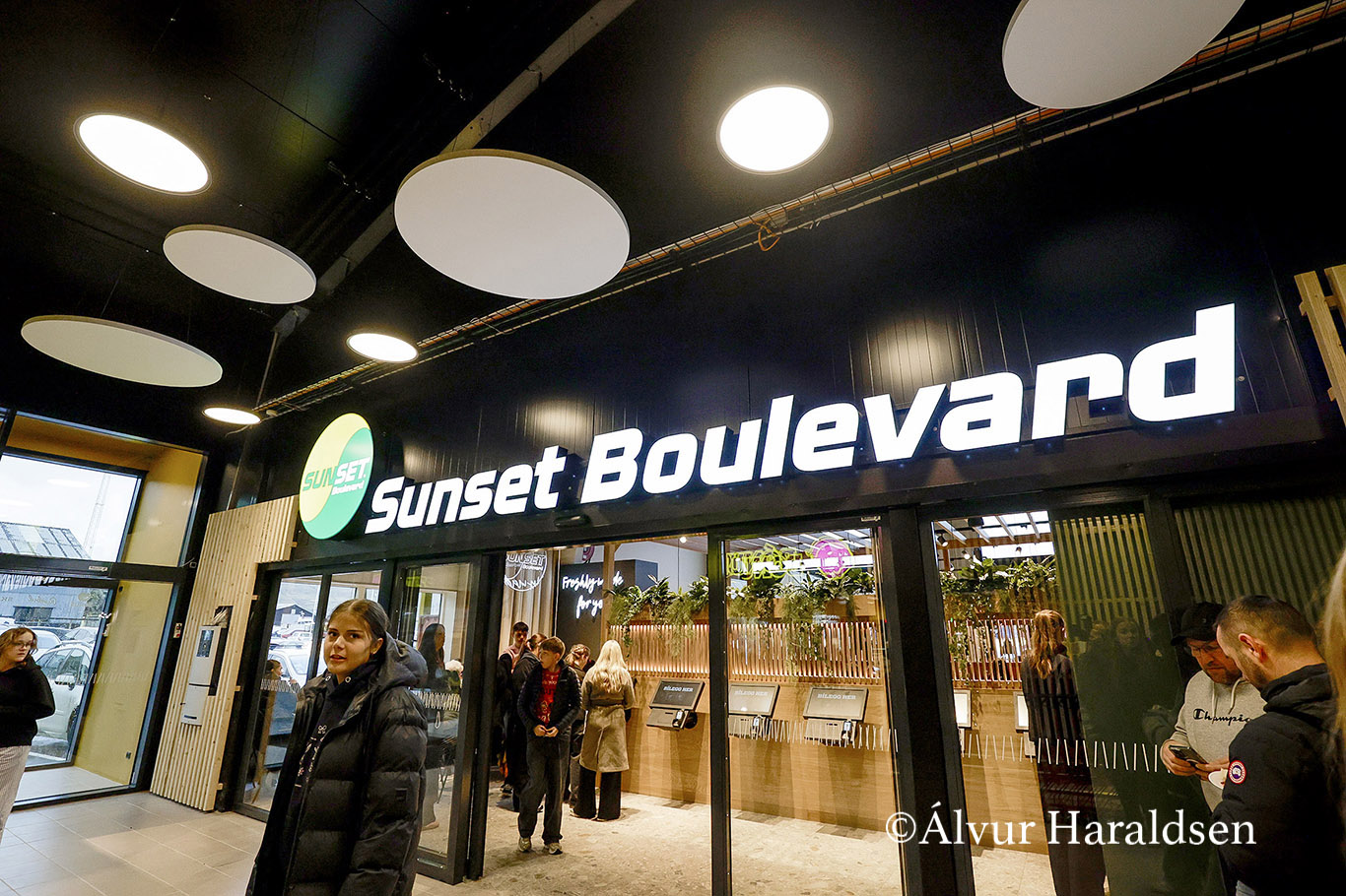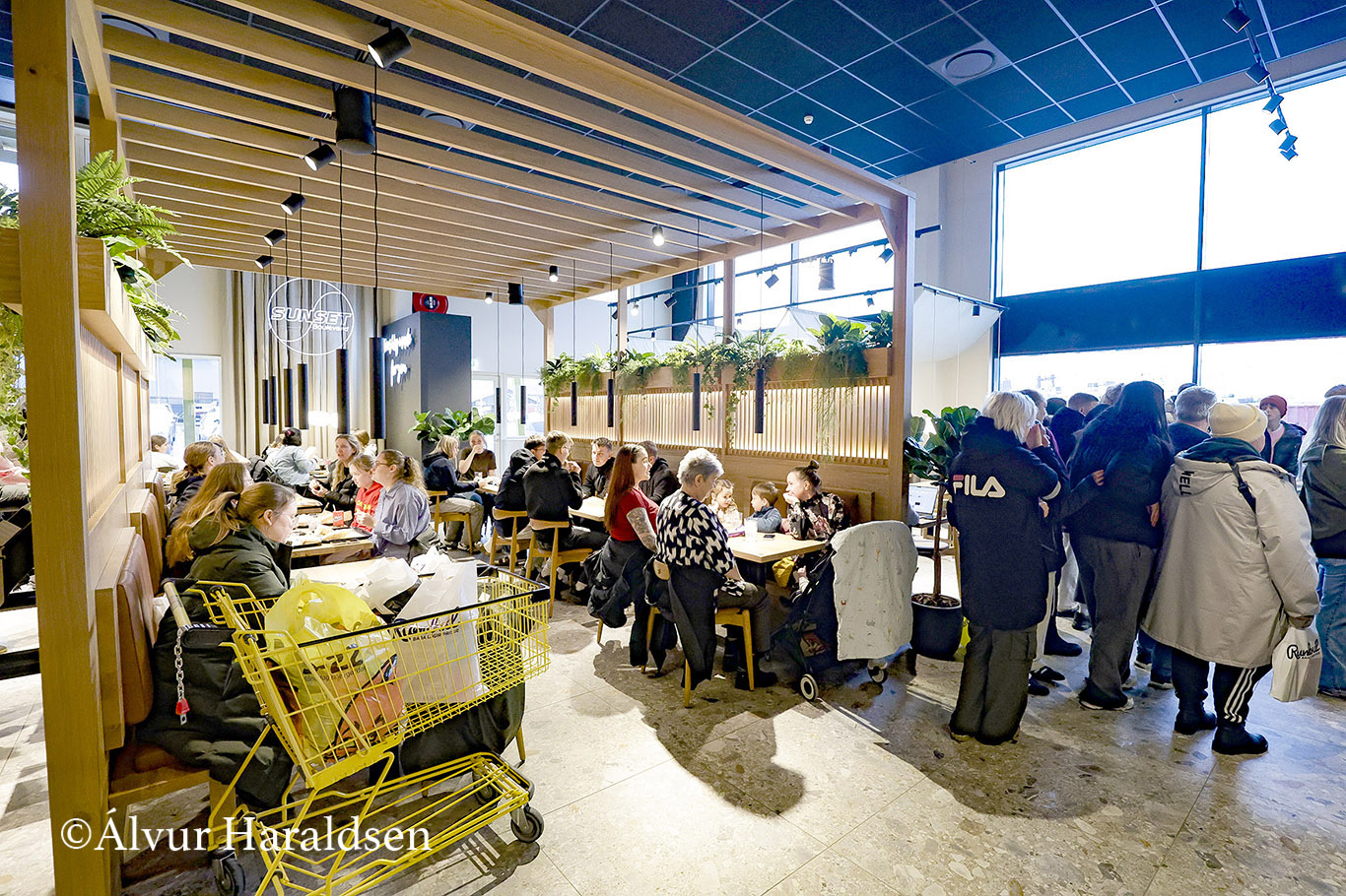 Handilsbygningurin Bryggjan í Runavík latin upp í dag. í bygninginum eru Bónus, Rumbul, Skálkur og Sunset.