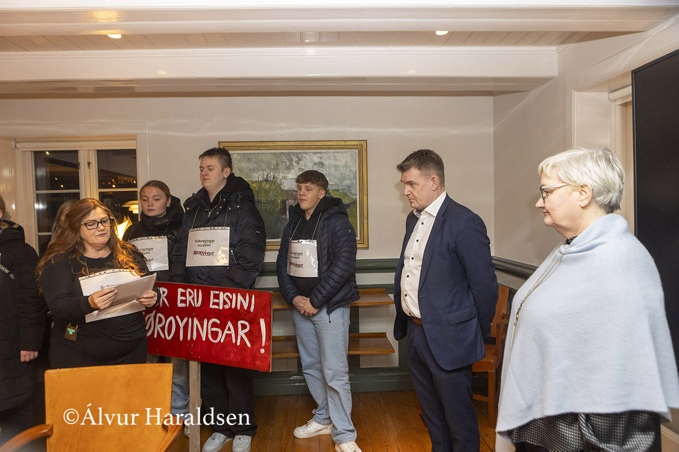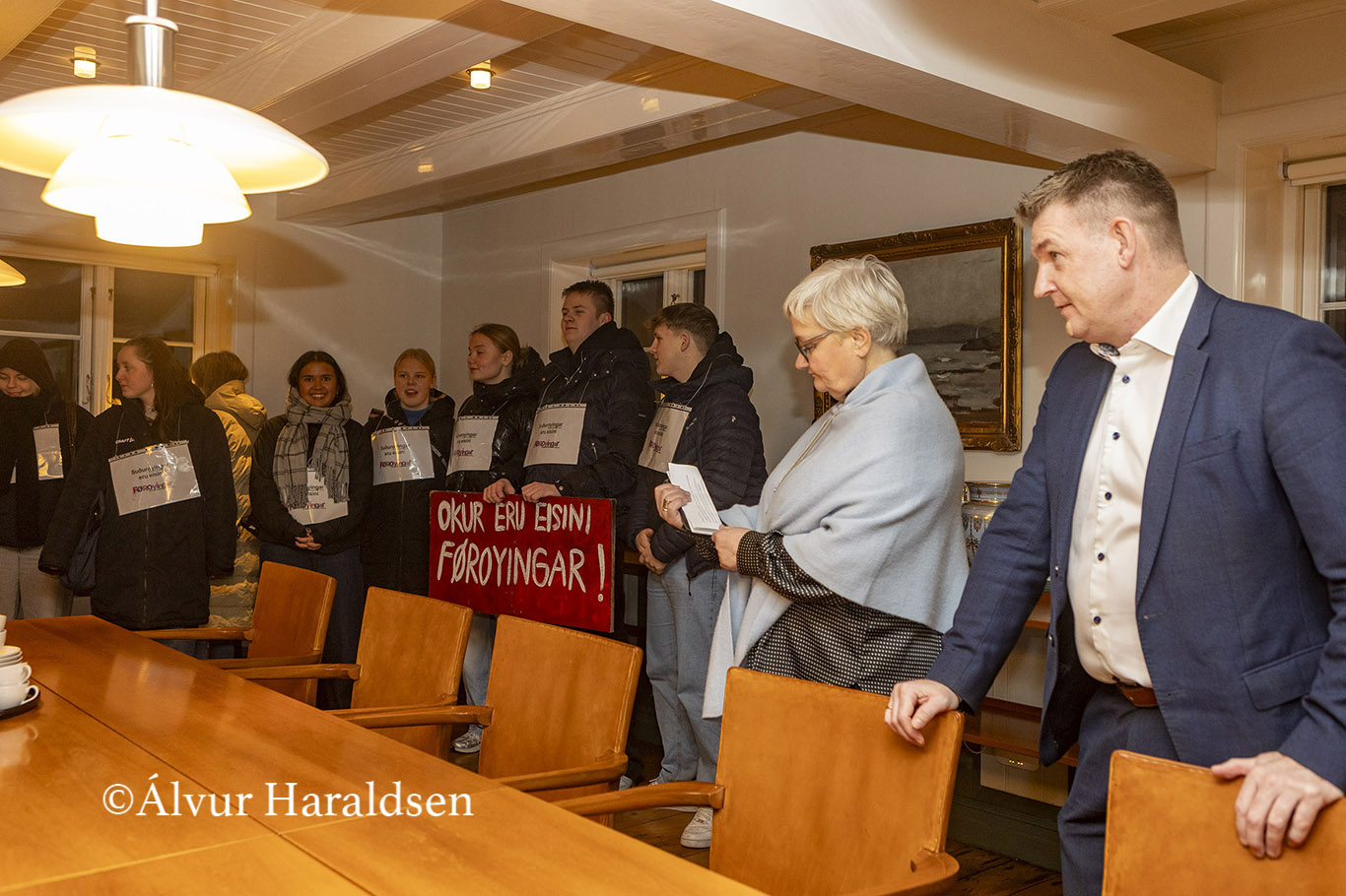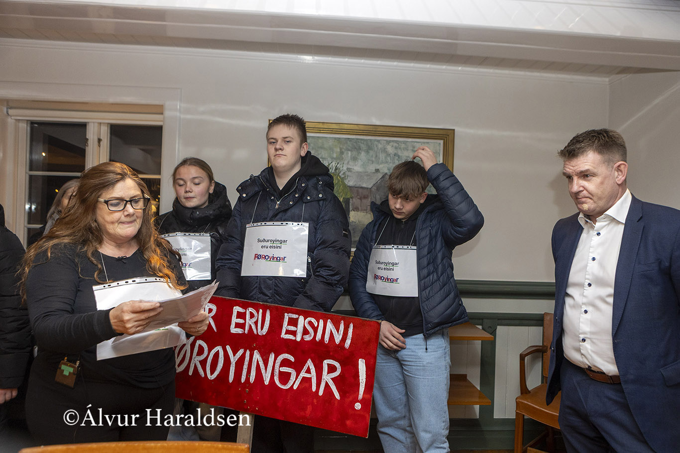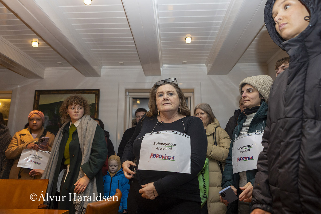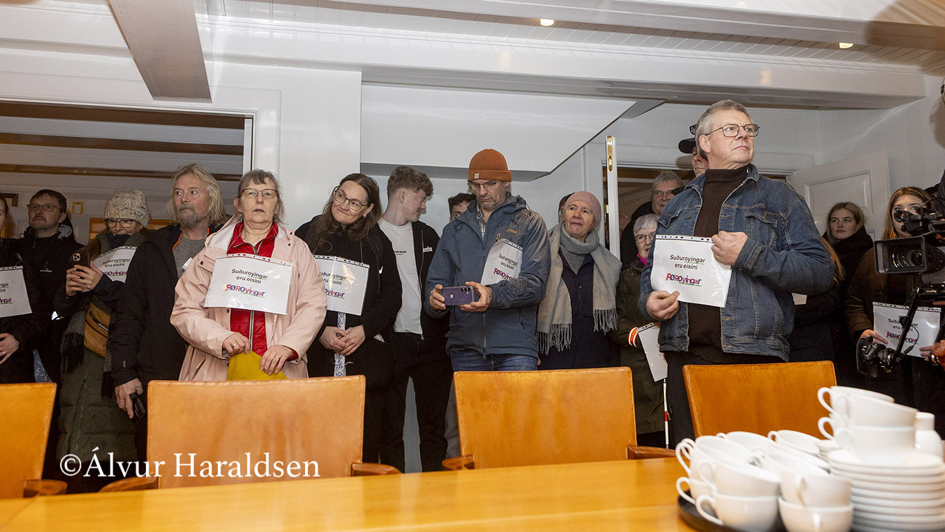 Mótmælis fólk úr Suðuroy, vitjaðu í Tinganesi í morgun.