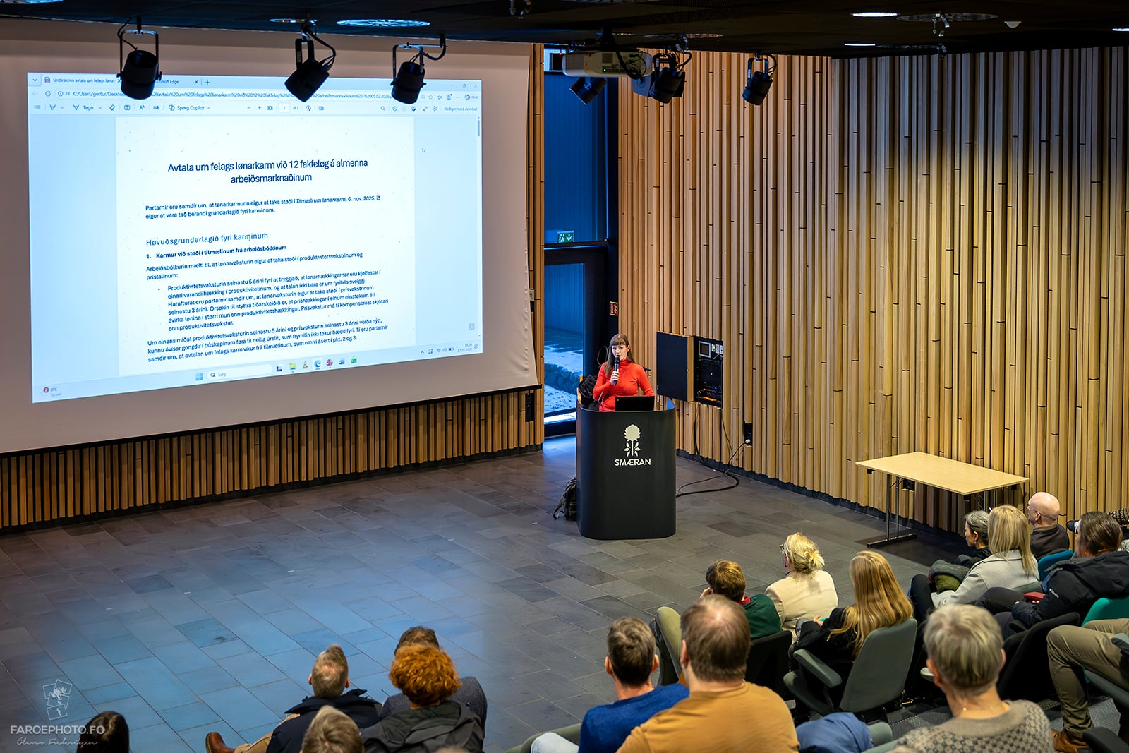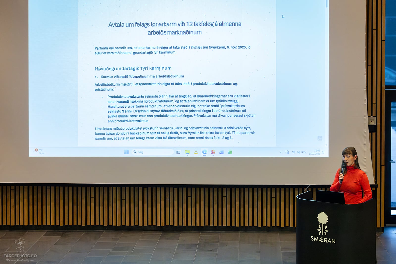 Fakfeløgini aftanfyri avtaluna um felags lønarkarm, sum var undirskrivað 5. februar við Fíggjarmálaráðið, bjóðaðu til almenna framløgu av avtaluni í Smæruni, týsdagin 17. februar kl 16, har búskaparfrøðingar, sum hava gjørt tilmælið, greiddu frá tilmælinum, og avtalan um felags lønarkarm verður gjøgnumgingin.