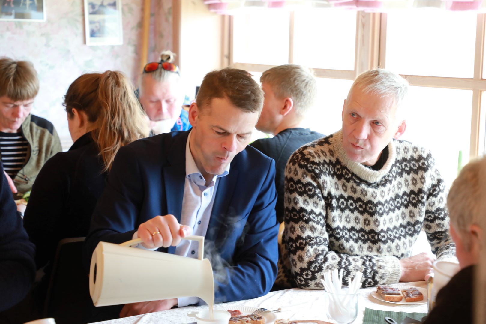 Bóndin á Trøllanesi, Jóhannus Kallsgarð, hevði boðið til avdúkingina úti í Kallinum í dag.