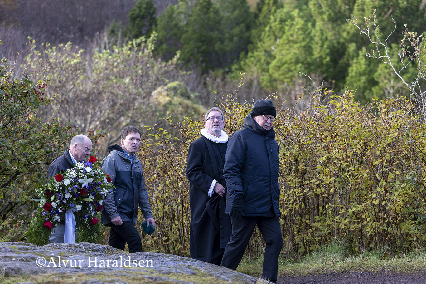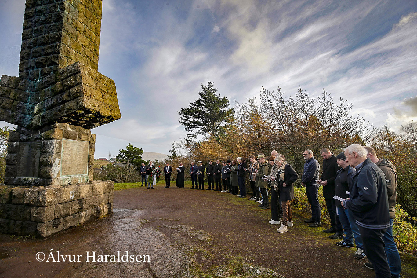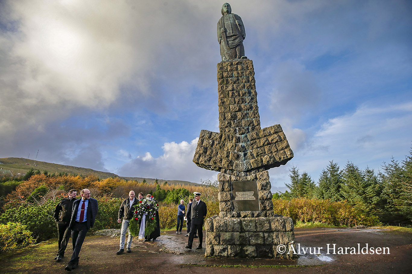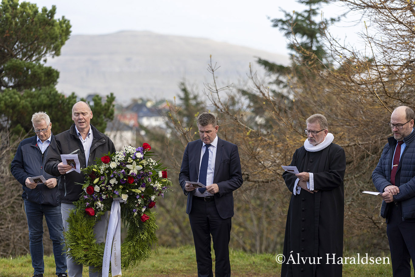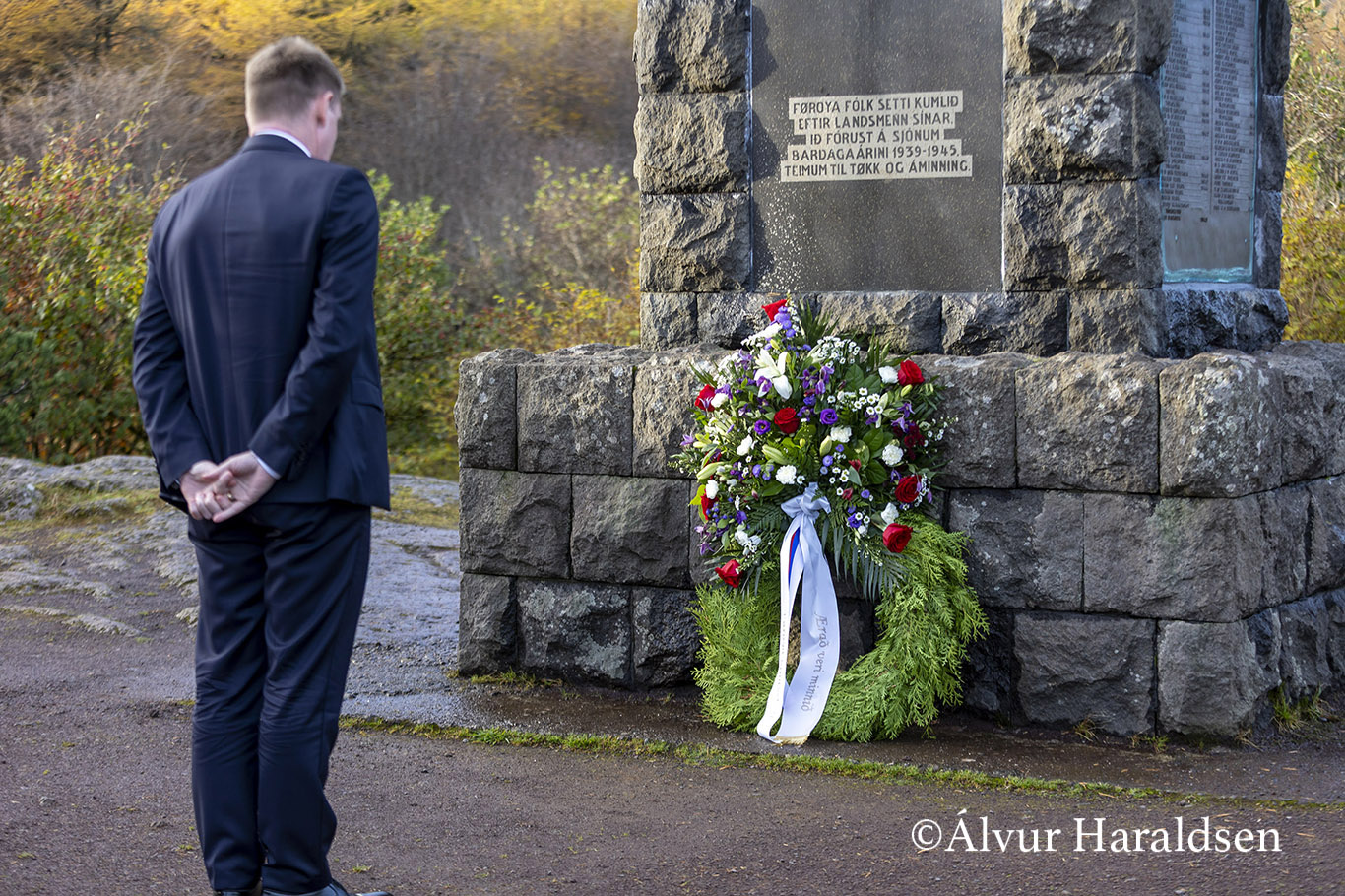 Løgmaður hevur lagt krans við minnisvarðan í Viðarlundini í Havn