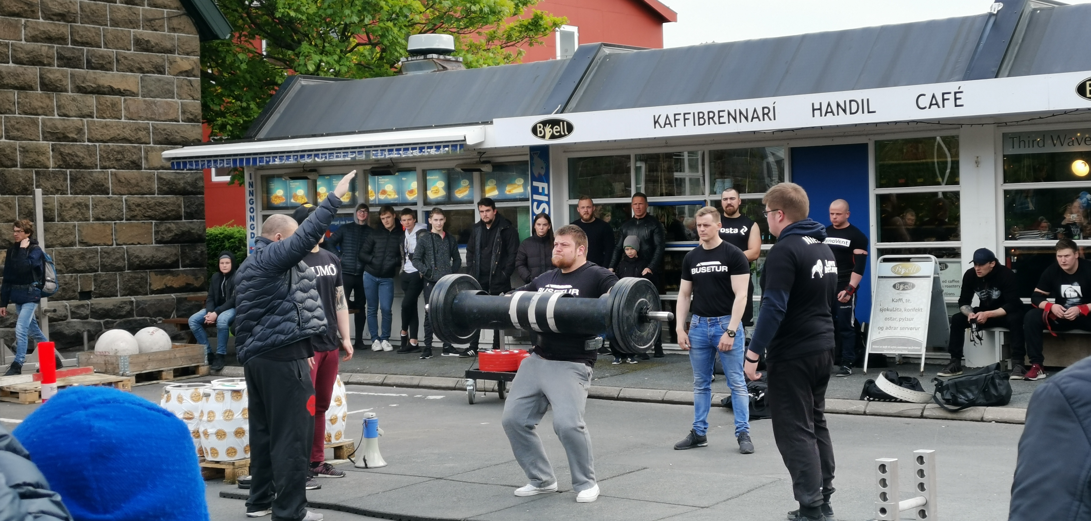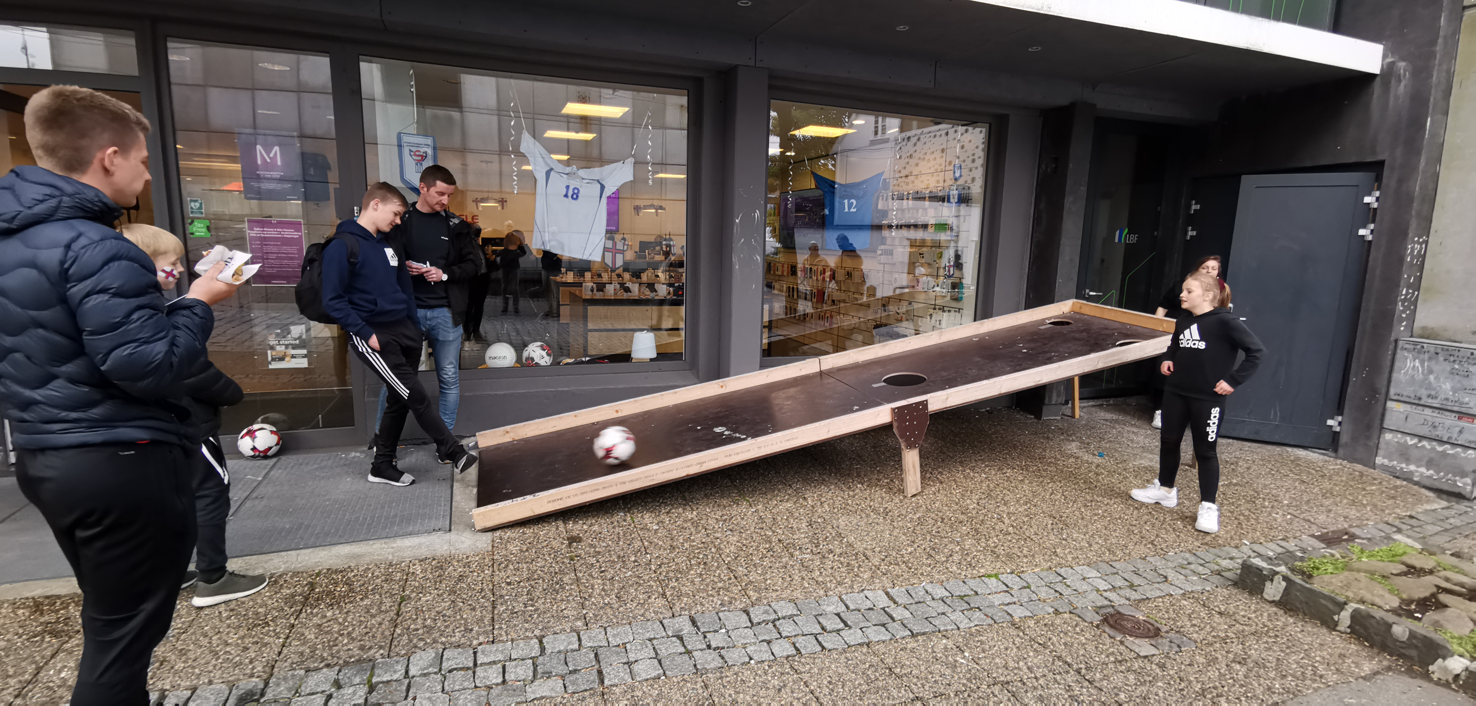 Umframt, at mentanarnáttin savnar nógv fólk kring um í havnargøtum, merkist tað serliga niðri í Tórsgøtu og Vágsbotni, at landsdysturin millum Føroyar og Spania eisini hevur verið vístur á stórskíggja.