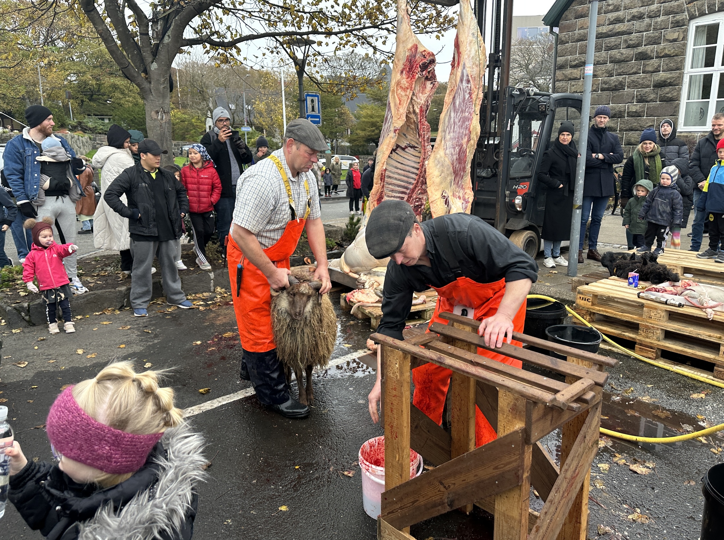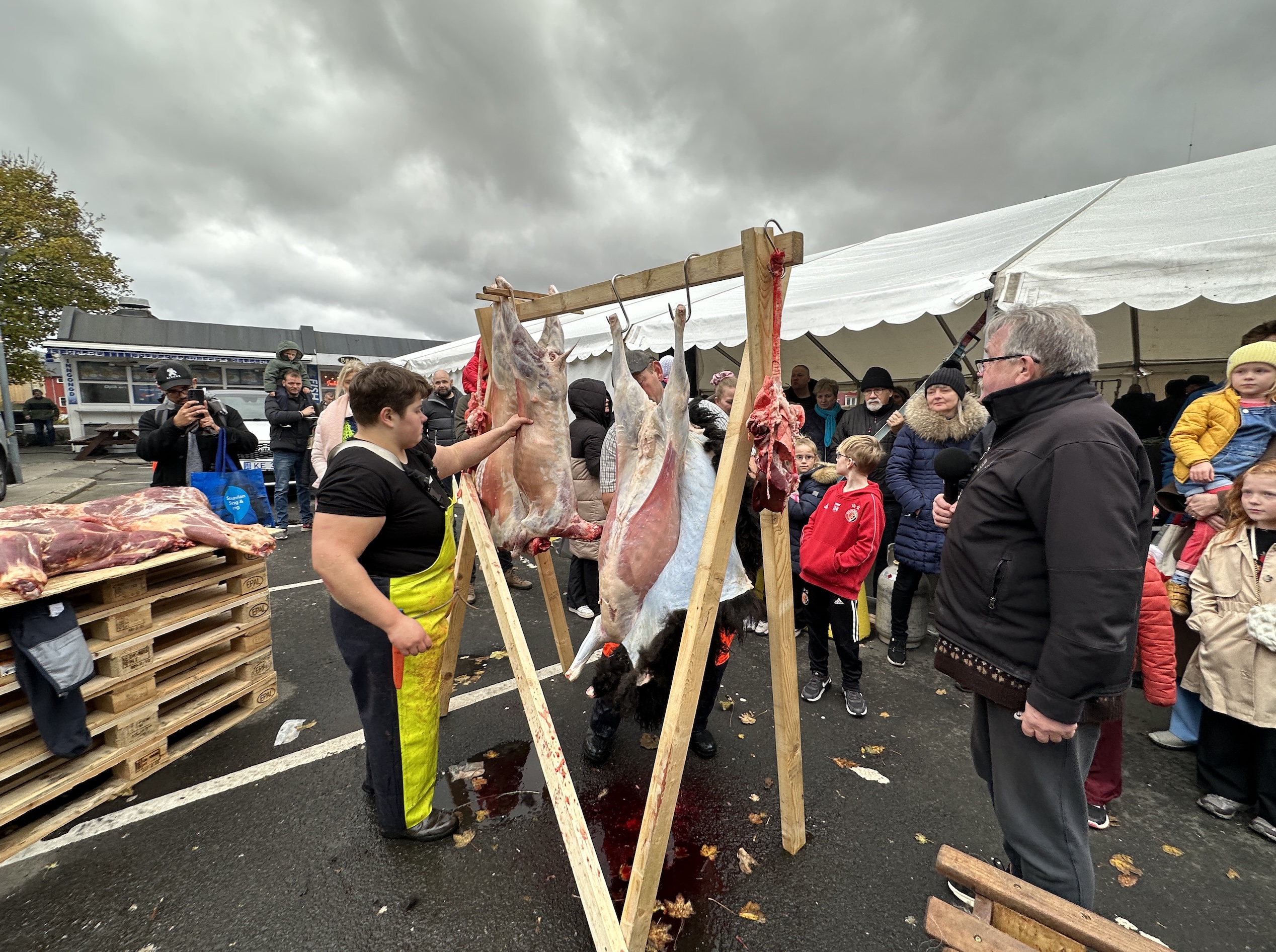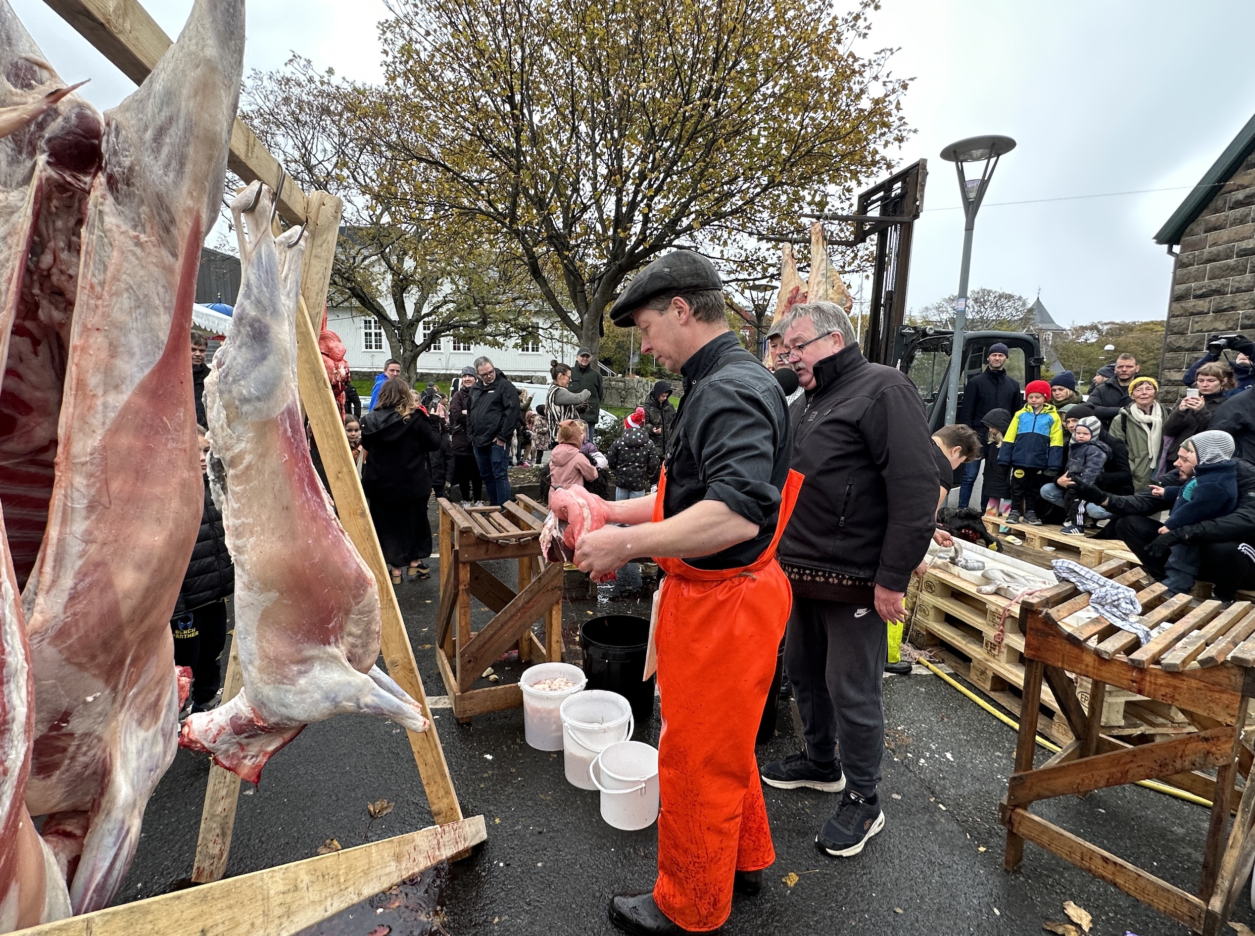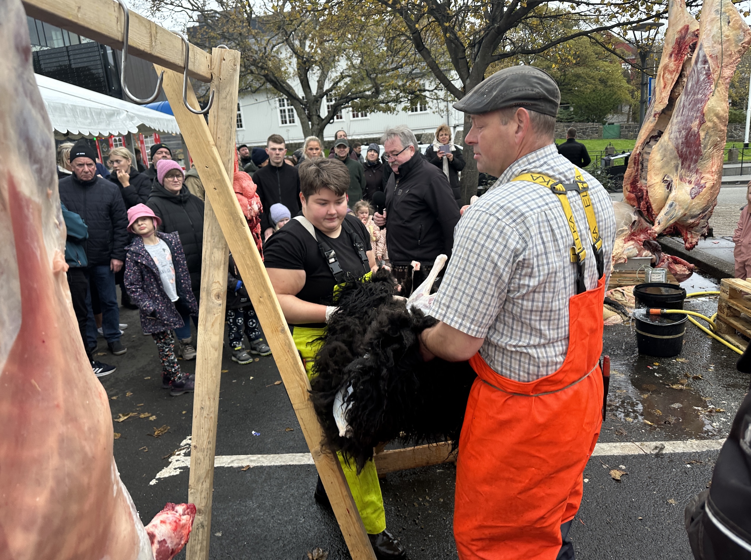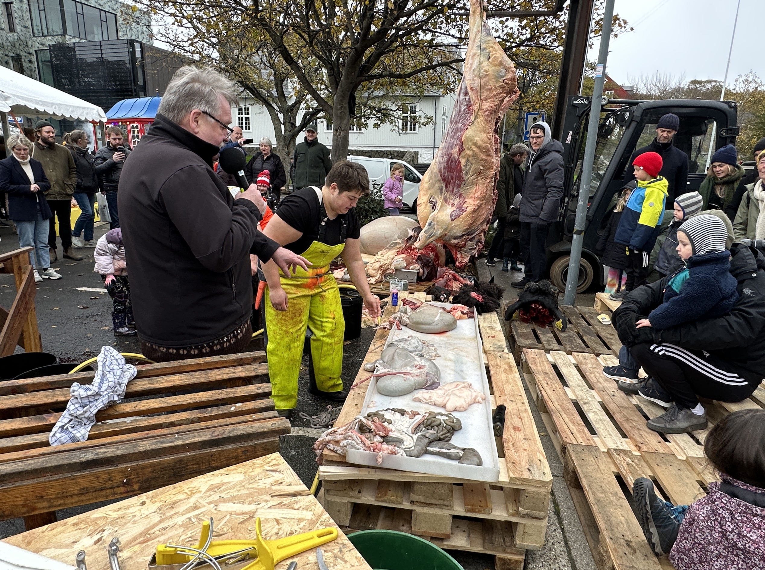 Slaktið byrjaði í morgun klokkan 11, tá tann fyrst seyðurin varð flettur. Síðani hava kokkar gjørt ymsar rætti, fyrilestur verið um reinføri og sølubásar við føroyskum kjøti og grønmeti.