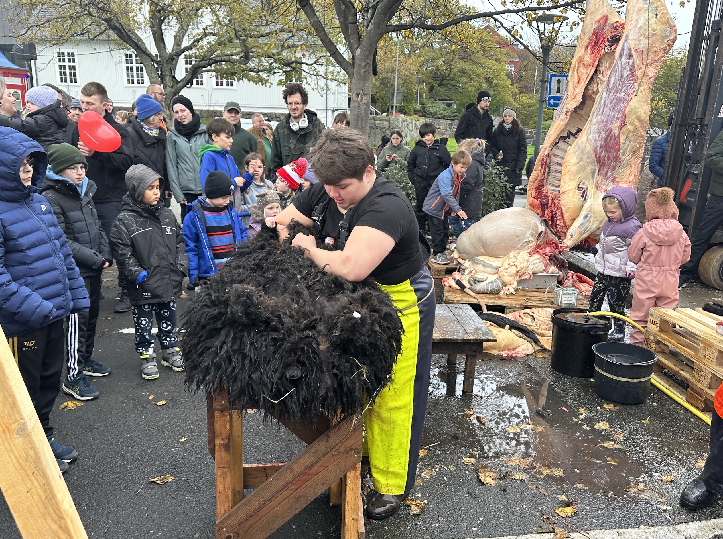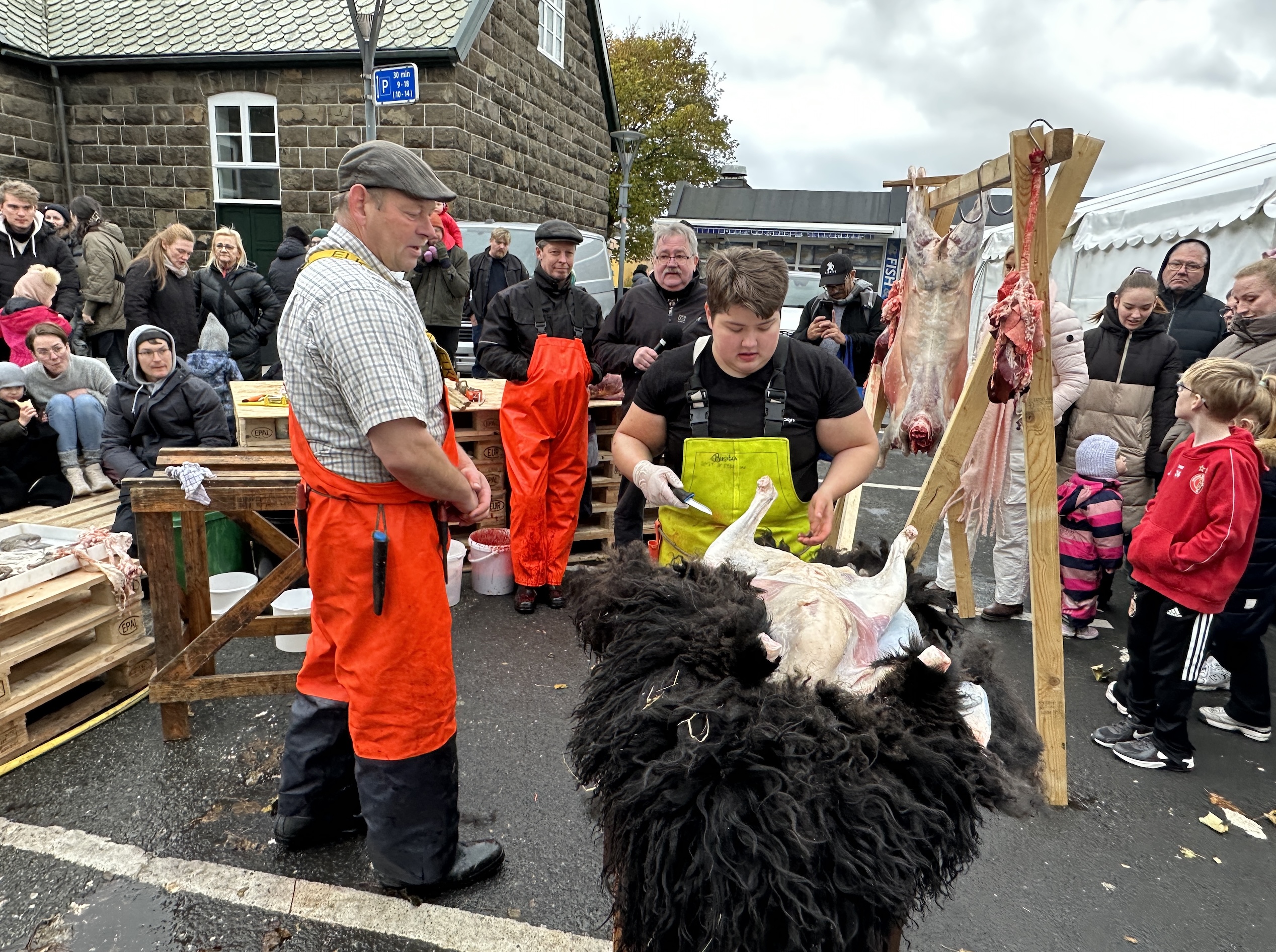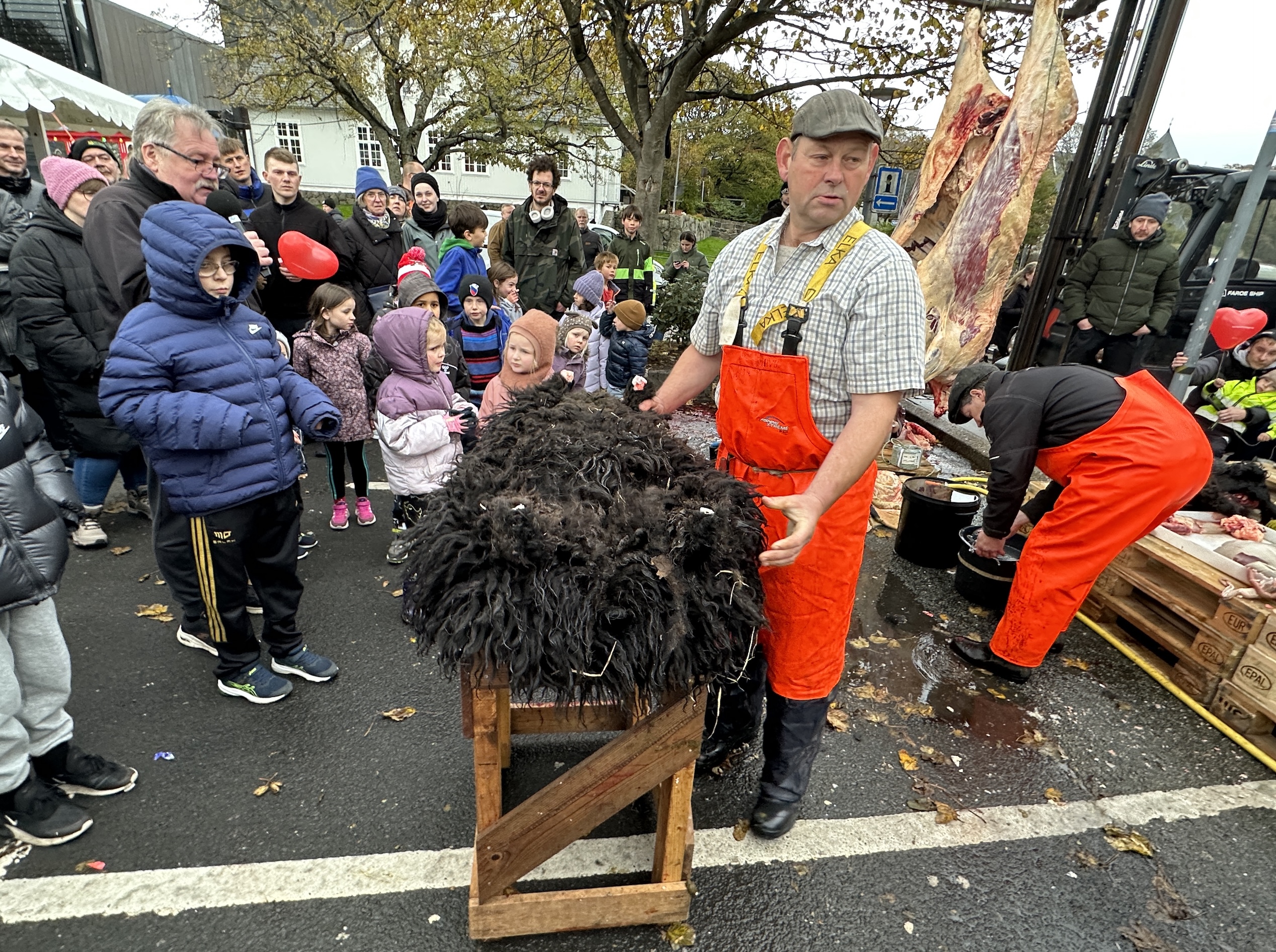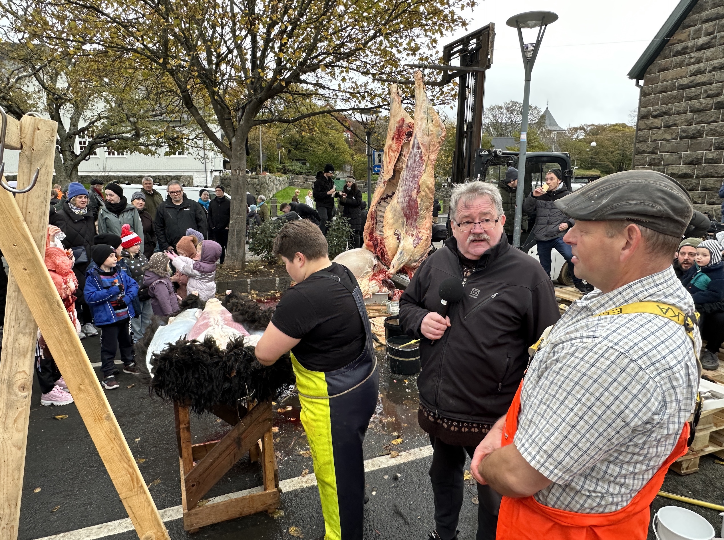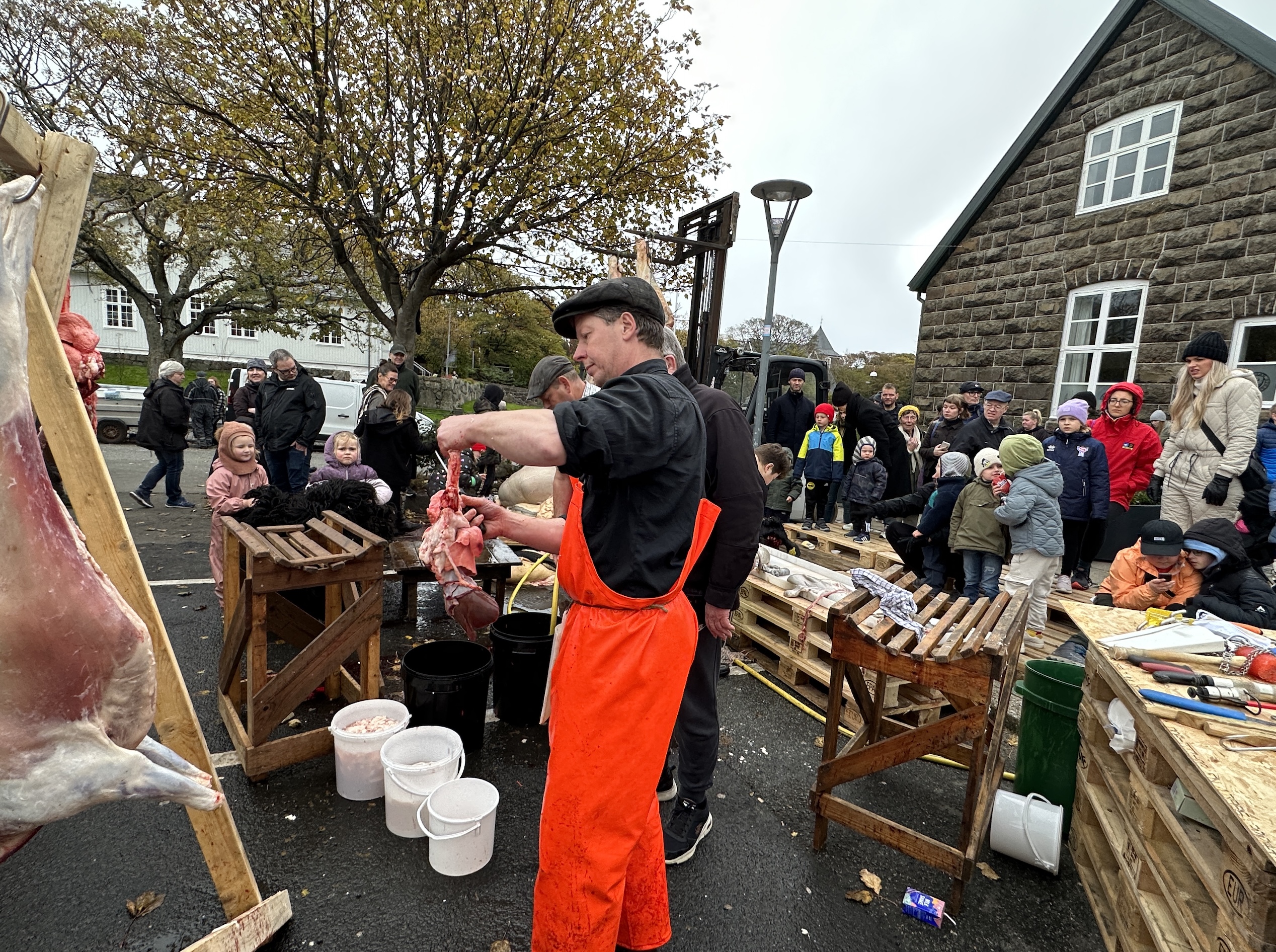 Slaktið byrjaði í morgun klokkan 11, tá tann fyrst seyðurin varð flettur. Síðani hava kokkar gjørt ymsar rætti, fyrilestur verið um reinføri og sølubásar við føroyskum kjøti og grønmeti.