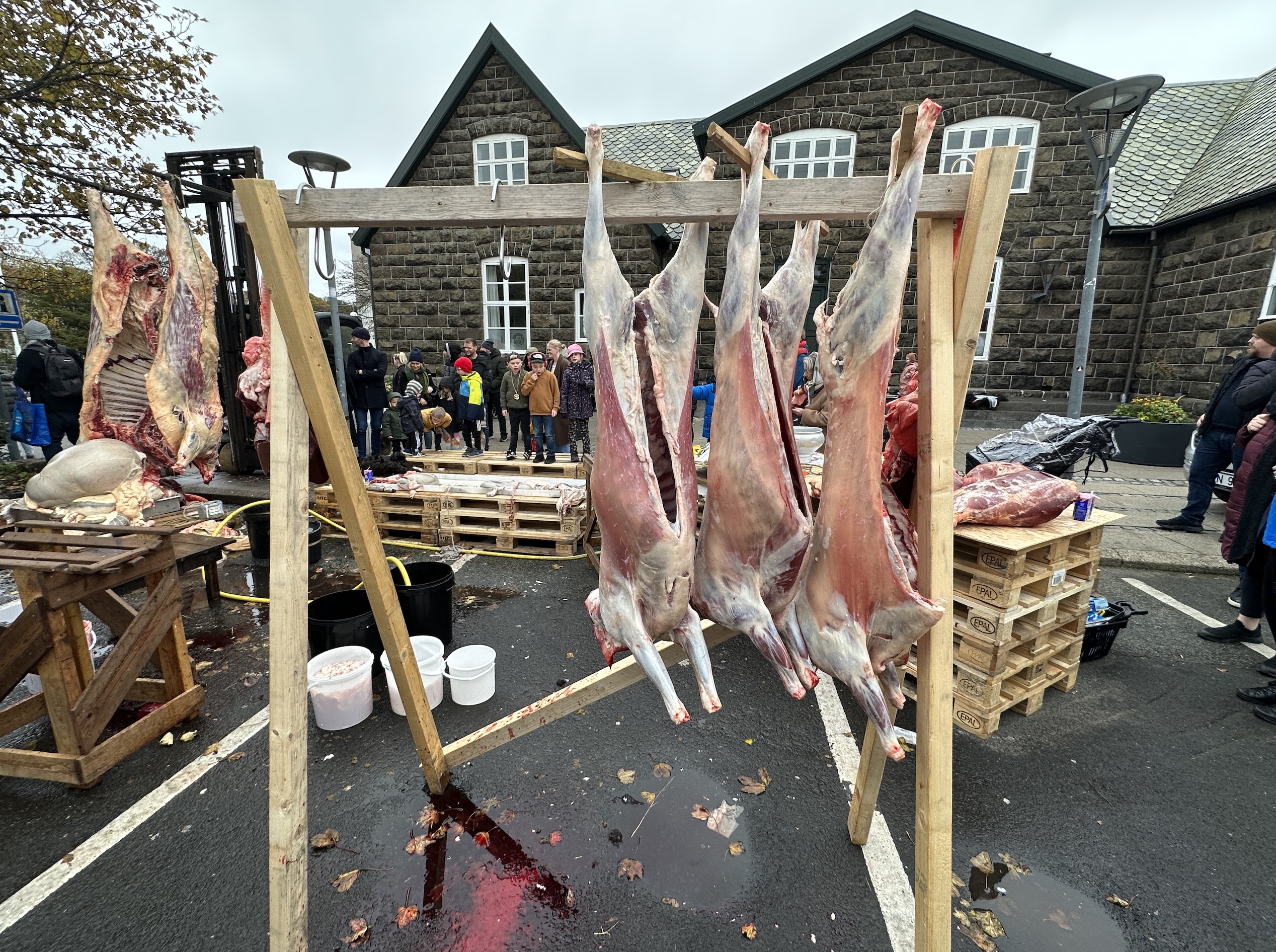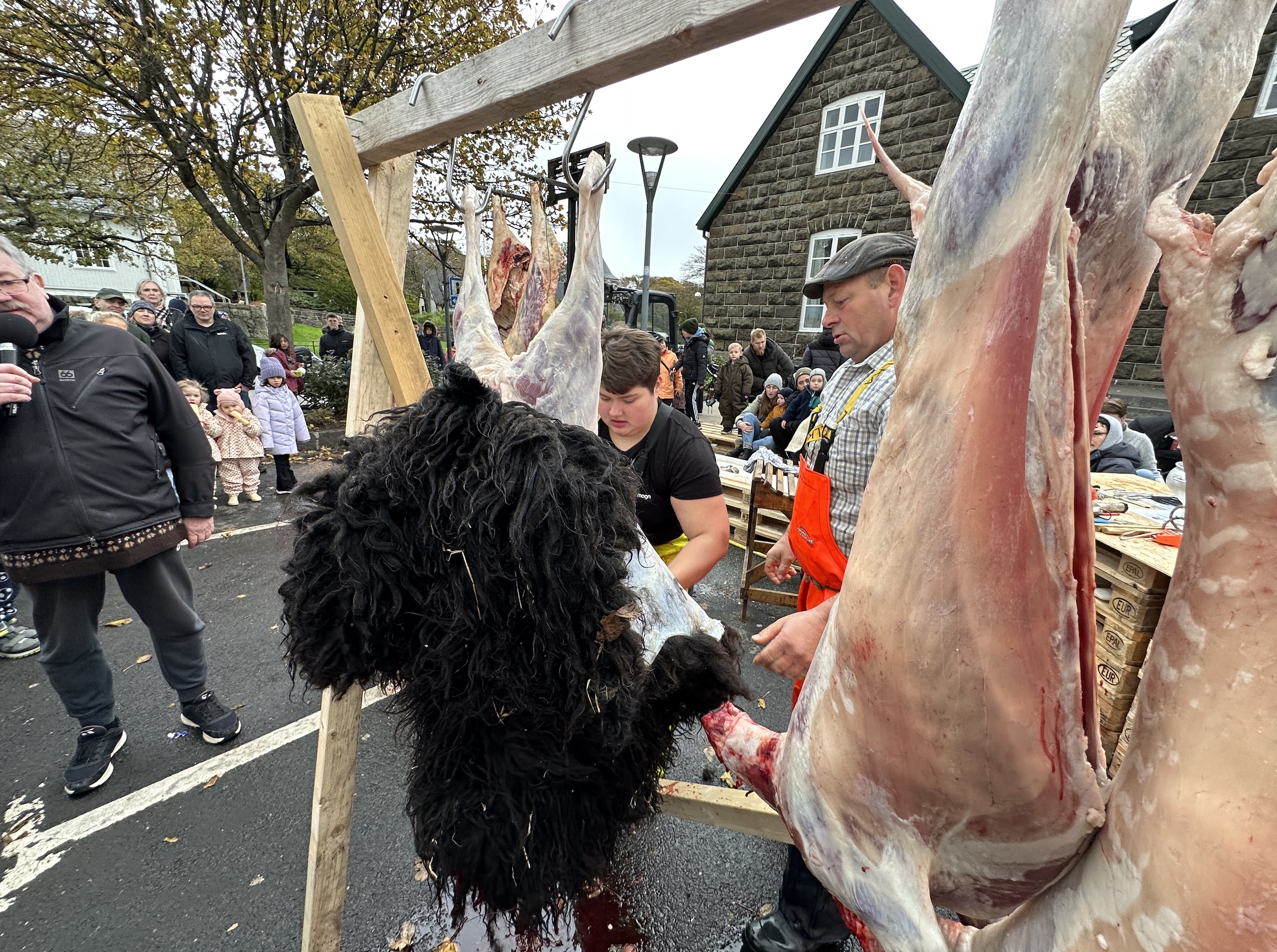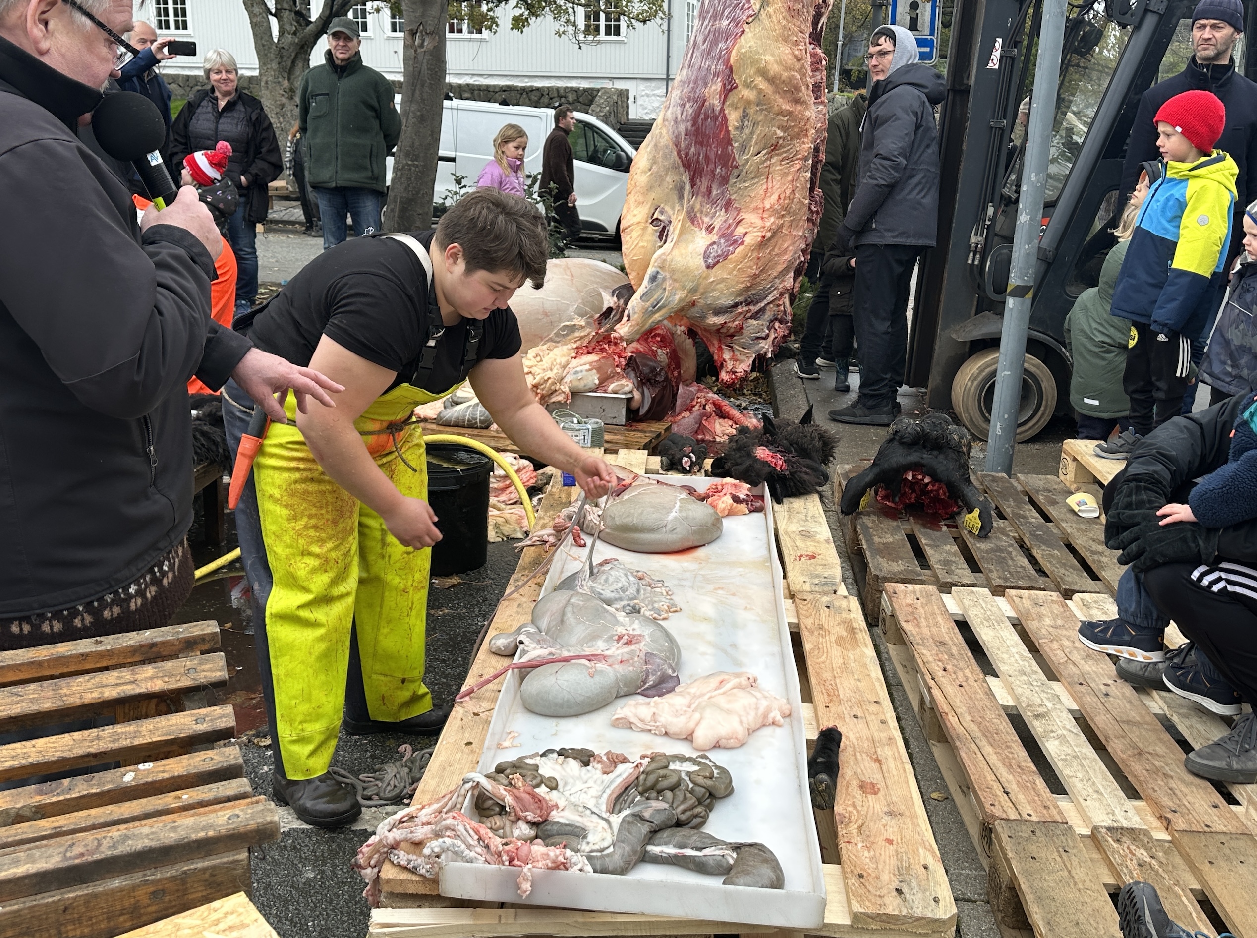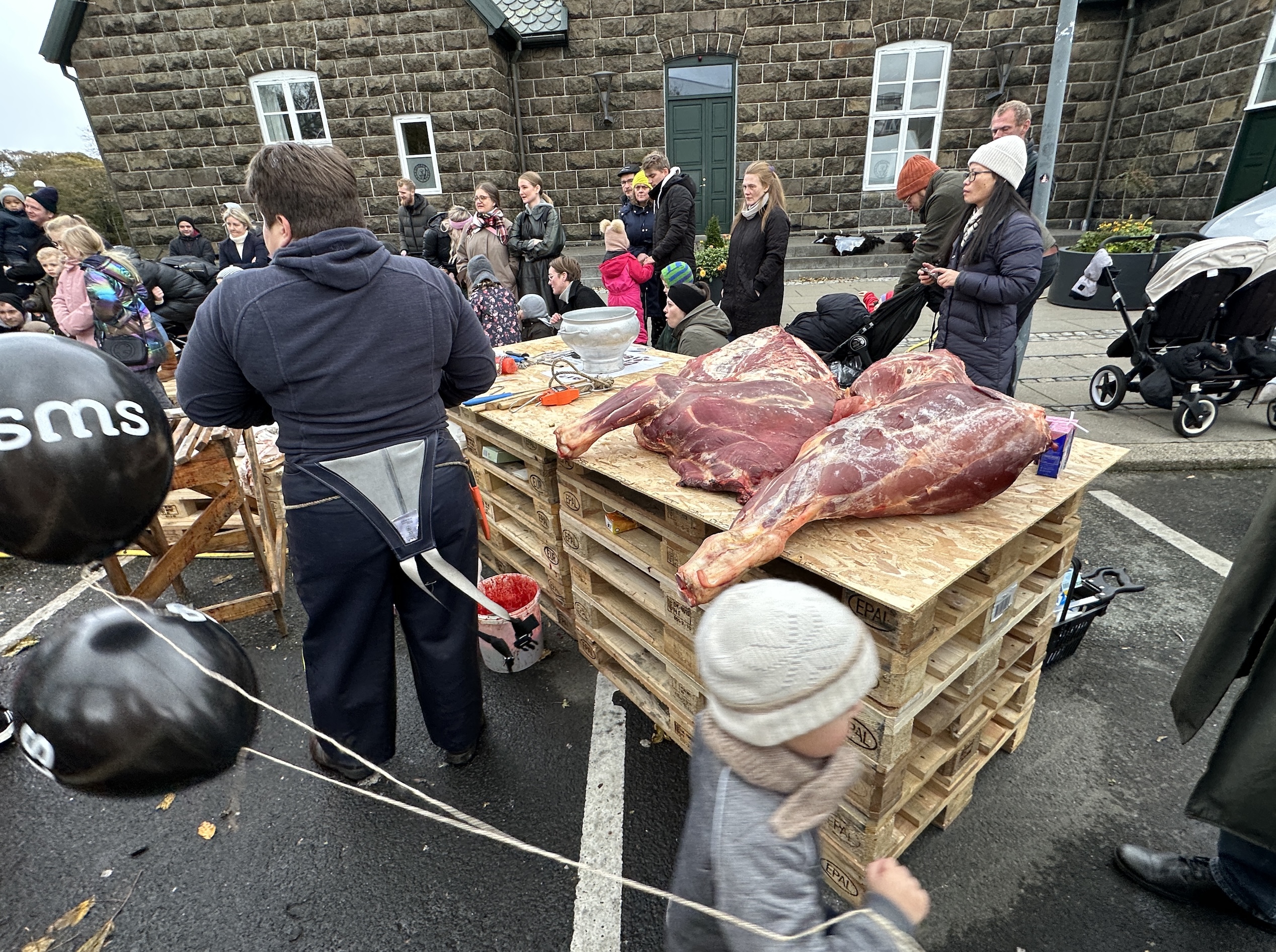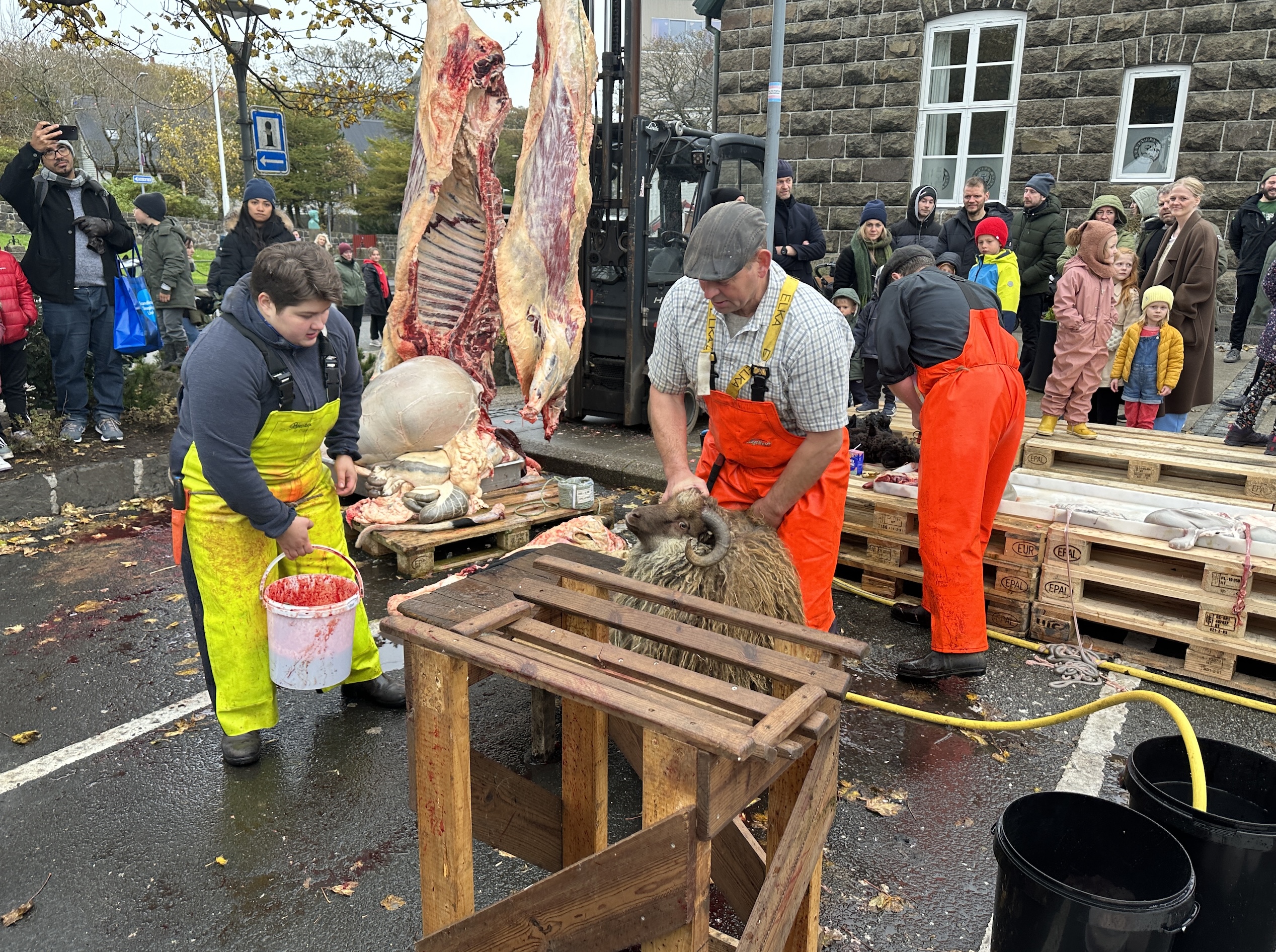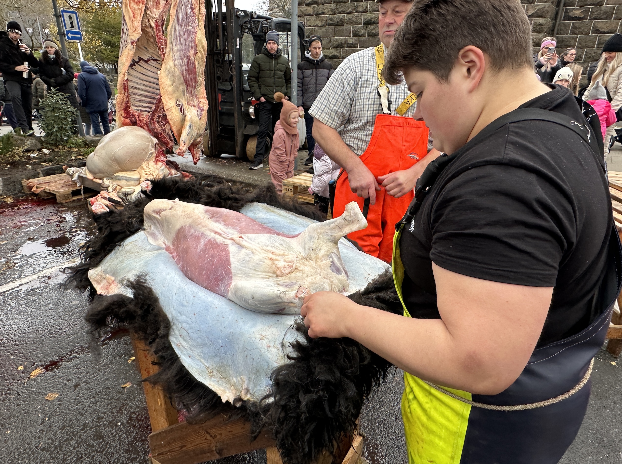 Slaktið byrjaði í morgun klokkan 11, tá tann fyrst seyðurin varð flettur. Síðani hava kokkar gjørt ymsar rætti, fyrilestur verið um reinføri og sølubásar við føroyskum kjøti og grønmeti.