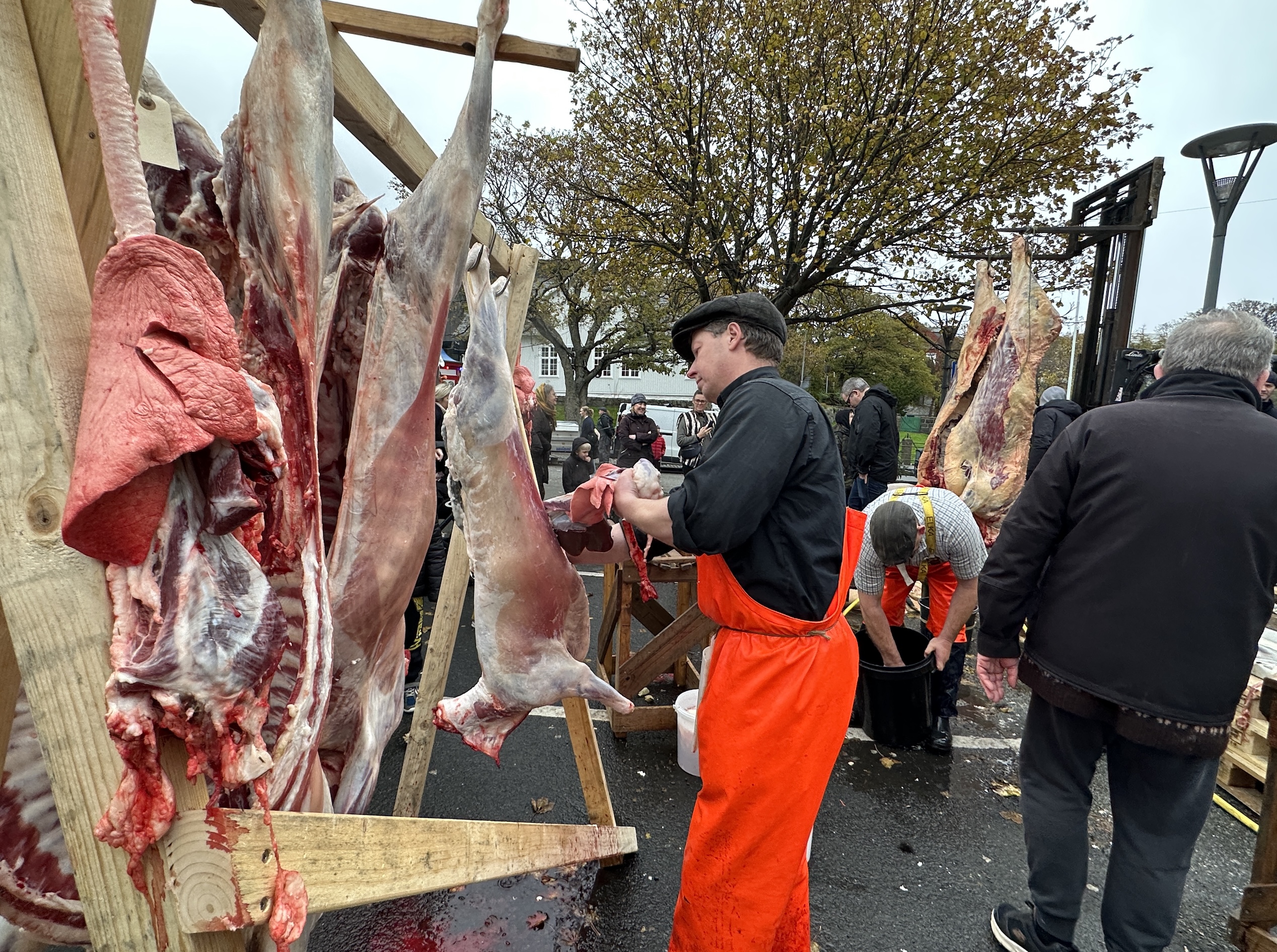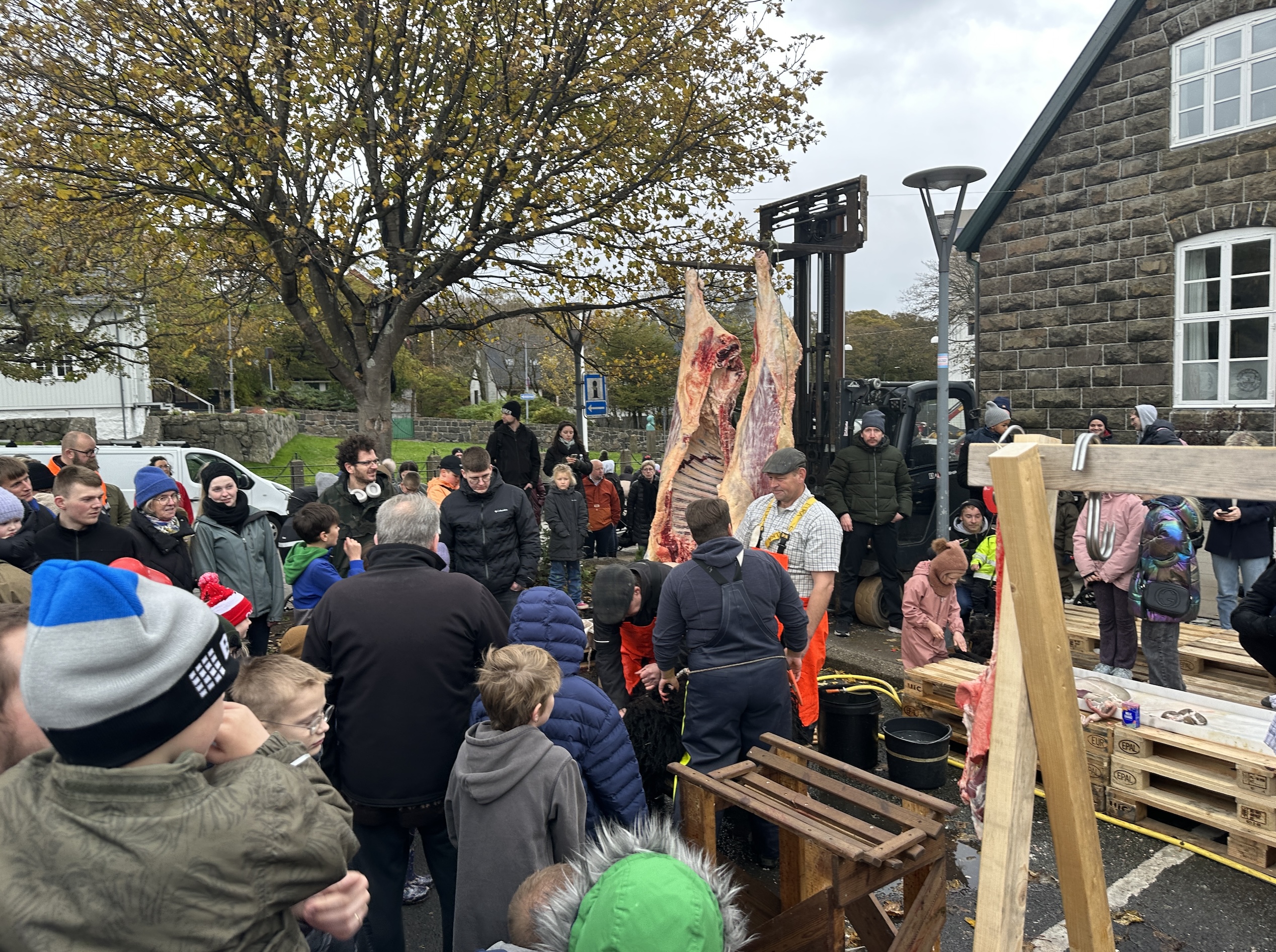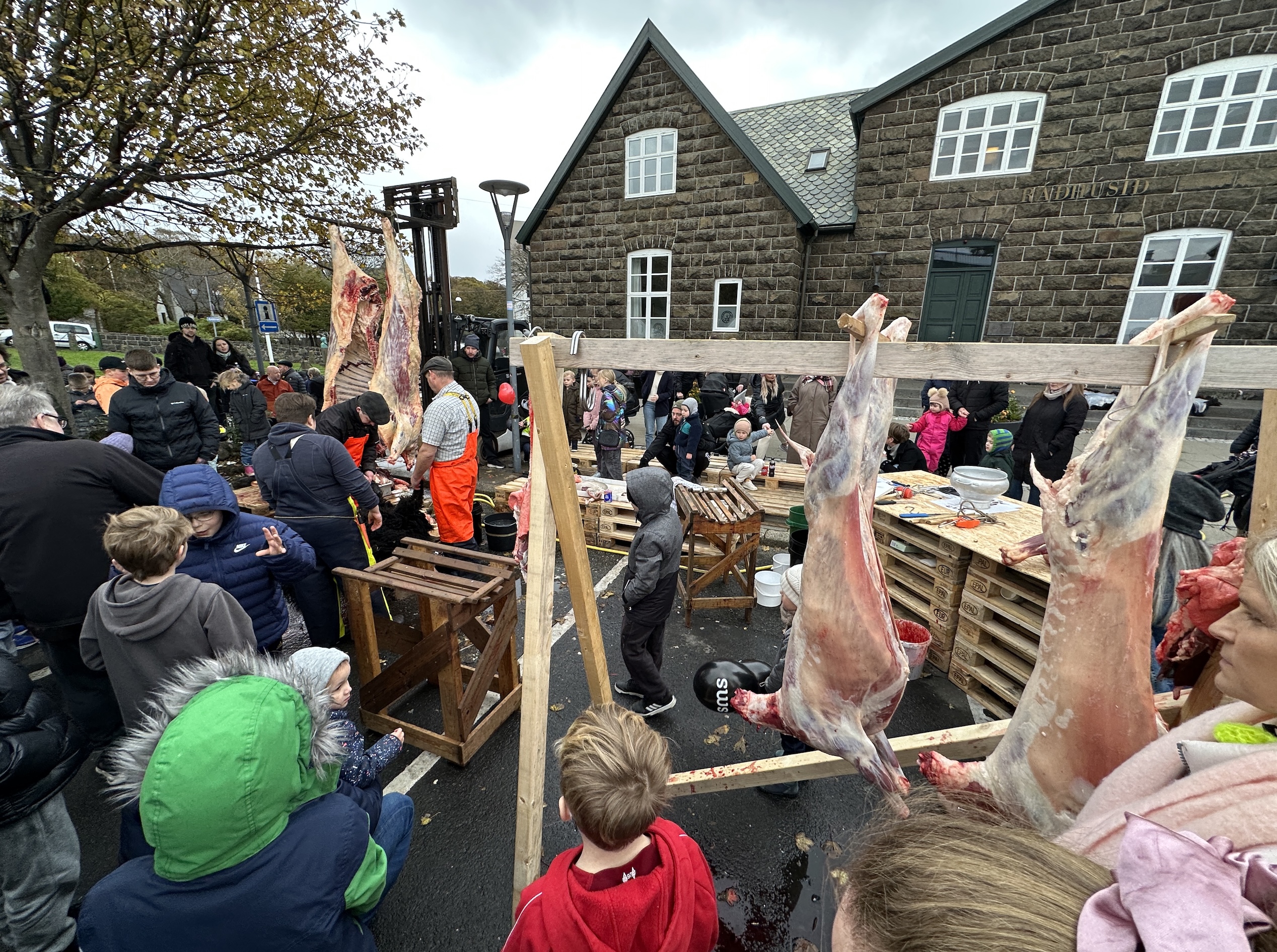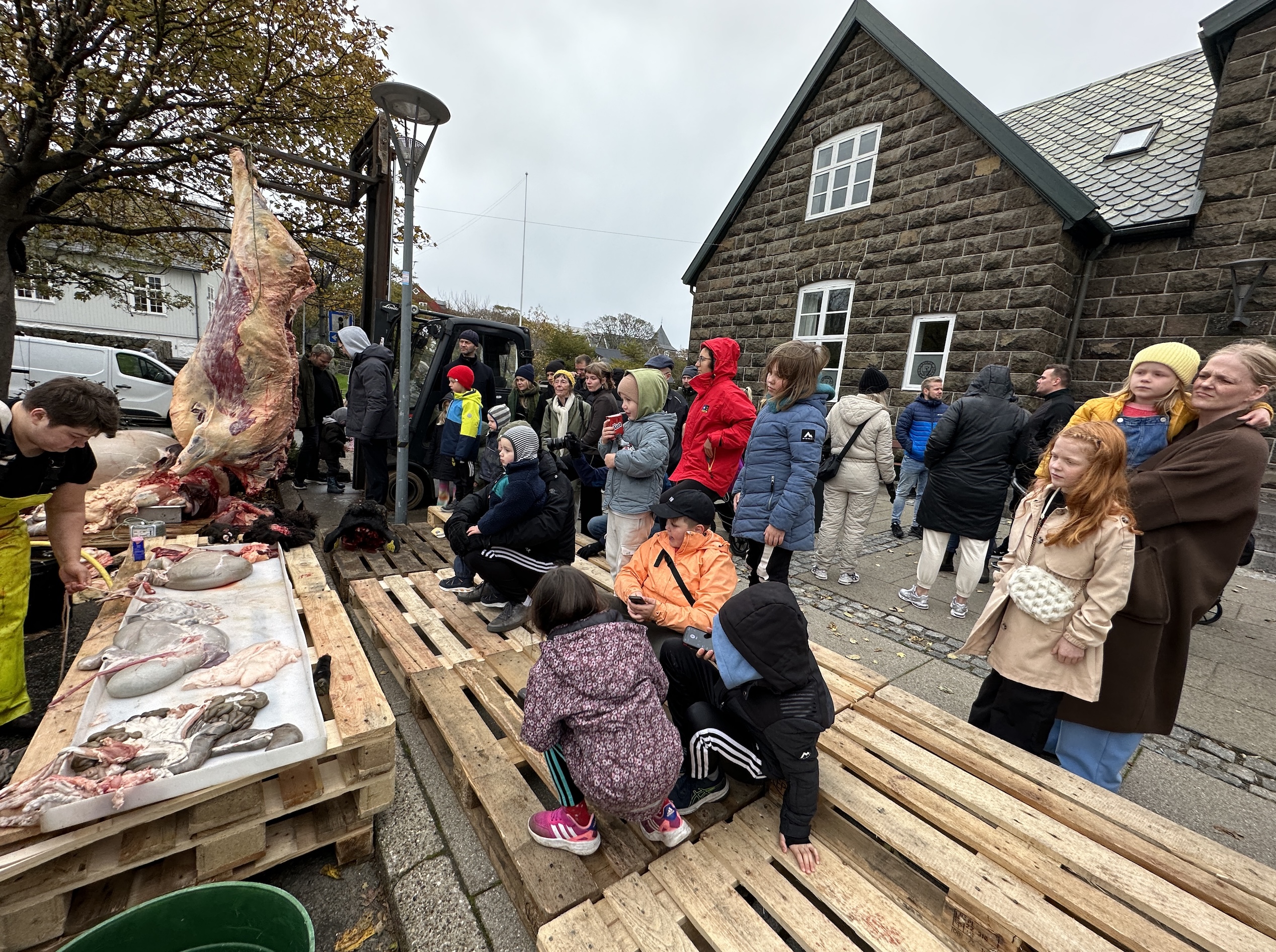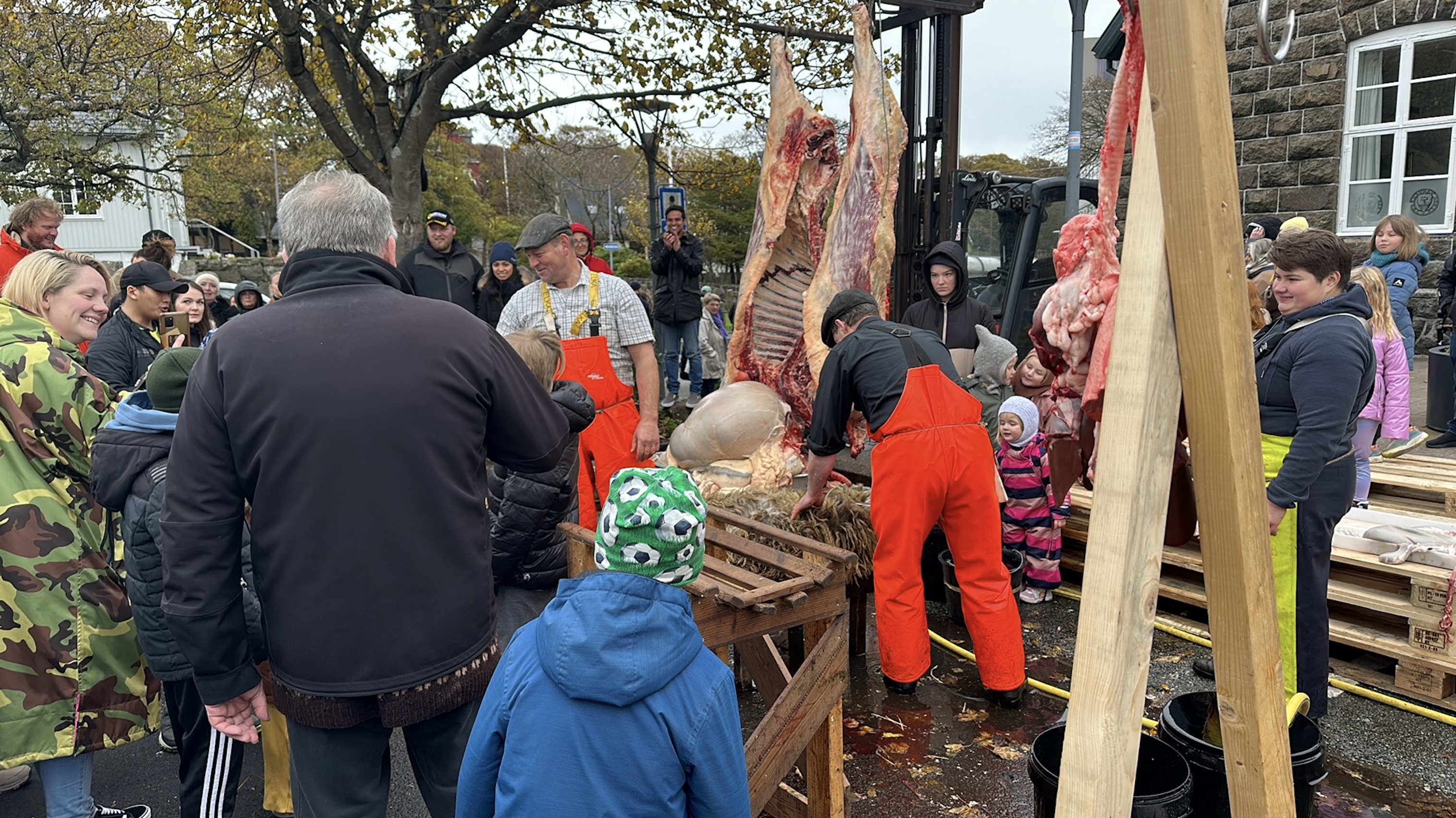 Slaktið byrjaði í morgun klokkan 11, tá tann fyrst seyðurin varð flettur. Síðani hava kokkar gjørt ymsar rætti, fyrilestur verið um reinføri og sølubásar við føroyskum kjøti og grønmeti.