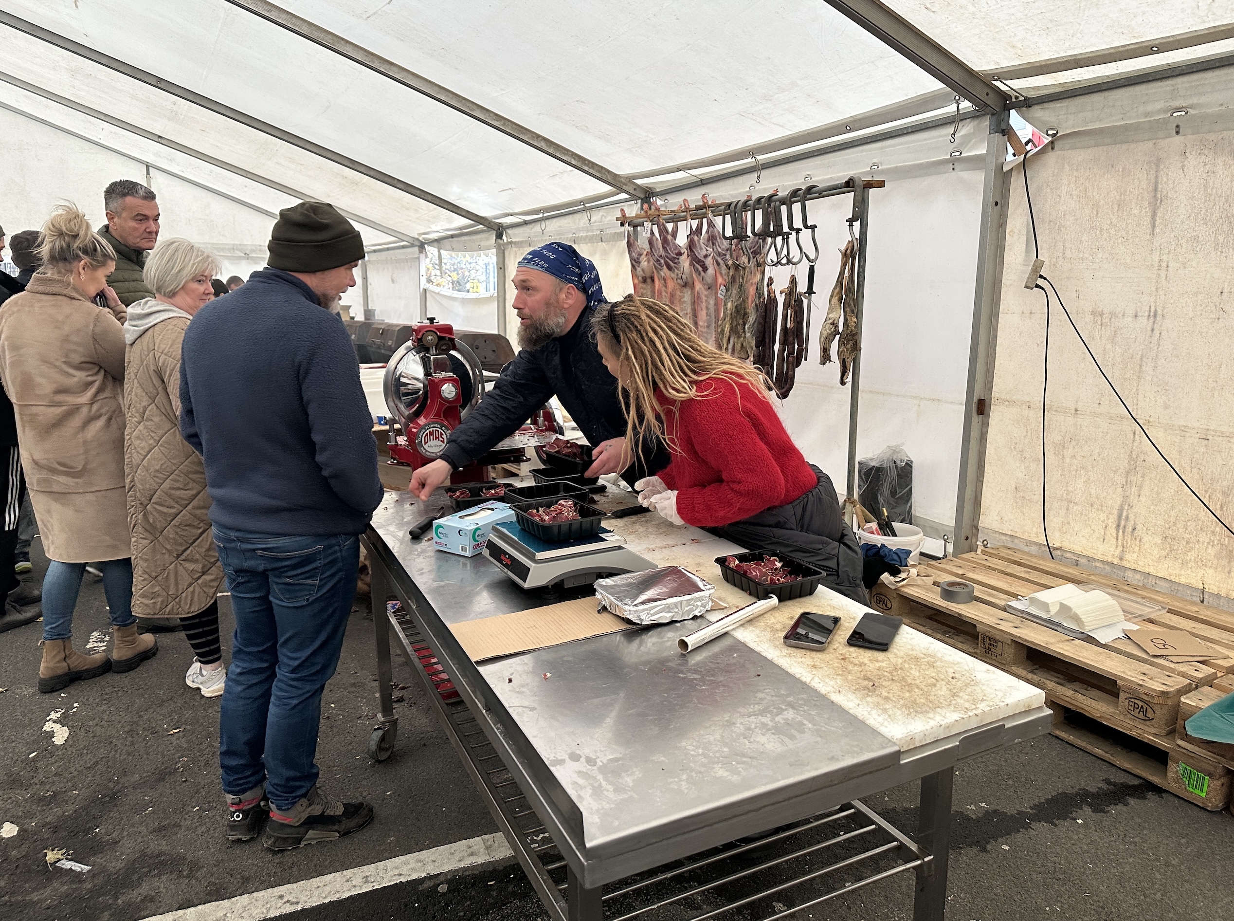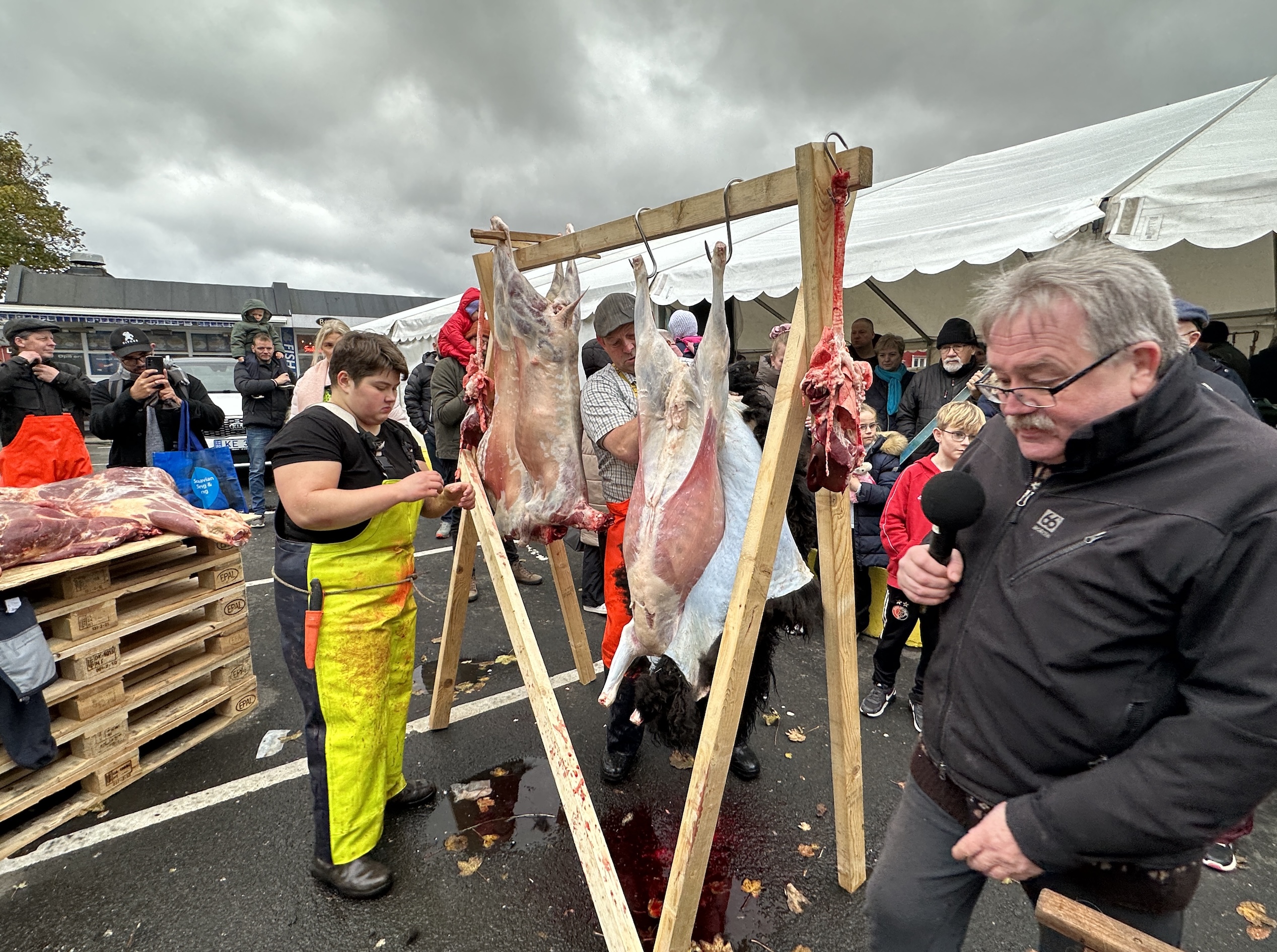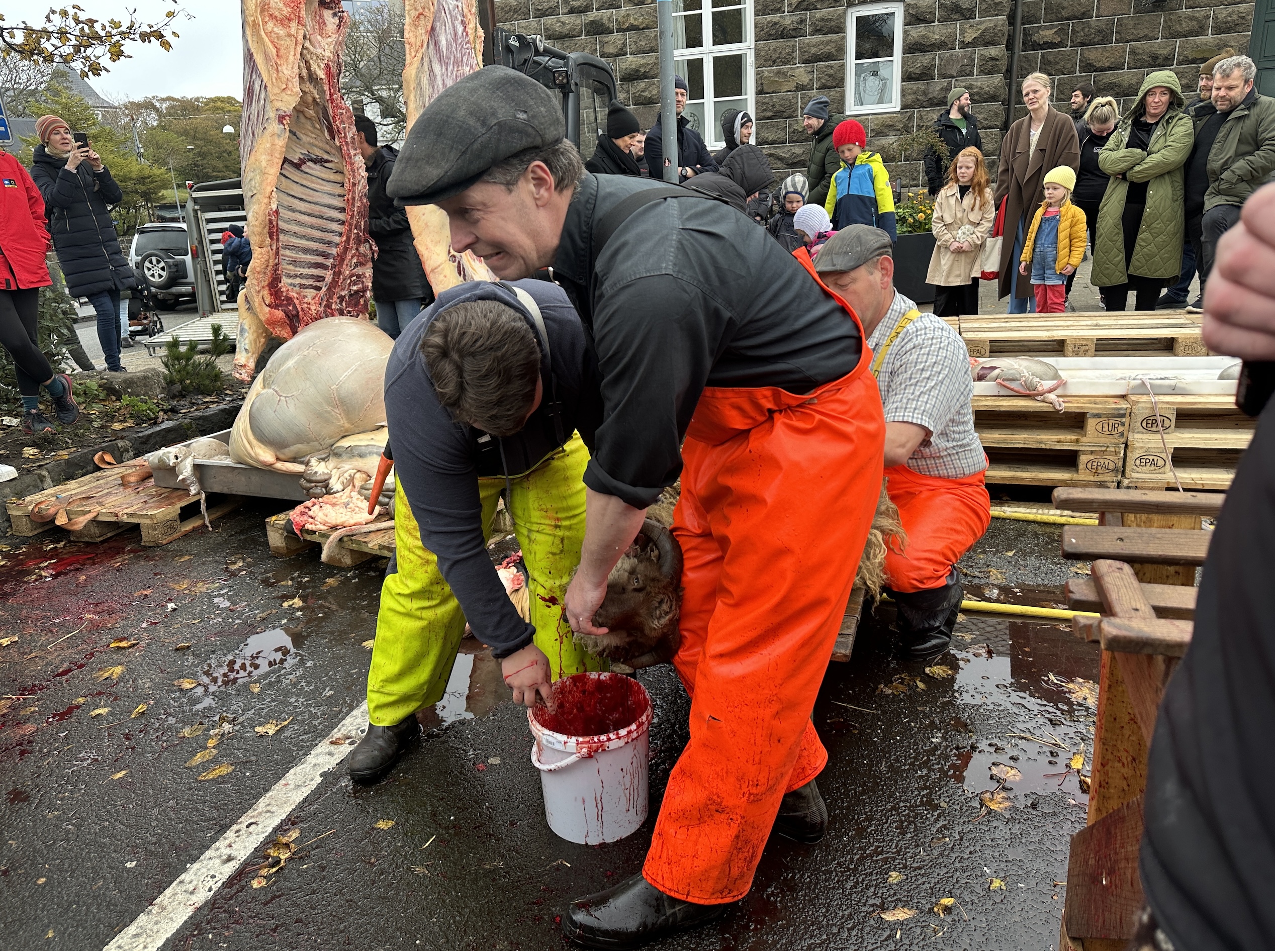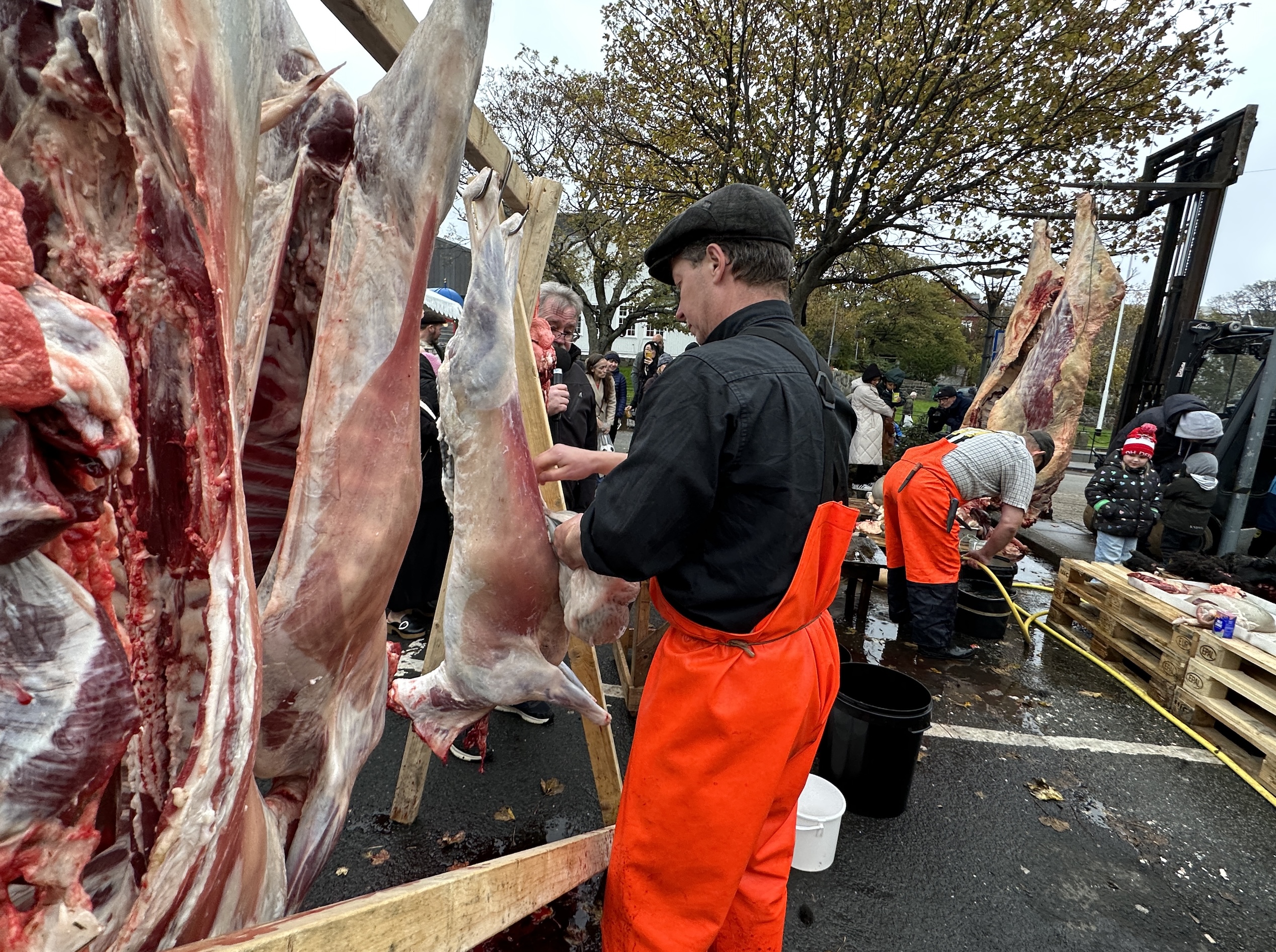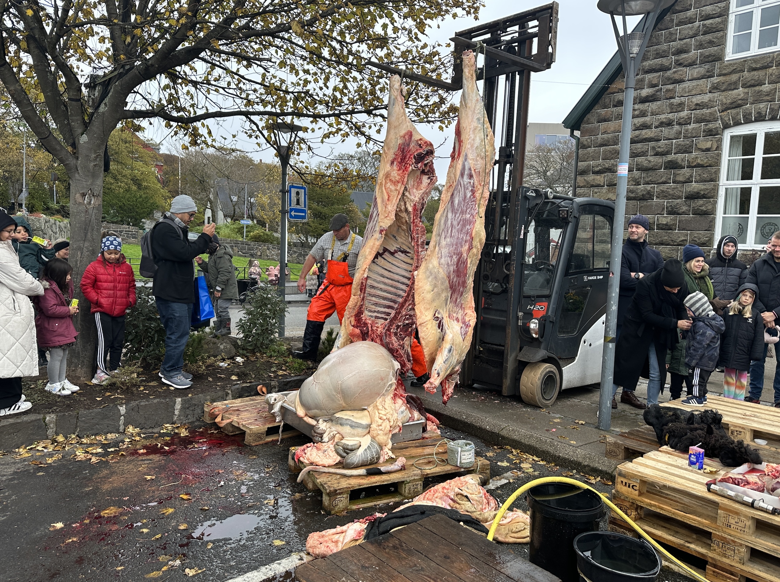 Slaktið byrjaði í morgun klokkan 11, tá tann fyrst seyðurin varð flettur. Síðani hava kokkar gjørt ymsar rætti, fyrilestur verið um reinføri og sølubásar við føroyskum kjøti og grønmeti.