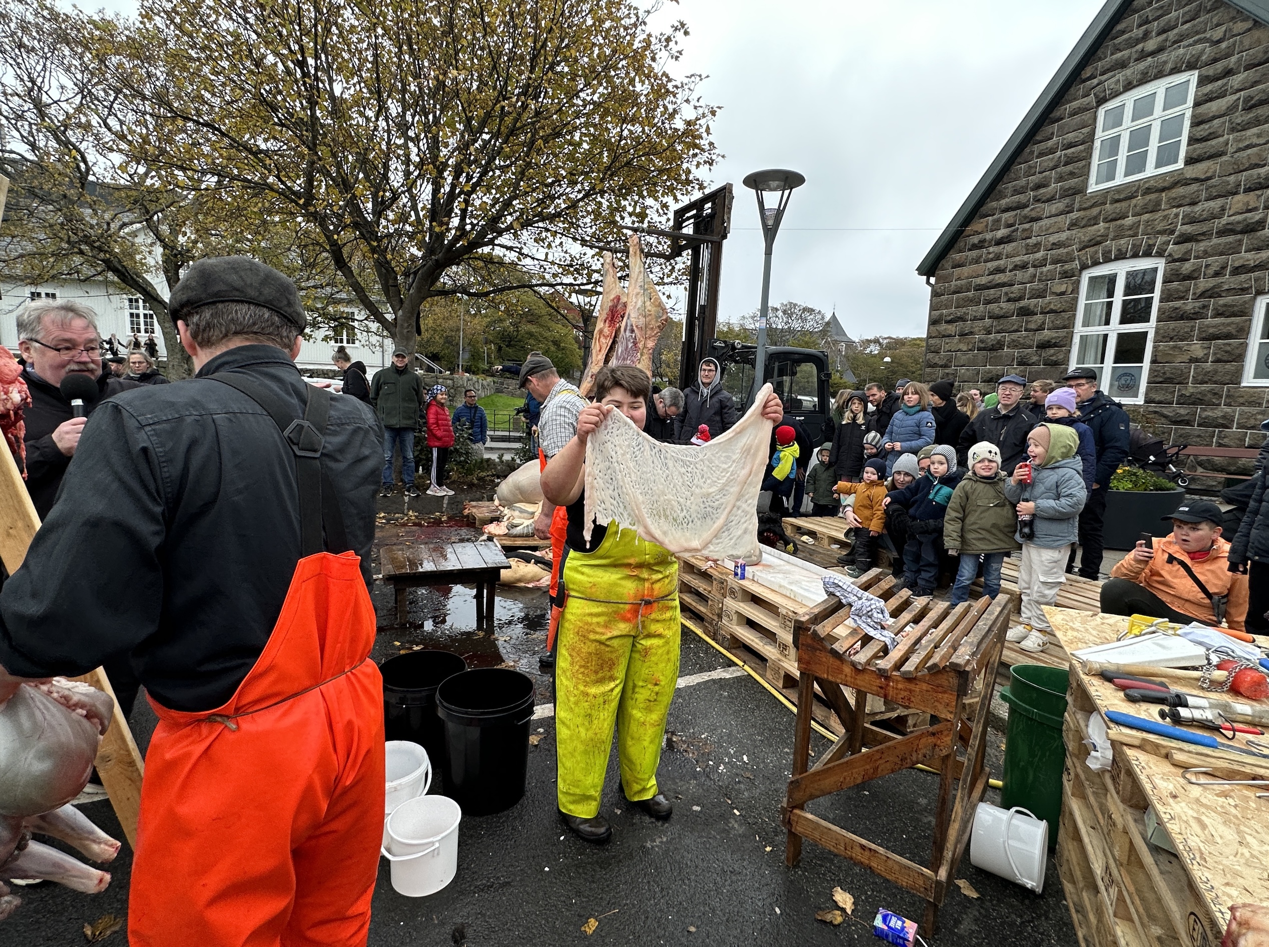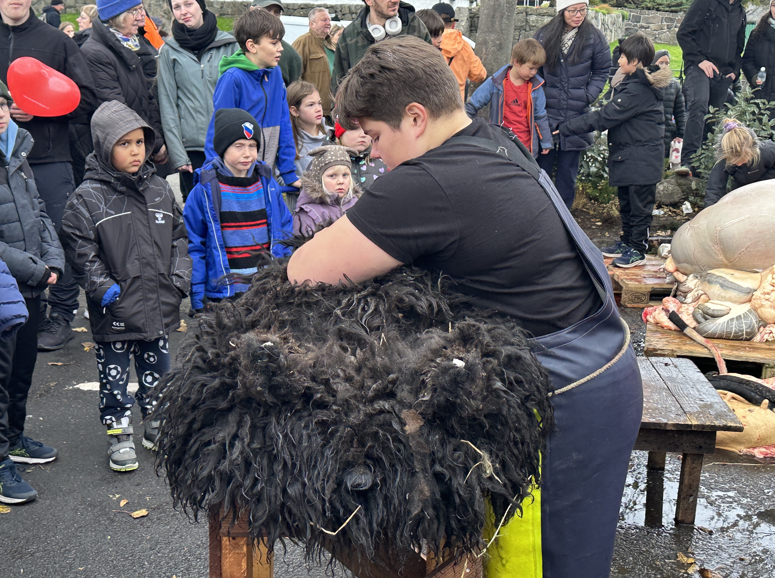 Á middegi var ein kúgv flett. Á skránni var eisini fyrilestur um djóravernd, um flugufisking, har vórðu neytafjórðingar skornir sundur í steikir, búffar og annað. Har var fyrilestur um grønmeti í egnum hava, og síðsta punkt á skránni var uppboðssøla av neytafjórðinginum klokkan 15.