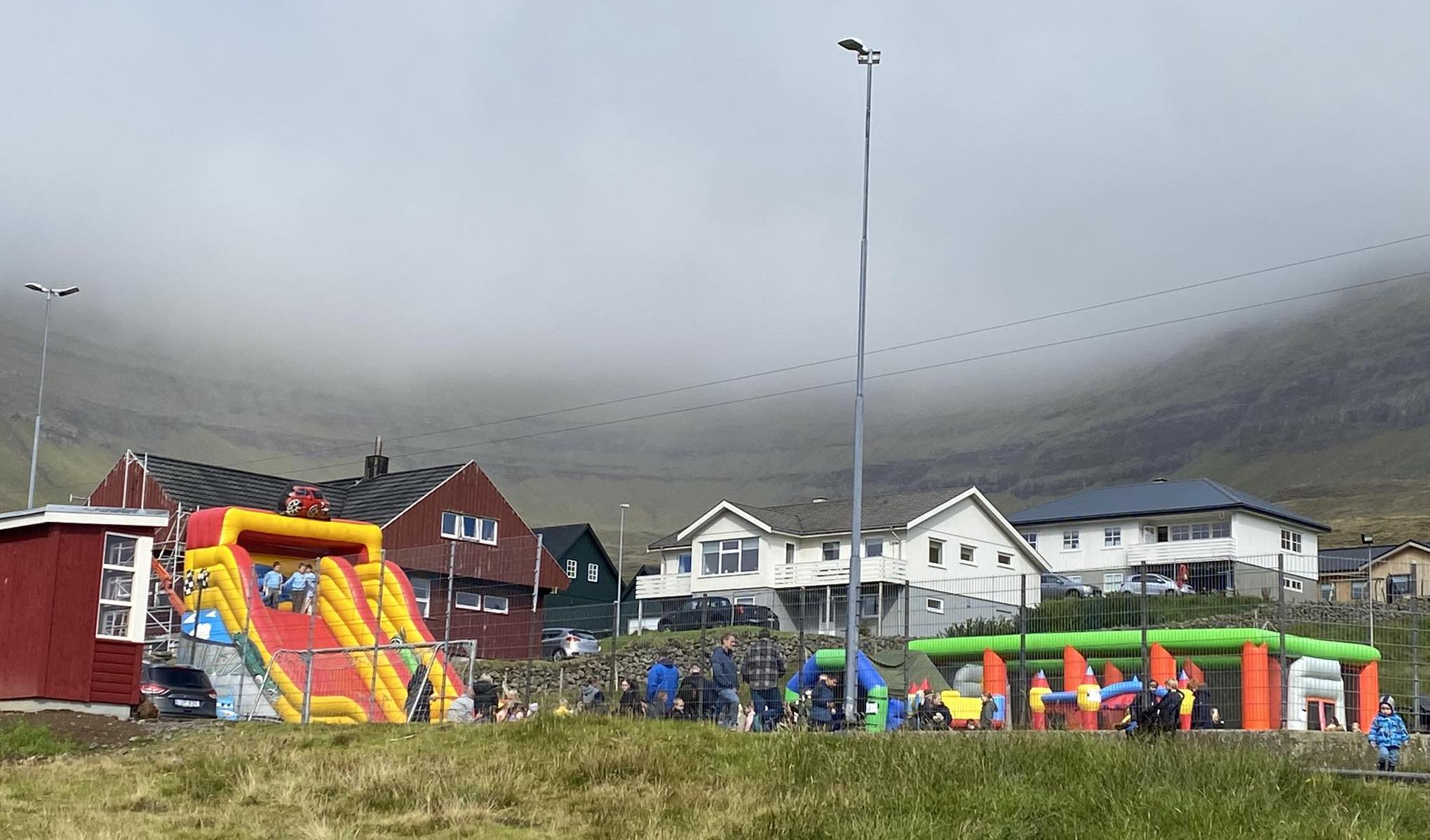 Familjur við børnum ganga runt í bygdini, og her er eisini ymiskt til børn at royna.
