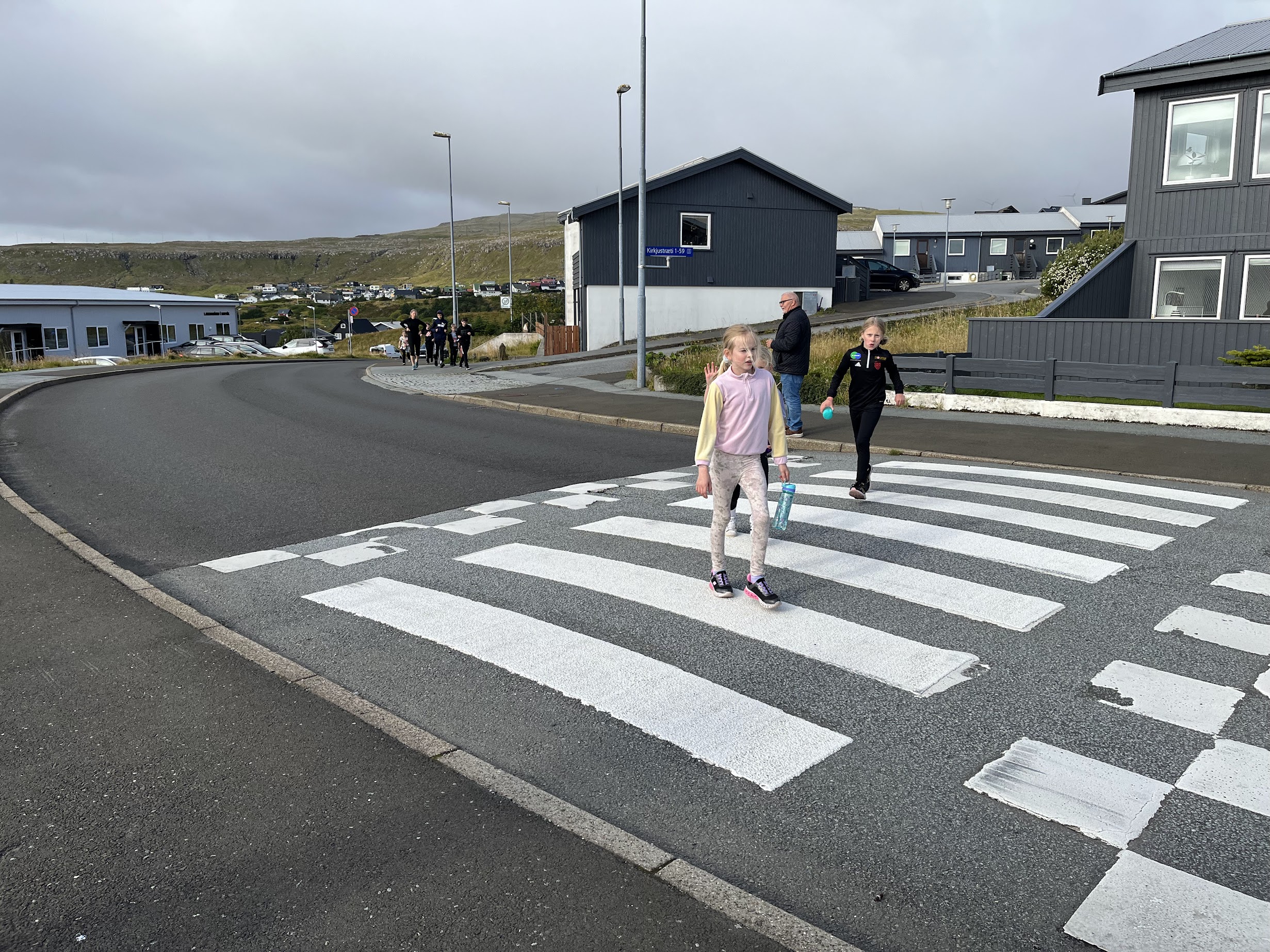 Runnið verður fyrst omaneftir á gongubreytini fram við Løgmannabreyt, síðani á gongubreytini á ovaru síðu á Kirkjustræti yvir til Hoyvíkshøllina. Síðani niðan eftir á gøtuni í Dalinum langa niðan til Klingruna. Hagani á gongbreytini yvir til rundkoyringina og so oman eftir gongubreytini fram við Løgmannabreyt og í skúlan. Vónað verður, at bilførarar at sýna serligt ansni í økinum, meðan renningin er.