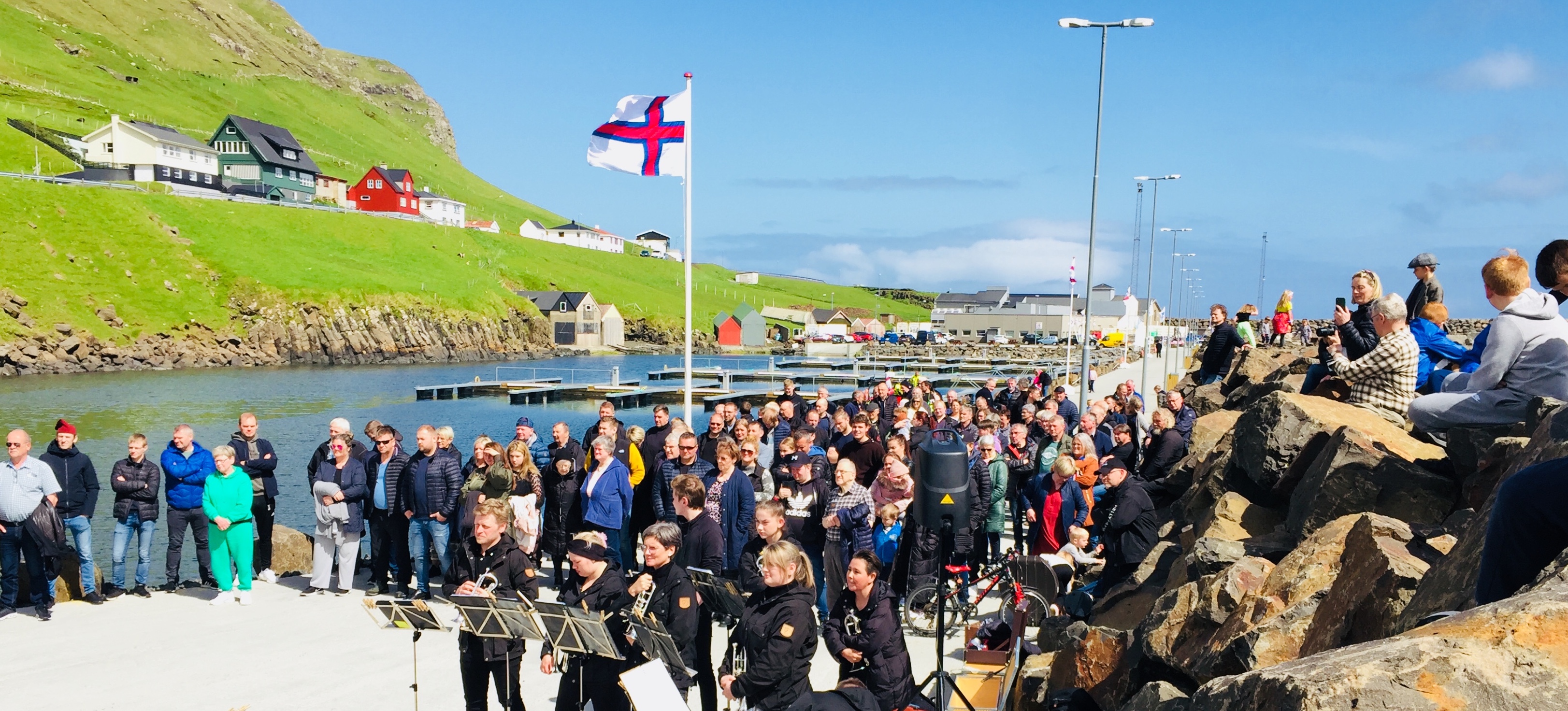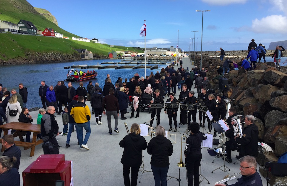 Løtan við nýggja bátahylin í Hvalba í dag byrjaði við hátíðarligum hornatónleiki, og tað var Tróndur Enni, sum leiddi orkestrið.