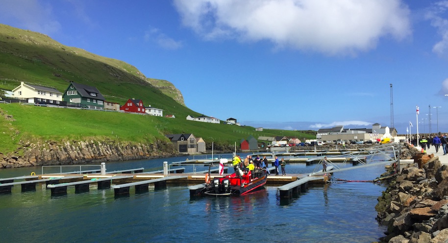 Eftir løtuna við bátahylin, har sólin skein so fagurliga, bjóðaði kommunan øllum til leskandi og okkurt gott undir góman.